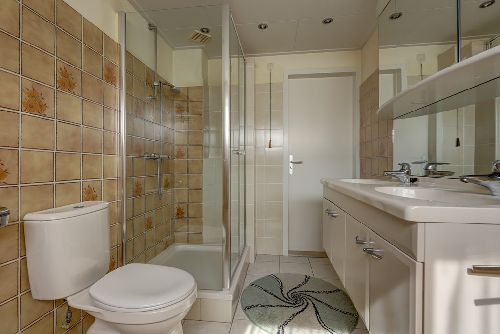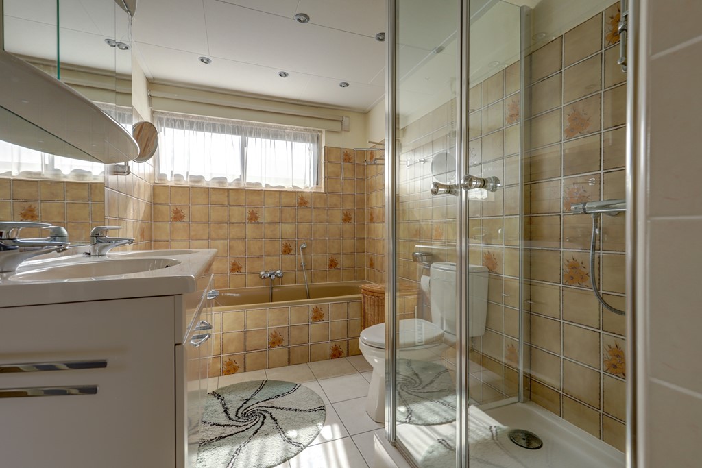 Met de vaste trap bereik je de eerste verdieping. Hier vind je drie ruime slaapkamers en een complete badkamer met ligbad, aparte douche, tweede toilet en wastafelmeubel. Een van de slaapkamers heeft een eigen inpandig balkon.