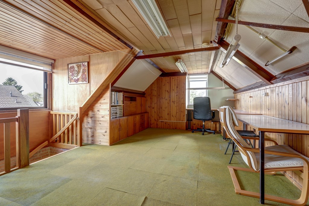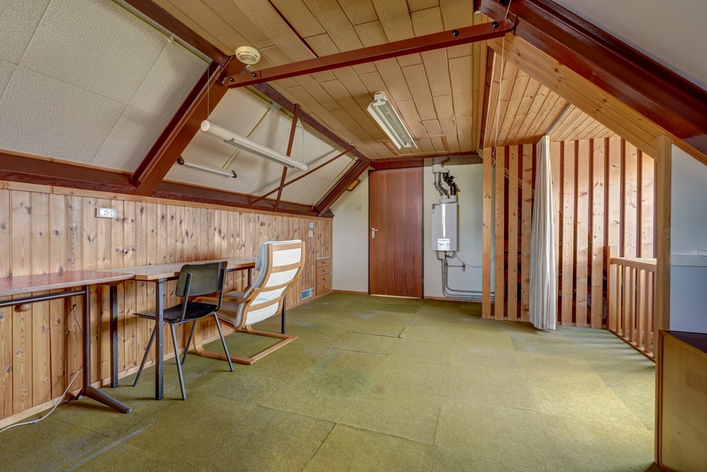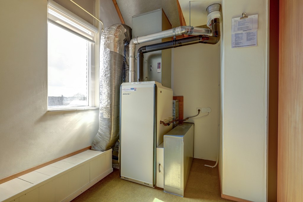De verrassend ruime zolder is bereikbaar via een vaste trap. Hier bevindt zich een lichte zolderkamer met een dakkapel en inbouwkasten. Er wordt verwarmd via een heteluchtsysteem, en het water wordt verwarmd via een aparte ketel uit 2020.