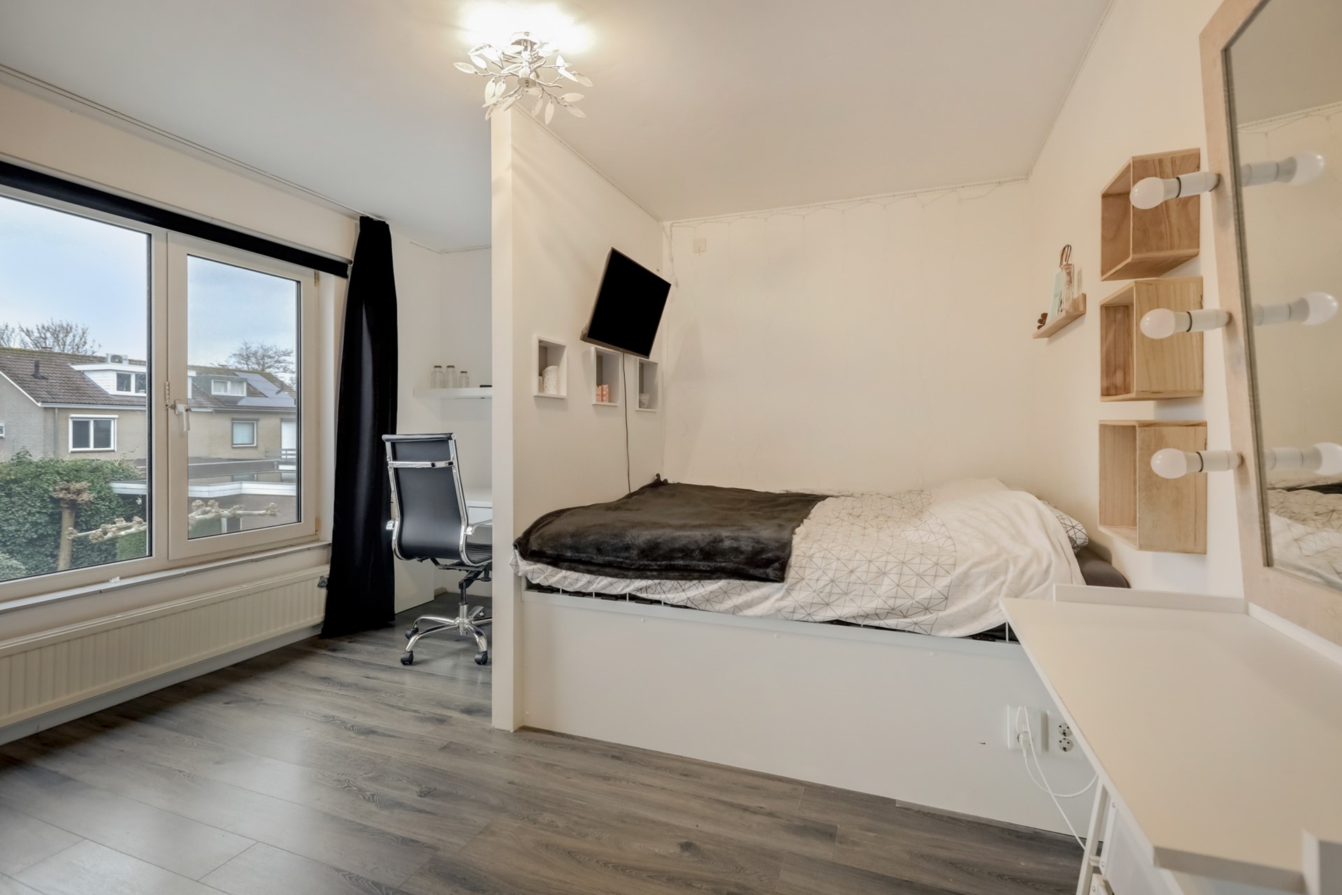 Via de overloop op de eerste verdieping die een centrale verbinding biedt bereik je drie fijne slaapkamers. Deze slaapkamers variëren in grootte: 9 m², 14 m² en 15 m². Eén van deze slaapkamers is momenteel ingericht met de aansluiting voor het witgoed. Mocht je liever de wasmachine en droger op een andere plek willen plaatsen, dan is het mogelijk om de aansluiting te verplaatsen naar de keuken of naar de cv-bergruimte op de tweede verdieping.