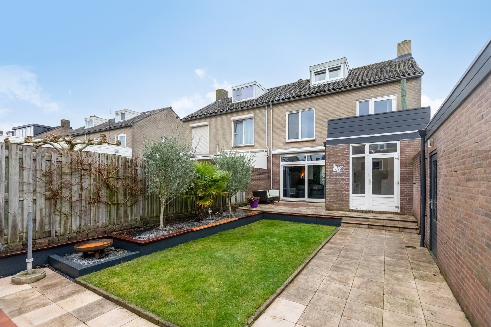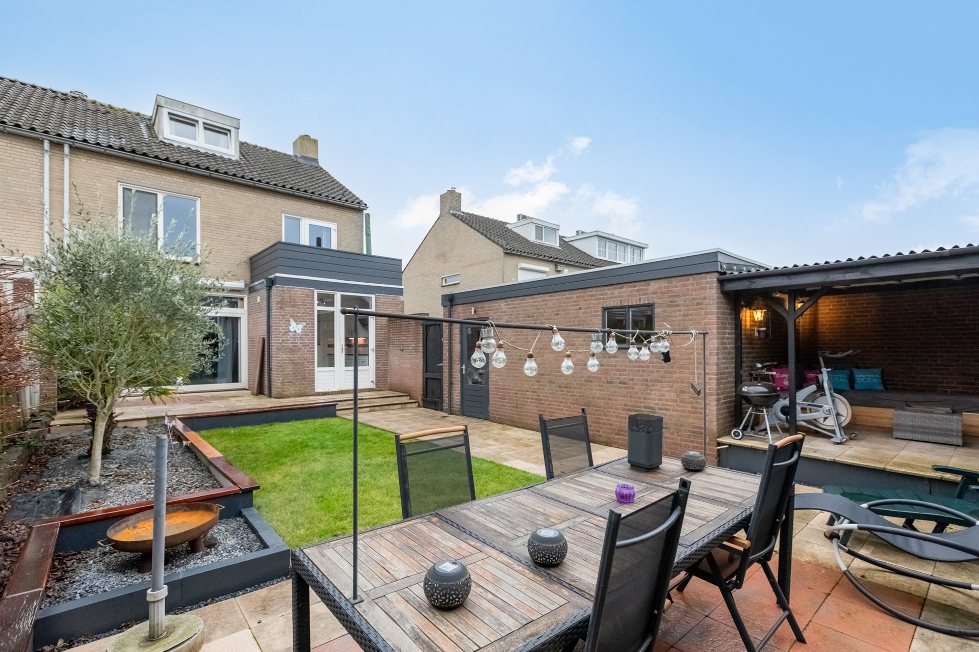 De achtertuin is zonnig en meet ongeveer 14,5 bij 10 meter en is gelegen op het noordwesten.. Door de gunstige ligging van de woning op het perceel krijgt u naast de schaduwrijke plekken gedurende bijna de gehele dag volop zon in de achtertuin. Aan de achterzijde van de garage is een gezellige overkapping gerealiseerd, ideaal om onder te genieten van een maaltijd of een borrel met vrienden en familie.