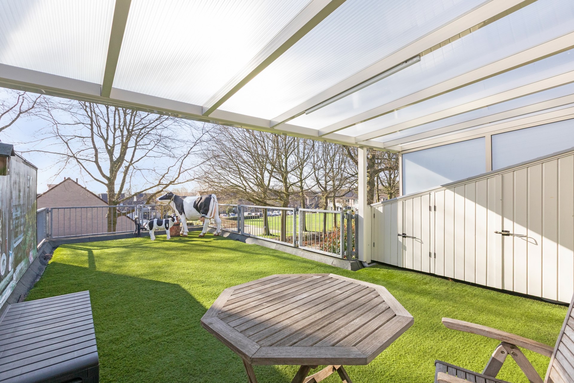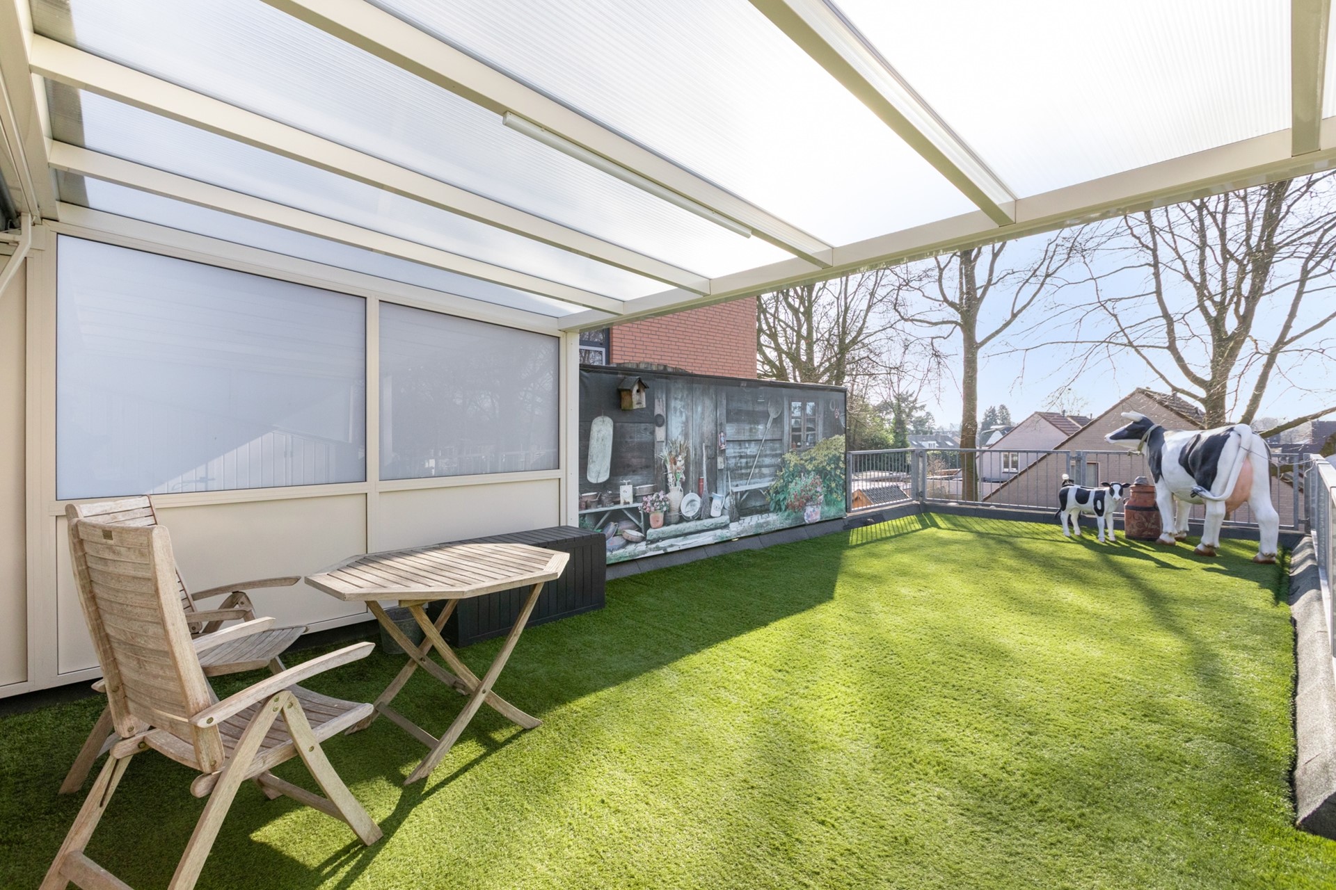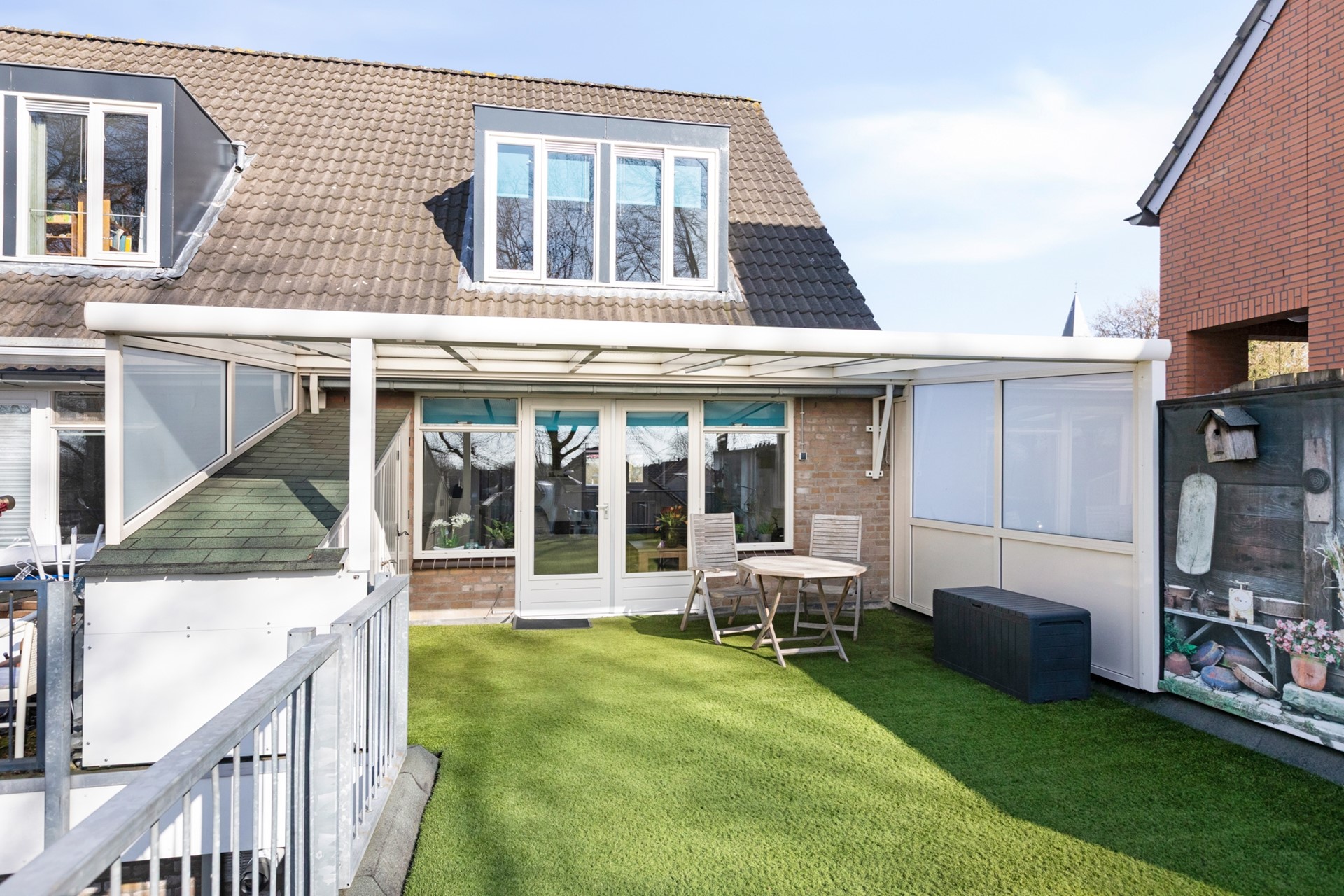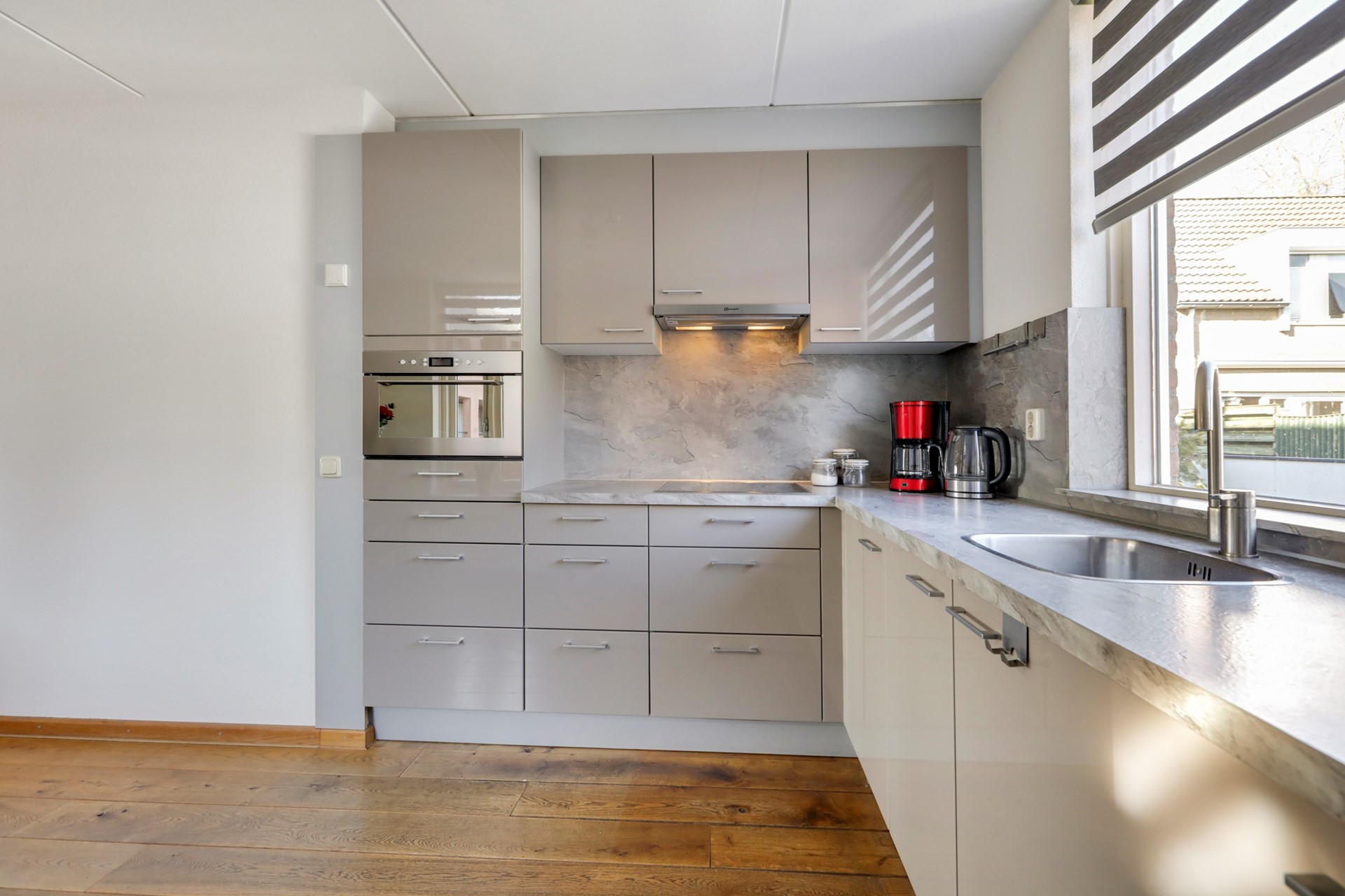 De woning is gebouwd in 1991 en beschikt over een moderne hoekkeuken, voorzien van diverse inbouwapparatuur. De lichte, L-vormige woon-eetkamer is afgewerkt met een massief eikenvloer, radiatoren, houten kozijnen met dubbel glas en openslaande terrasdeuren die leiden naar het grote, zonnige dakterras van maar liefst 49 m² met een grote veranda. Hier kunt u genieten van het buitenleven en prettig uitzicht.