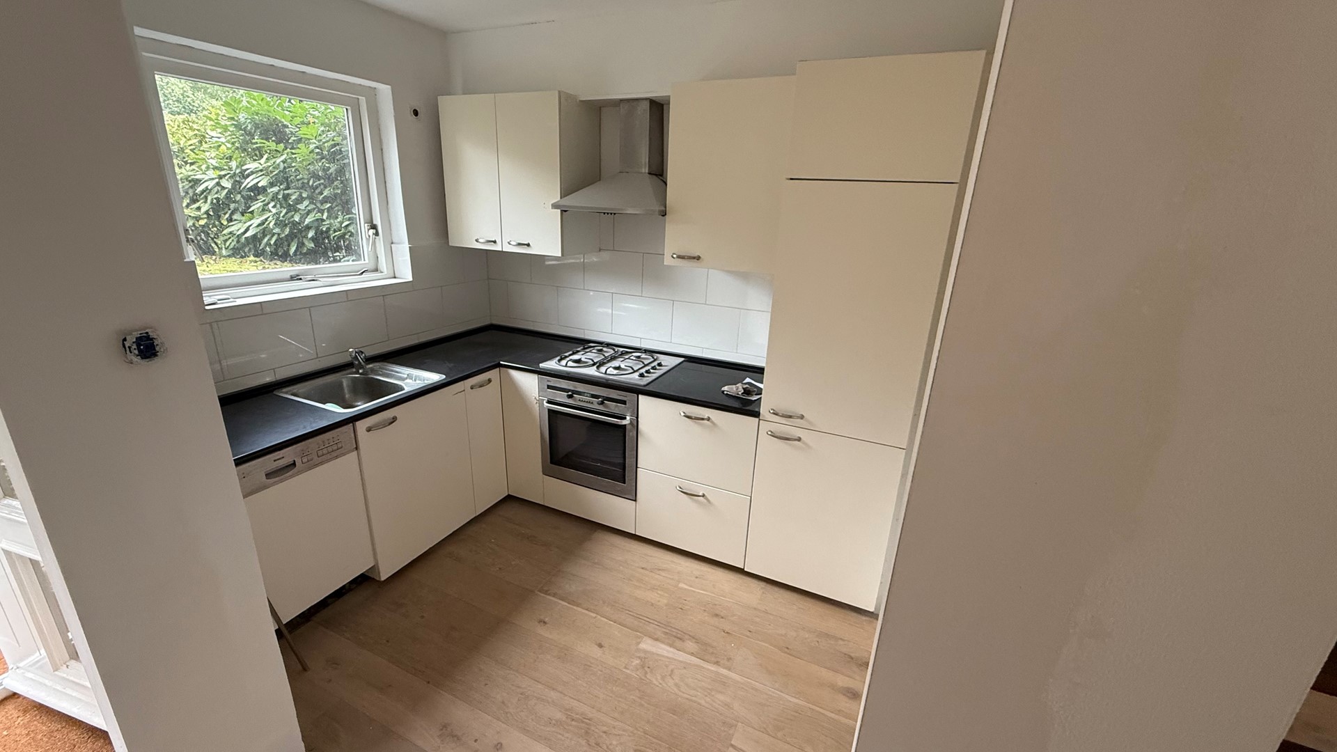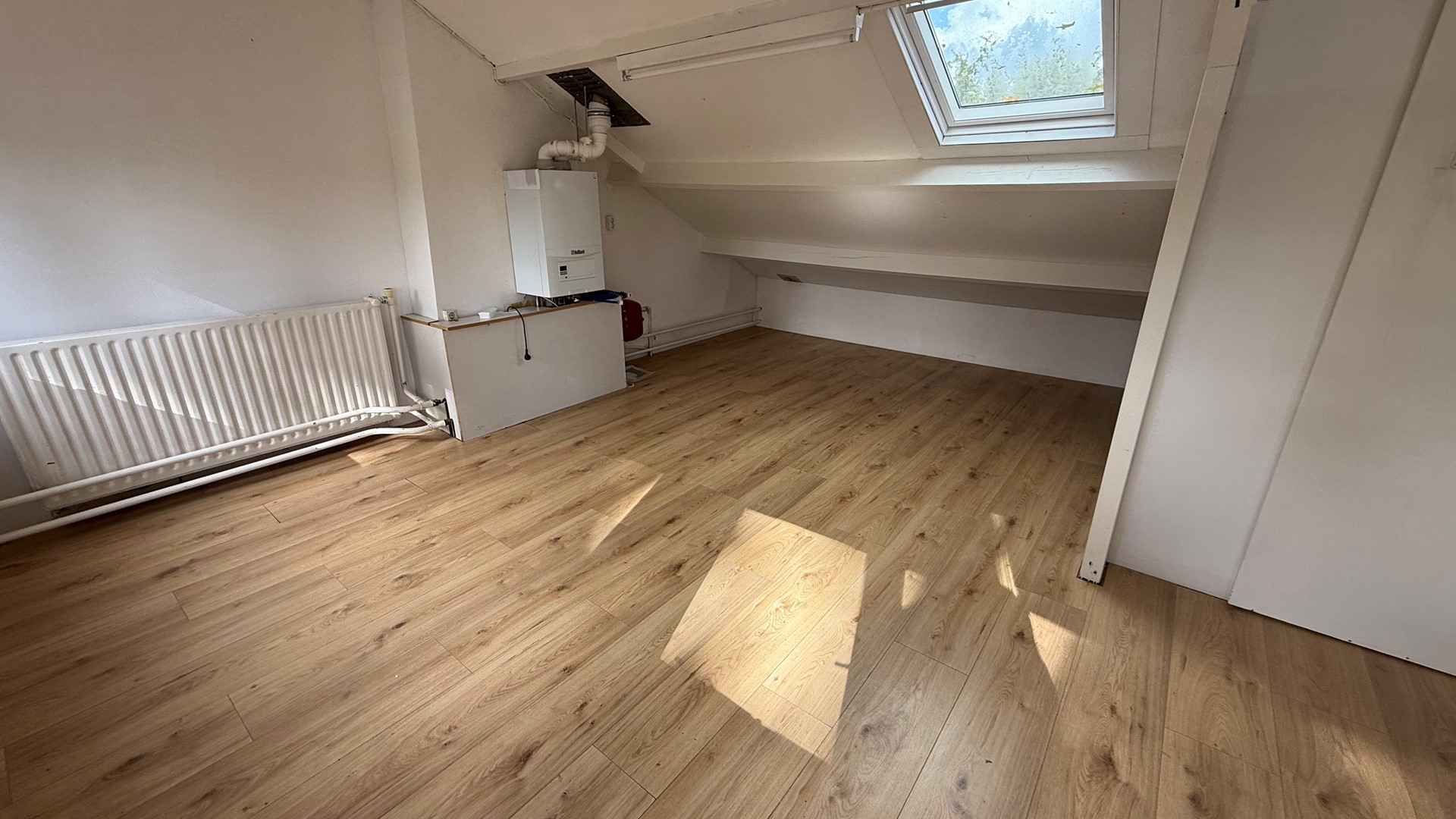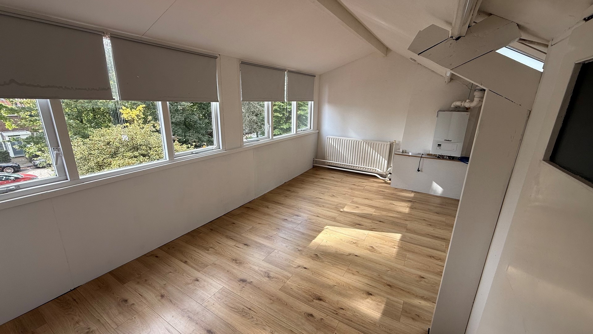 - De gehele woonkamer is voorzien van vloerverwarming en een houtenvloer