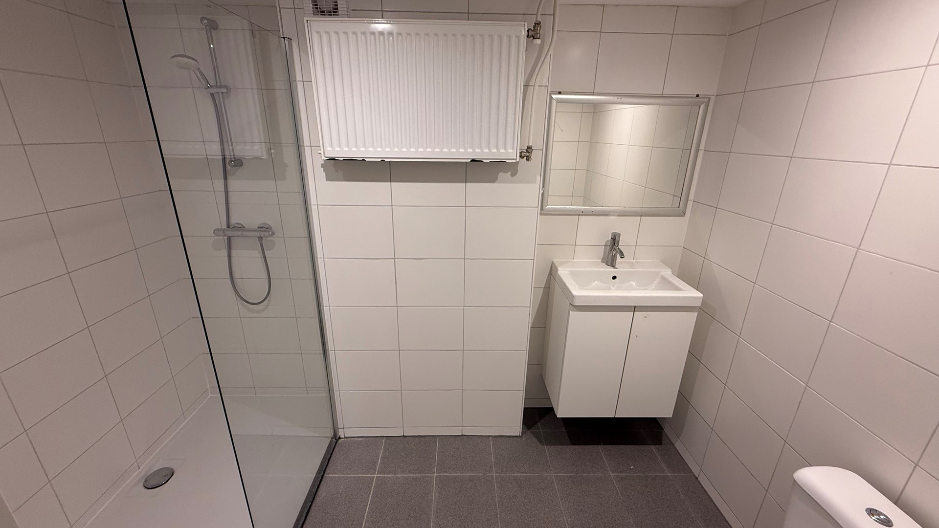 Overloop met toegang tot drie volwaardige slaapkamers en de badkamer. De badkamer is voorzien van een inloop douche, wastafel en tweede toilet.