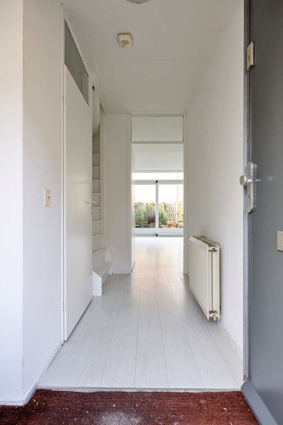Een oase van ruimte en licht, Zodra je binnenstapt via de nette voortuin, valt direct de aangename breedte van de woning op. De hal verwelkomt je met een praktische meterkast en een modern toilet, waarna je doorloopt naar het hart van het huis: de lichte woonkamer. Dankzij de grote raampartijen en de tuingerichte indeling baad je hier altijd in het daglicht. De schuifpui naar de verzorgde achtertuin maakt dat binnen en buiten prachtig in elkaar overlopen. Of je nu samen met het gezin aan tafel zit of ‘s zomers de barbecue aansteekt; hier voel je je meteen thuis.