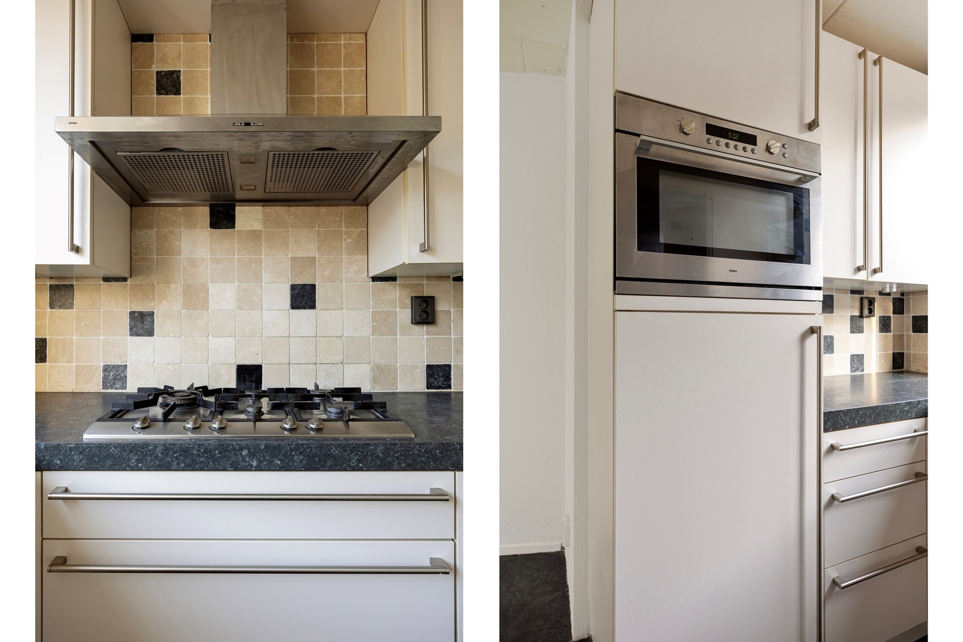 Aan de voorzijde van de woning bevindt zich de sfeervolle halfopen keuken. Hier bereid je moeiteloos de lekkerste maaltijden, geholpen door de diverse hoogwaardige inbouwapparatuur. Koken doe je met uitzicht op de groene straat aan de voorzijde altijd gezellig, altijd levendig.