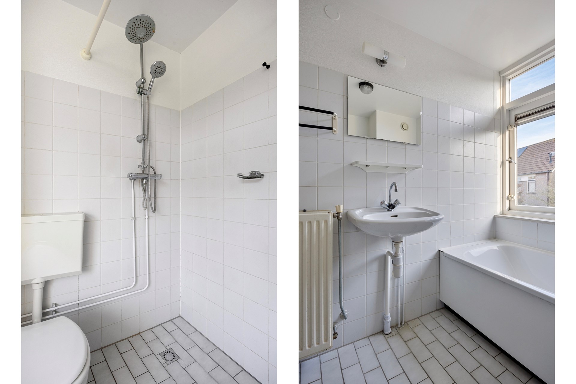 Via de trap in de hal bereik je de eerste verdieping. Hier bevinden 3 slaapkamers waarvan er één zeer royale is, allen voorzien van prettige lichtinval. De badkamer is praktisch ingedeeld met een douche, een tweede toilet en een wastafelmeubel.