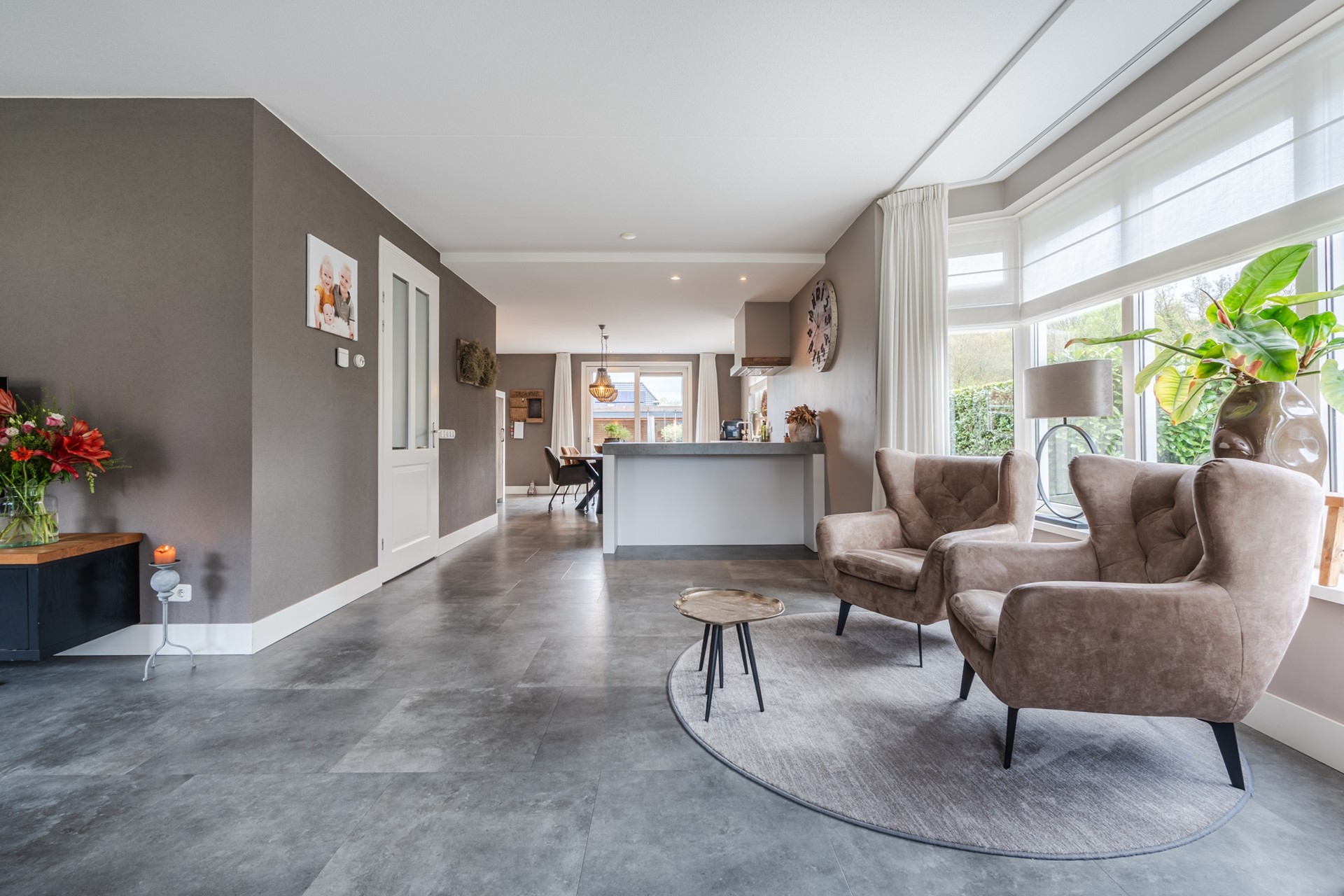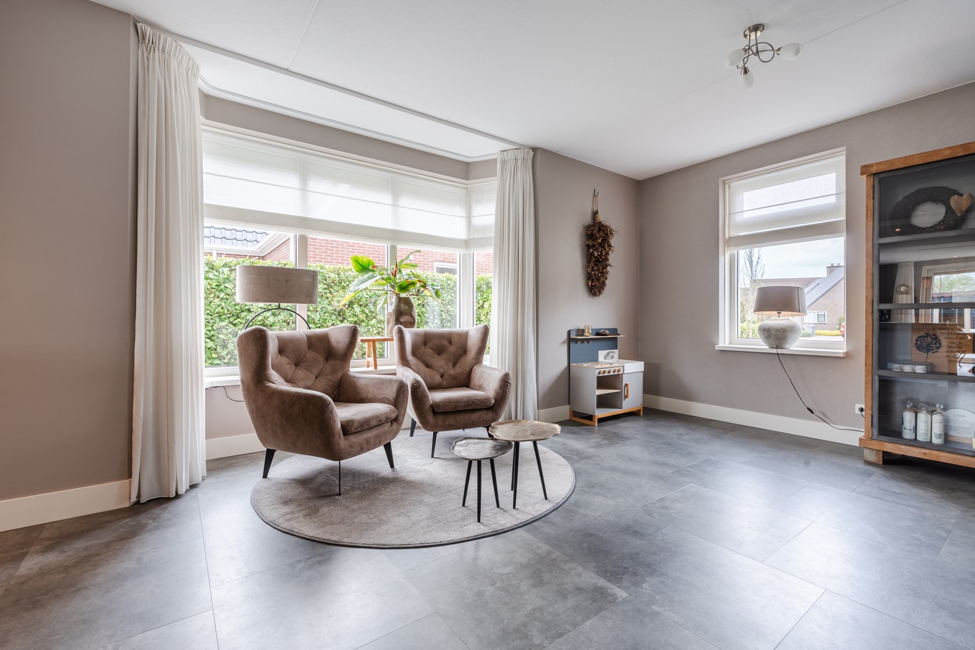 - Lichte, L-vormige, woonkamer met erker