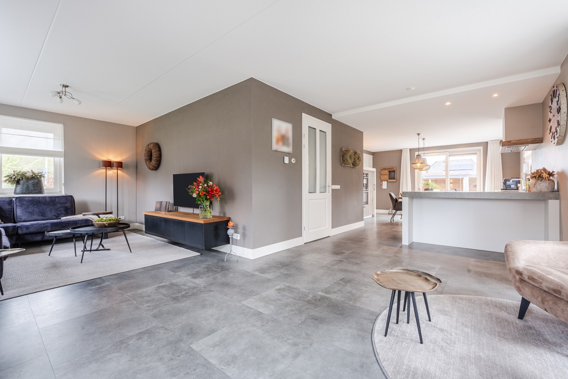 Binnen valt direct de ruimte en het comfort op. De begane grond is voorzien van een plavuizen vloer met vloerverwarming en biedt daarnaast het gemak van slapen en baden op de begane grond. Ideaal voor wie gelijkvloers wil wonen, maar ook aantrekkelijk voor gezinnen die gewoon veel leefruimte zoeken.