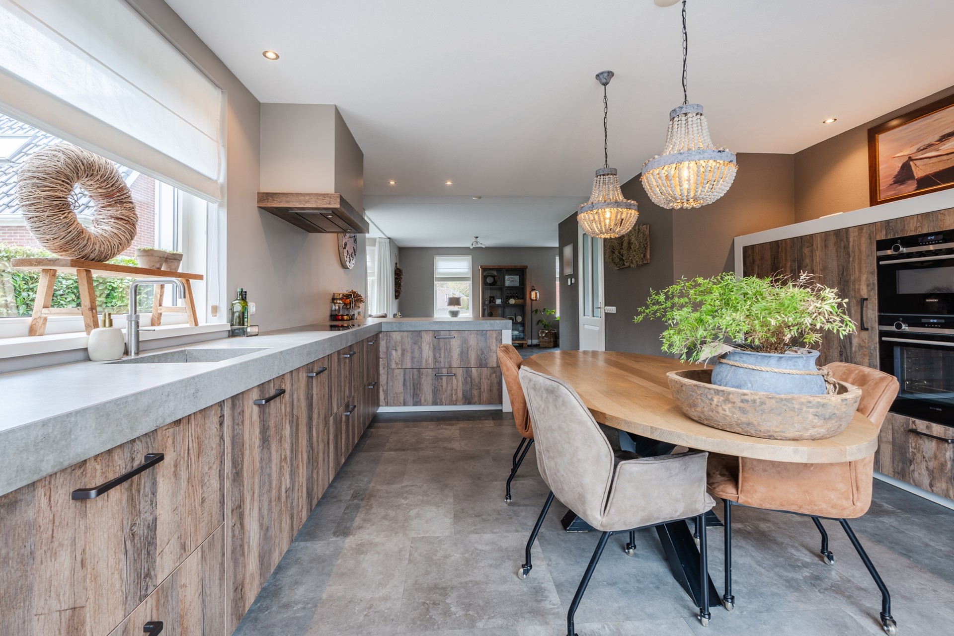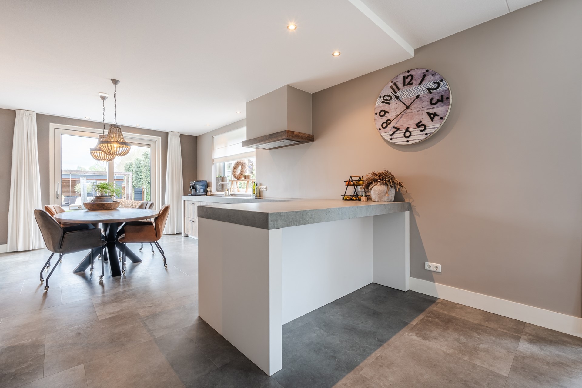 - Heerlijke, tuingerichte woonkeuken met schuifpui naar het terras. De moderne inbouwkeuken met bouwjaar 2021 beschikt over diverse inbouwapparatuur; Quooker (type: Cube met kokend, plat gekoeld en bruisend water), Vaatwasser, Inductiekookplaat, afzuigkap, koelkast, oven en een combi-oven.