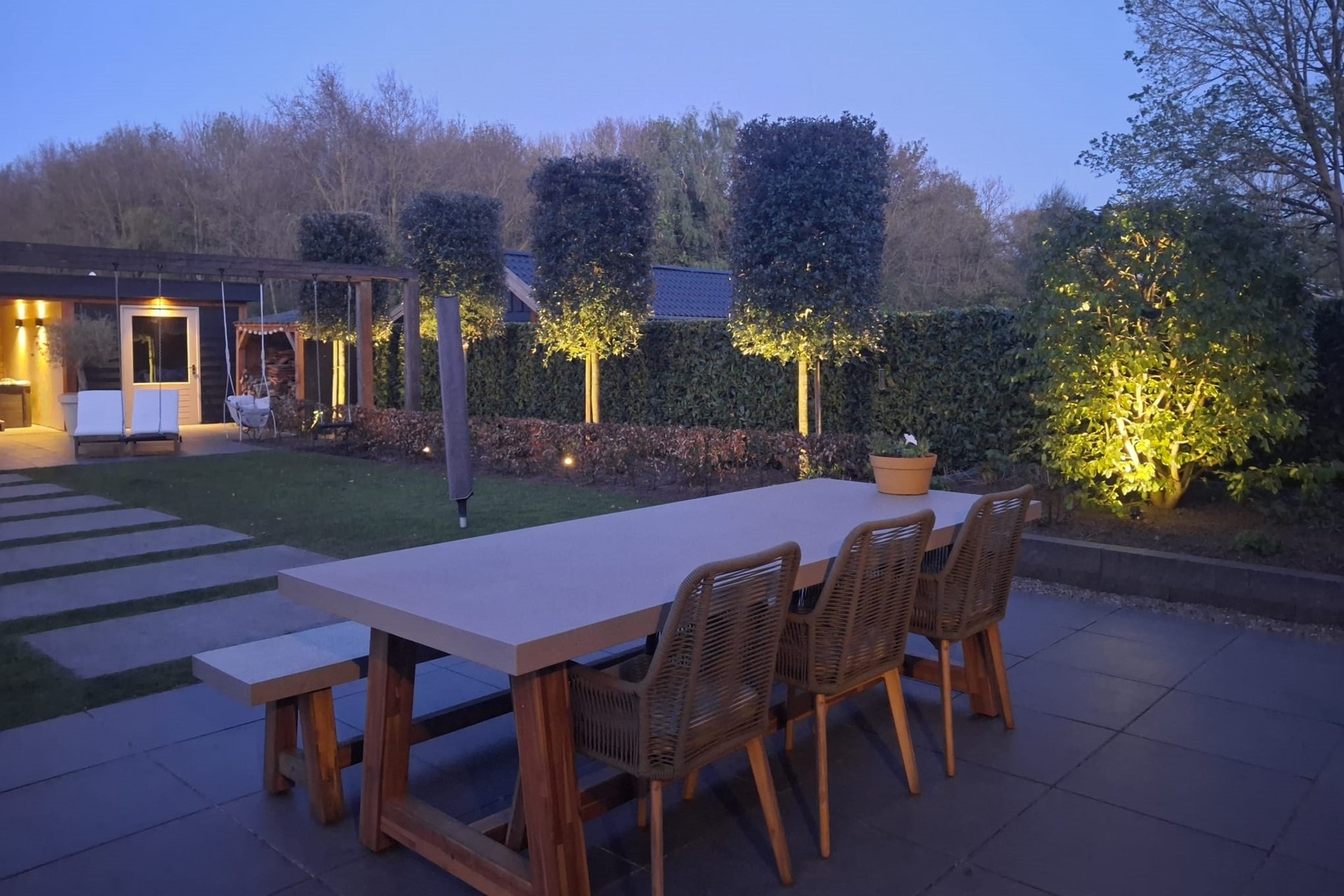 - Fraaie, onder architectuur, aangelegde tuin met tuinverlichtingsplan