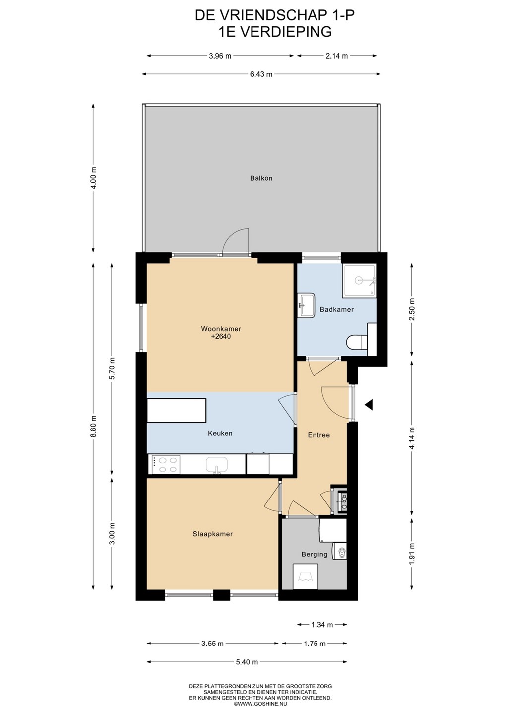 Op de begane grond heb je een eigen berging voor fietsen en overige spullen. Via de trap kom je bij de eigen voordeur op 1 hoog.