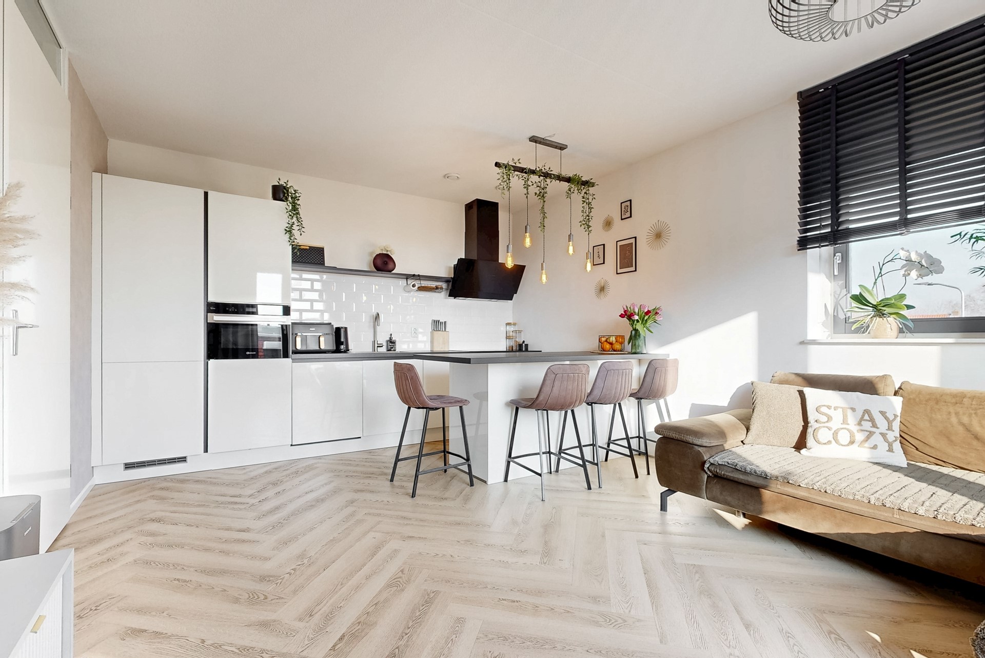 Het appartement is zeer sfeervol, heeft een luxe en nieuwe keuken en badkamer. Door het hele appartement ligt een pvc-vloer met visgraatmotief en er is vloerverwarming. Dankzij de hoekligging geniet de woonkamer licht en uitzicht aan zowel de achterzijde als de zijkant. Het royale dakterras is gelegen op het zonnige zuiden gelegen en vormt op mooie dagen een verlengstuk van de woonkamer. Hier kan jet veel vrienden of familie zitten en je hebt een vrij uitzicht. Kortom, wil je niet klussen, energiezuinig wonen op een leuke rustige plek maar wel met heel veel faciliteiten en voorzieningen en ook nog goede verbindingen naar Hoorn, Alkmaar of Amsterdam? Dan is dit wellicht wel jouw woning!