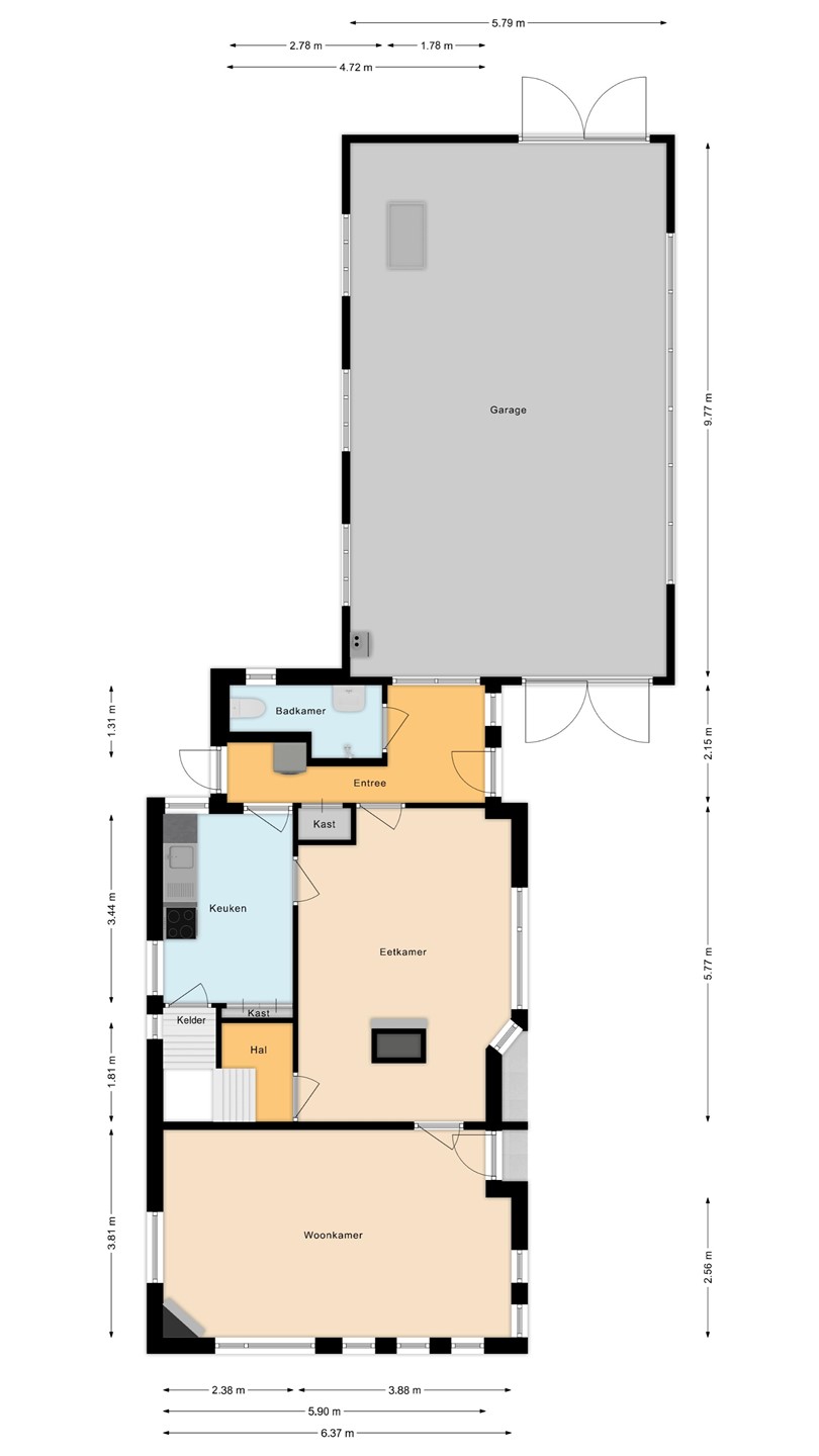 - Grote aangebouwde stenen garage/werkplaats (57m²) met ruime zolder
