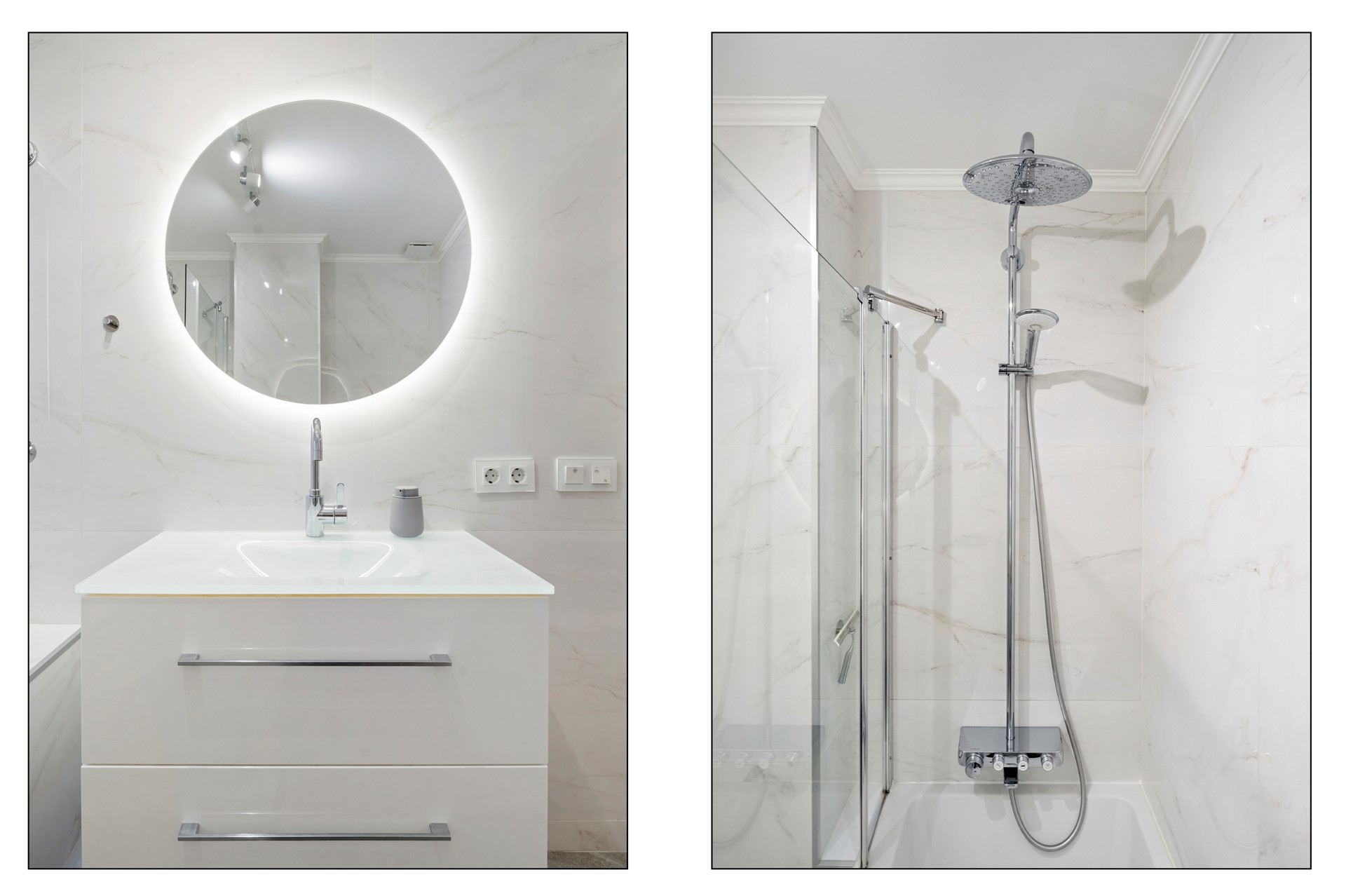 Landing with three bright and spacious bedrooms, inclusive of one walk-in wardrobe. The luxurious bathroom (2020) includes a wall closet, bathtub/shower combination, and a stylish vanity unit.