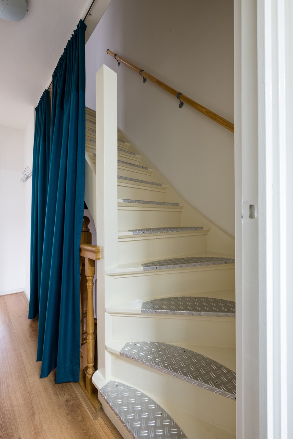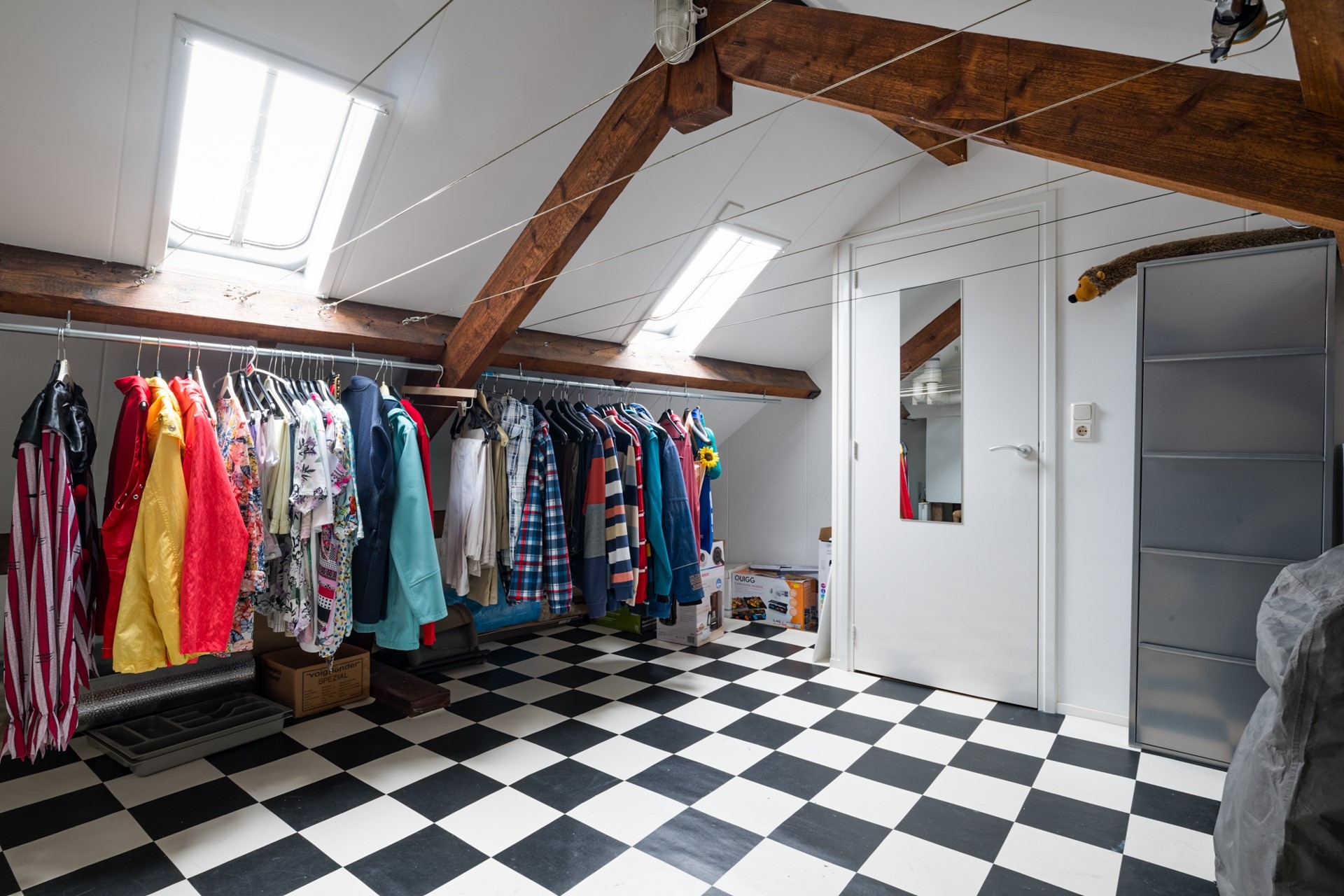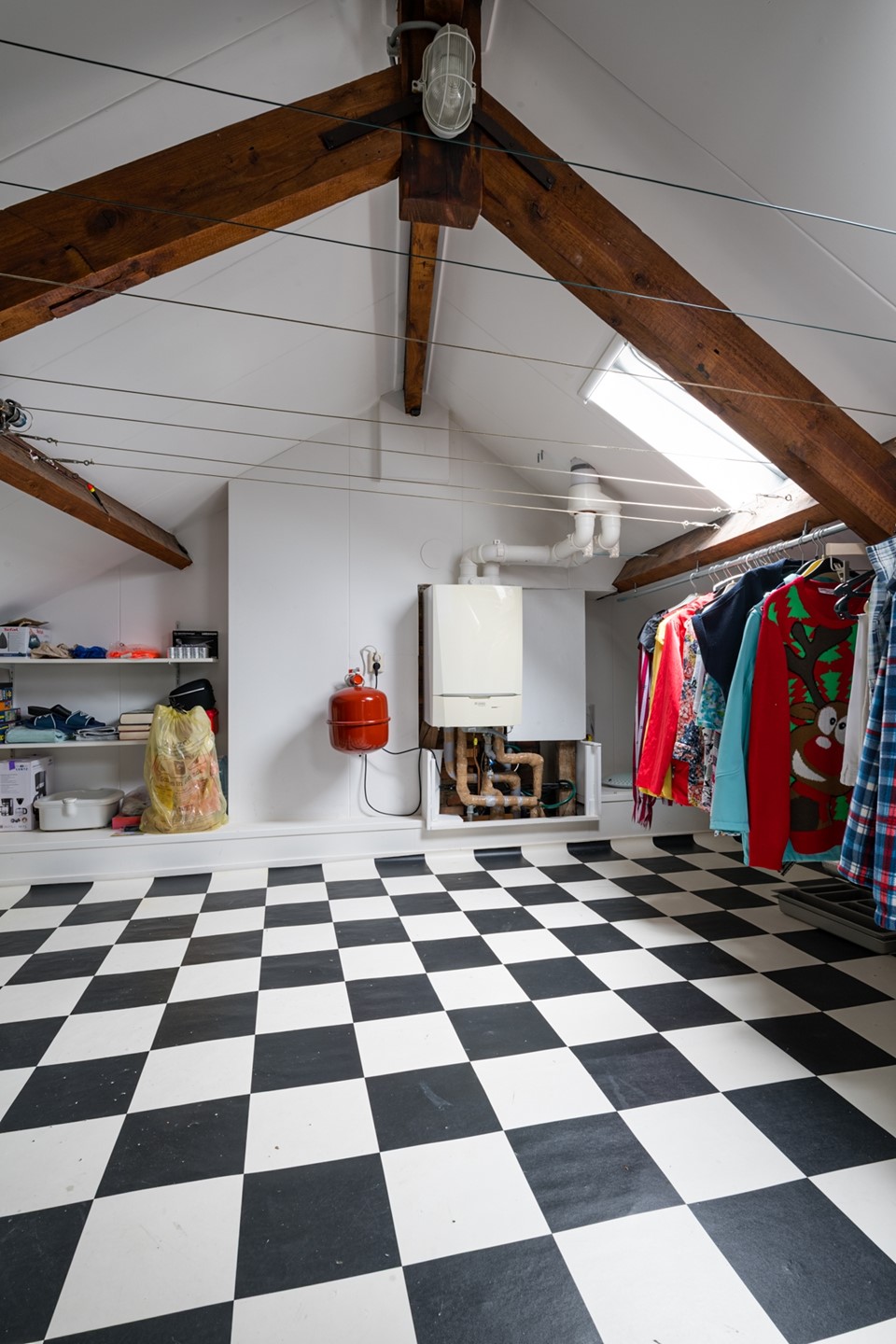 De tweede verdieping is bereikbaar via een vaste trap en vormt een volwaardige extra woonlaag. De gehele verdieping is afgewerkt met een linoleumvloer. Dankzij de twee dakramen valt er prettig daglicht binnen, waardoor de ruimte licht en aangenaam aanvoelt. Hier bevindt zich tevens de cv-installatie. De verdieping biedt volop mogelijkheden voor gebruik als extra slaapkamer, werkkamer of hobbyruimte. De zichtbare kapconstructie geeft het geheel bovendien een karakteristieke en sfeervolle uitstraling.