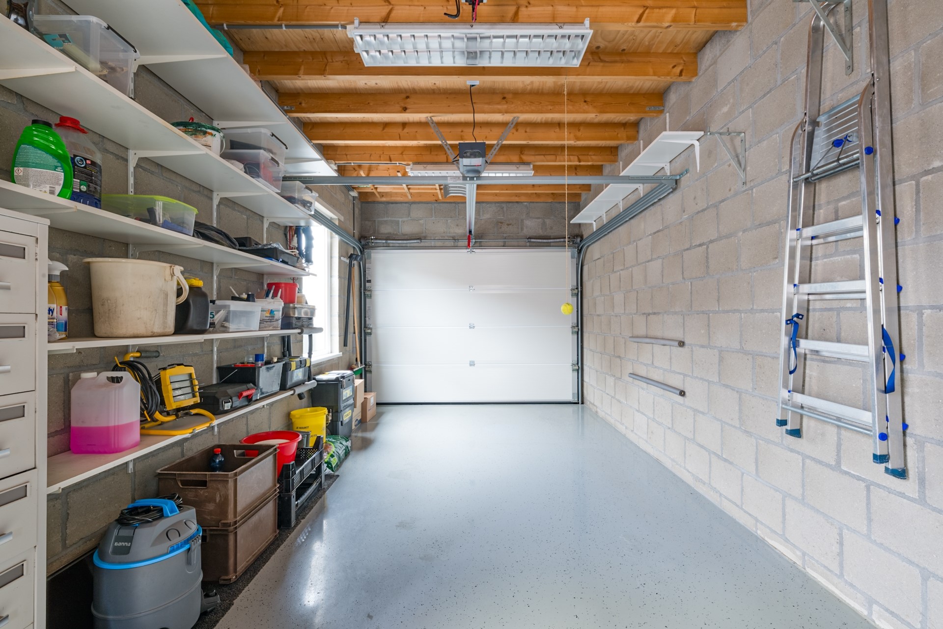 De in 2017 gebouwde garage is zowel via de achterzijde van de tuin als via de achtergelegen oprit bereikbaar, waar u een auto op eigen terrein kunt parkeren. De garage is voorzien van een sectionaalpoort, kunststof kozijnen met HR++ beglazing en elektriciteit. De epoxy vloercoating zorgt voor een nette en duurzame afwerking, waardoor de ruimte geschikt is voor het stallen van een auto, fietsen en overige spullen.