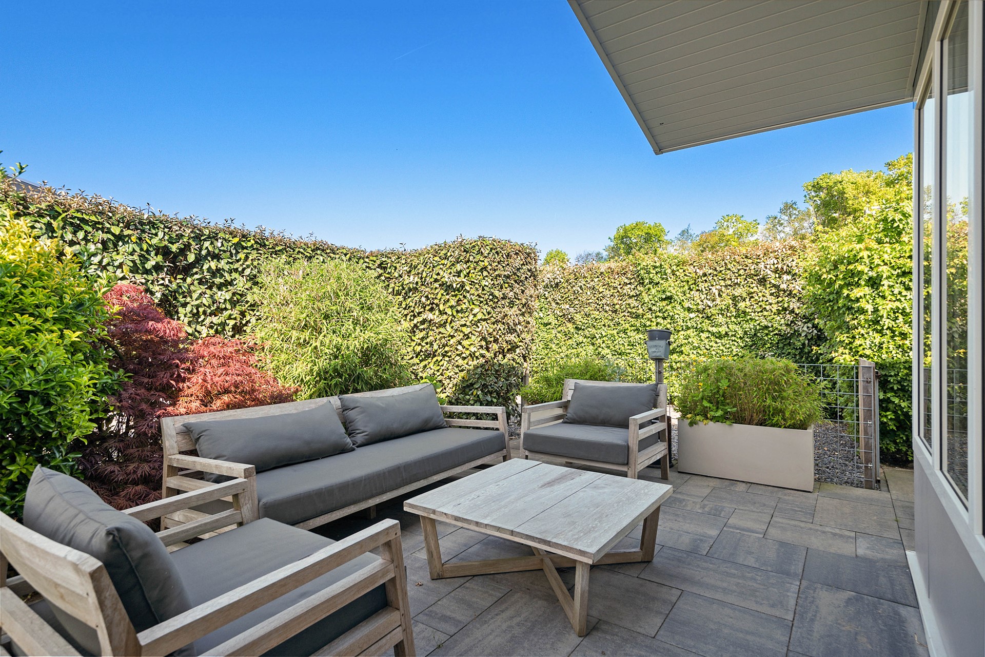Ruime, zonnige tuin met veel privacy op het zuidwesten met terras en omheining veilig voor huisdieren. Een heerlijke plek om van de rust en het groen te genieten.