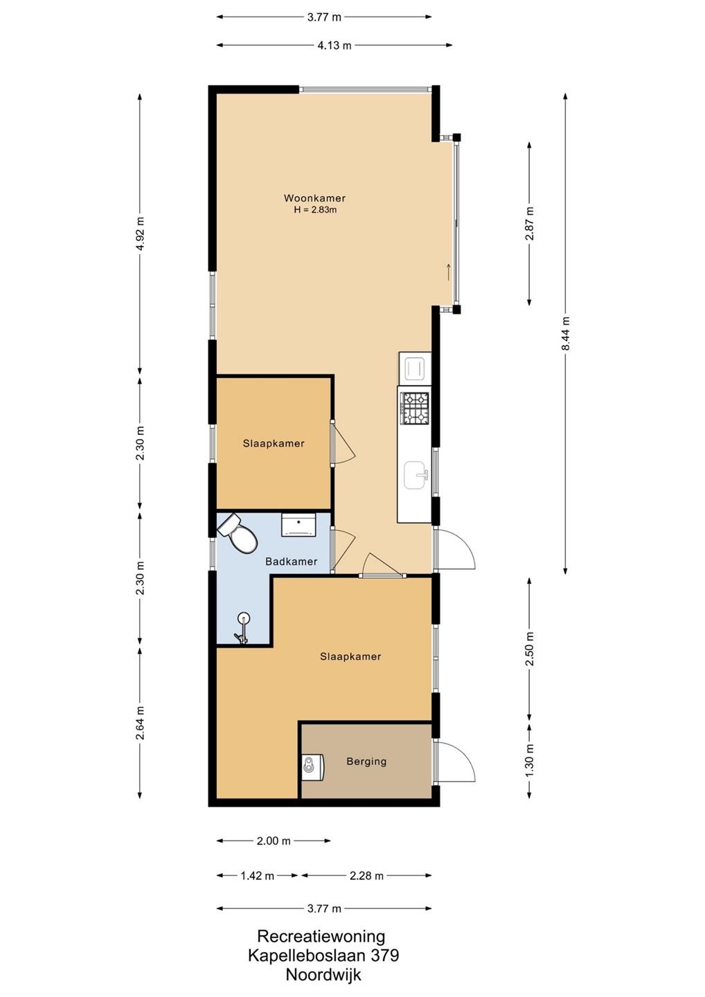 Twee slaapkamers, waarvan één met vaste kastenwand