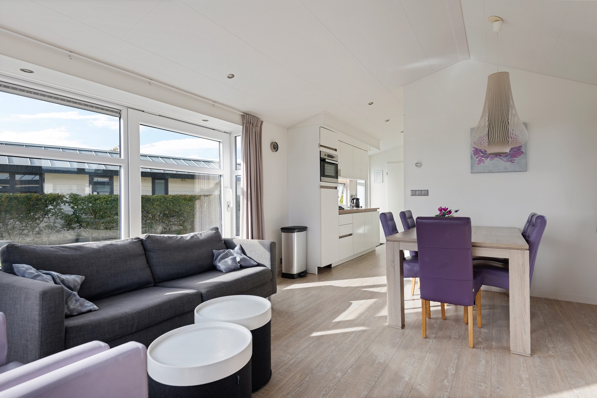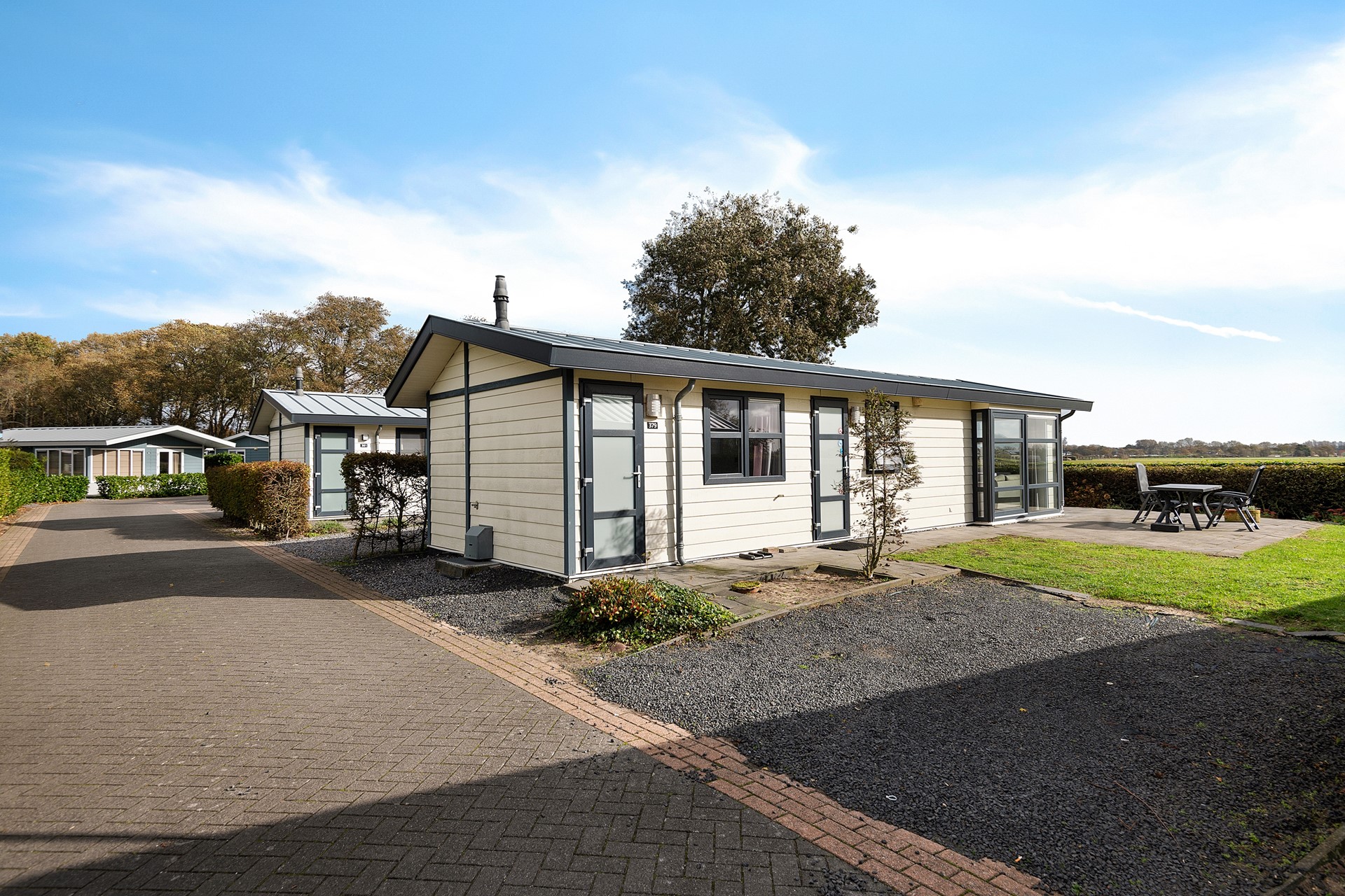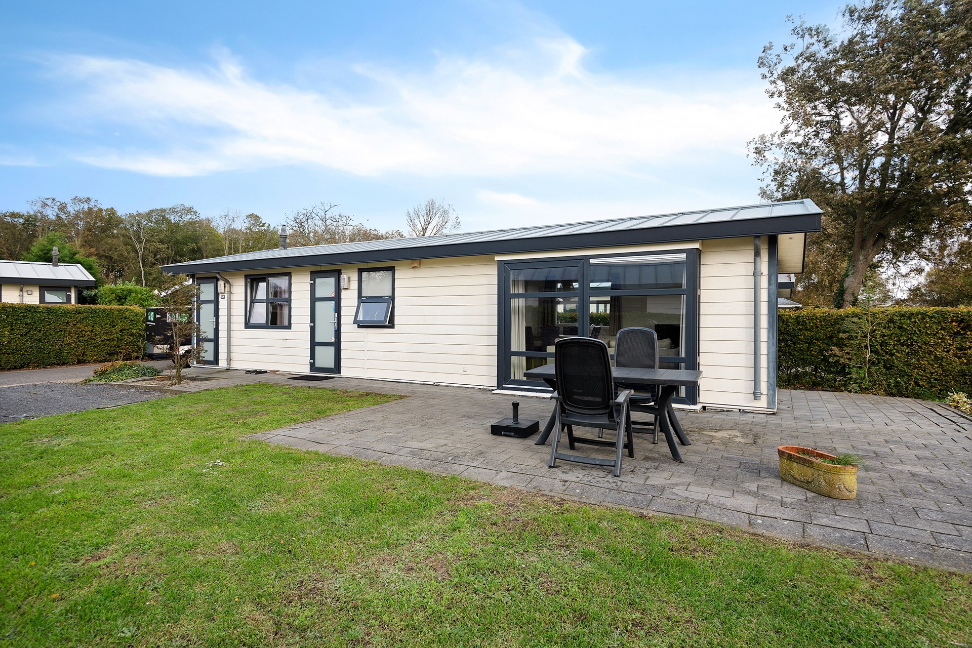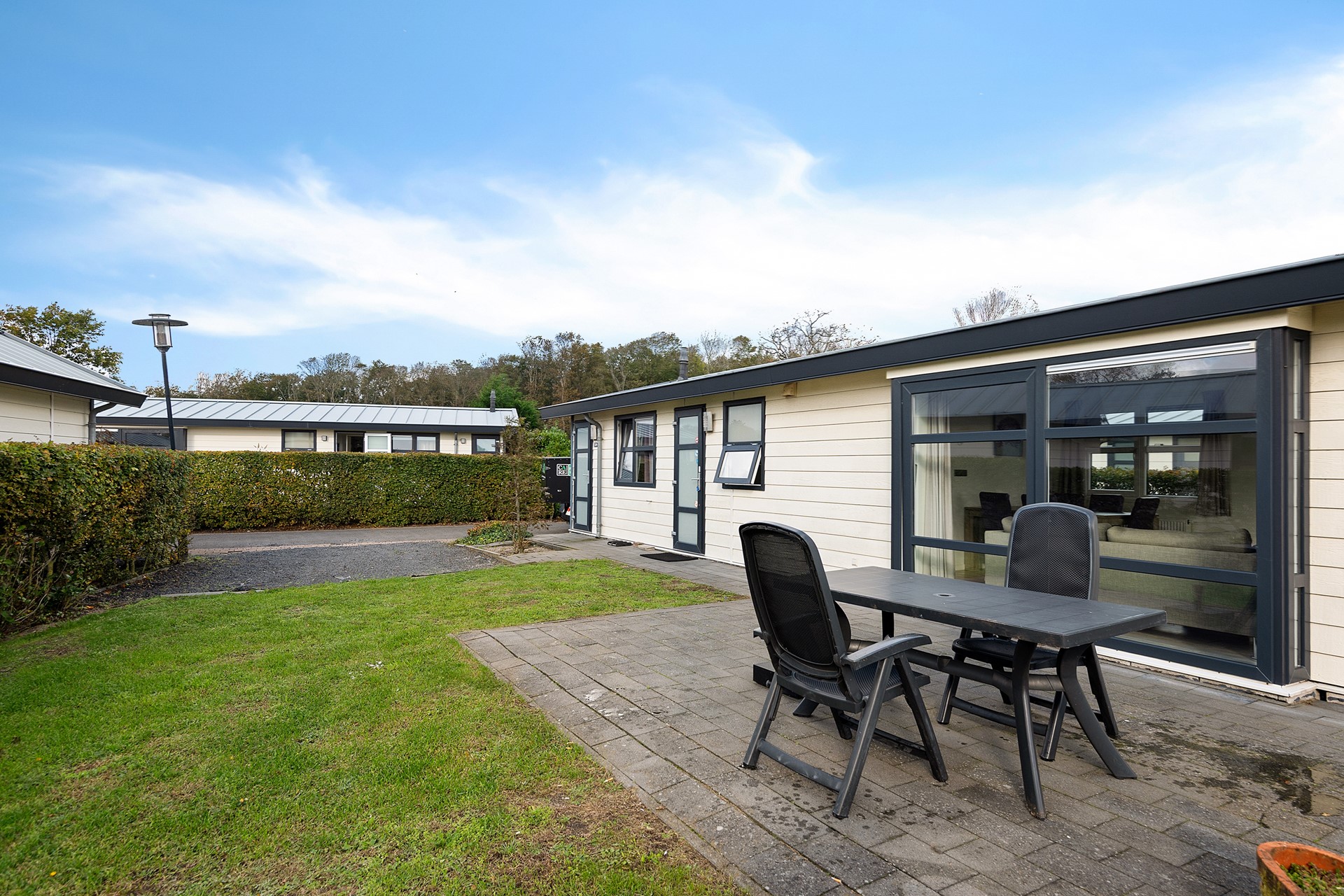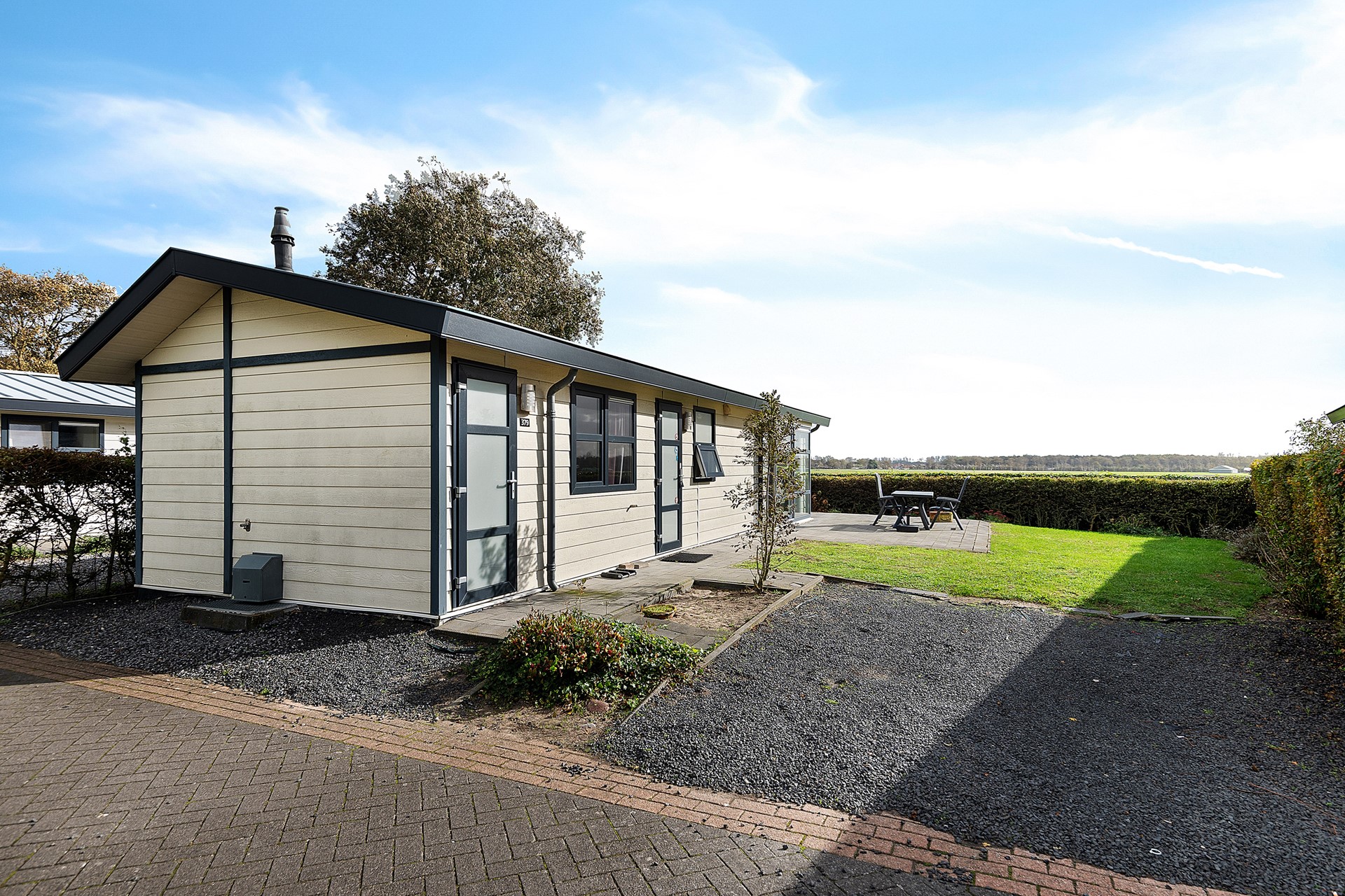 De woning is praktisch ingedeeld met een lichte woonkamer, open keuken, twee slaapkamers en een moderne badkamer. De openslaande deuren naar het terras zorgen voor een heerlijk binnen-buiten gevoel. De tuin is onderhoudsvriendelijk aangelegd en biedt meerdere zitplekken om van de zon te genieten.
