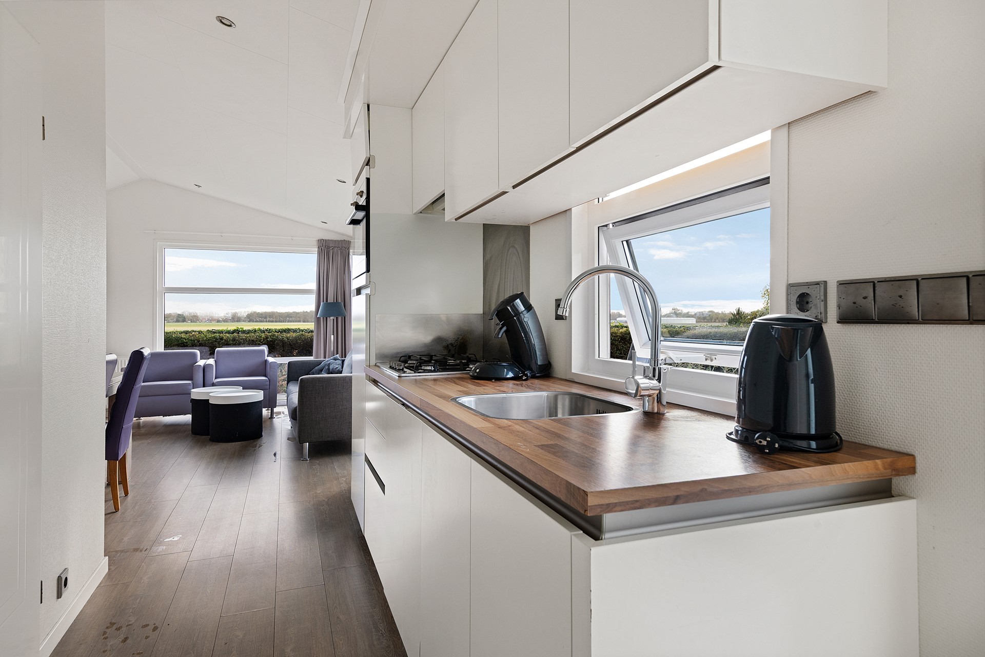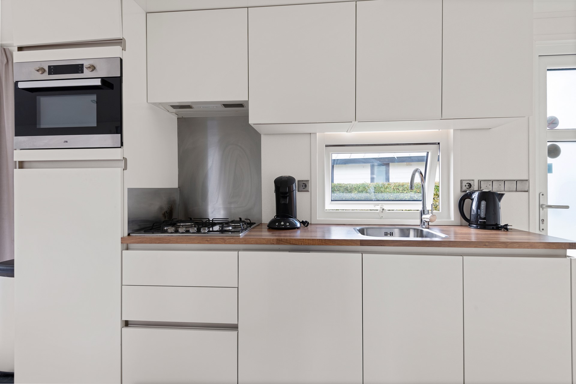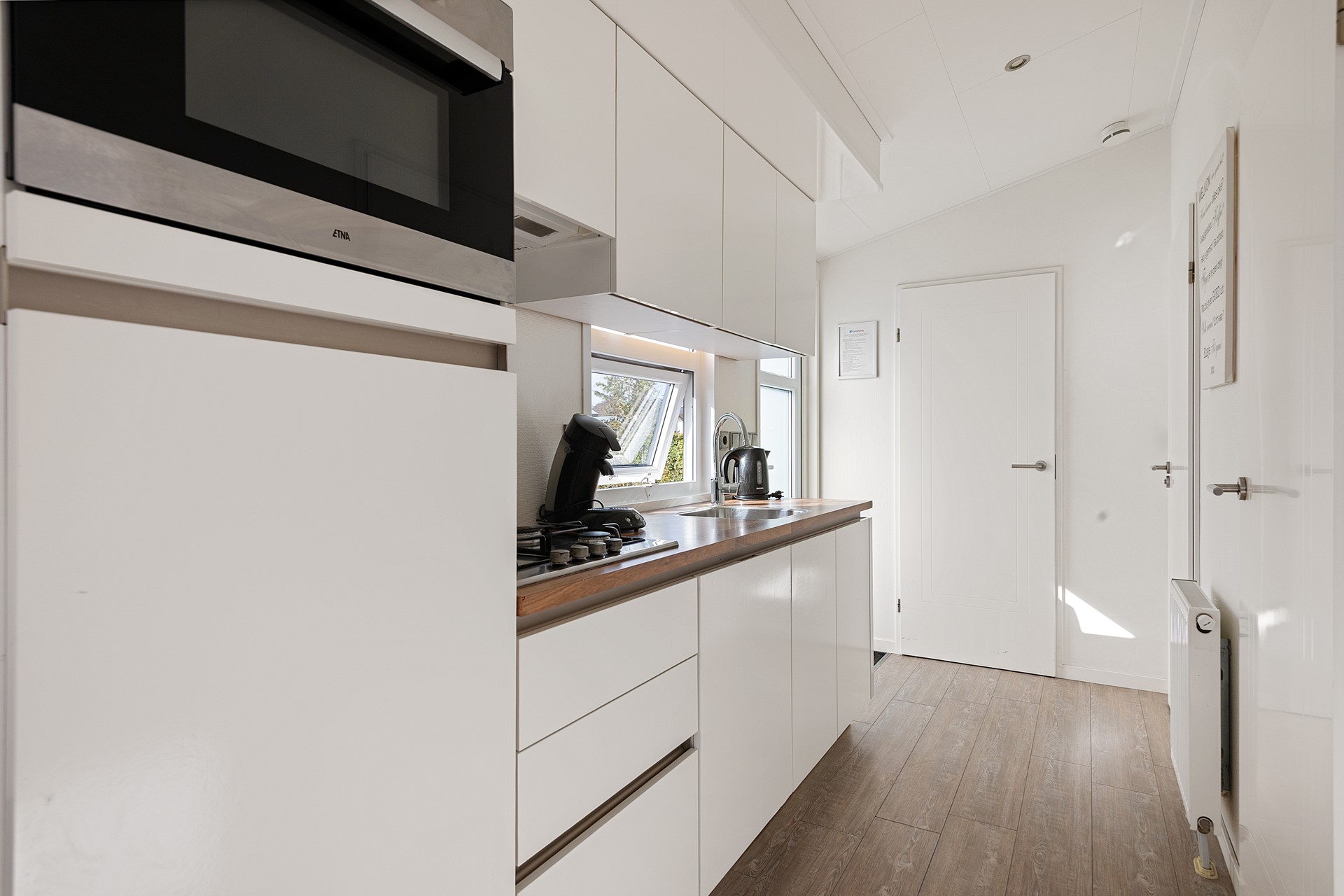 Open keuken in rechte opstelling met diverse inbouwapparatuur