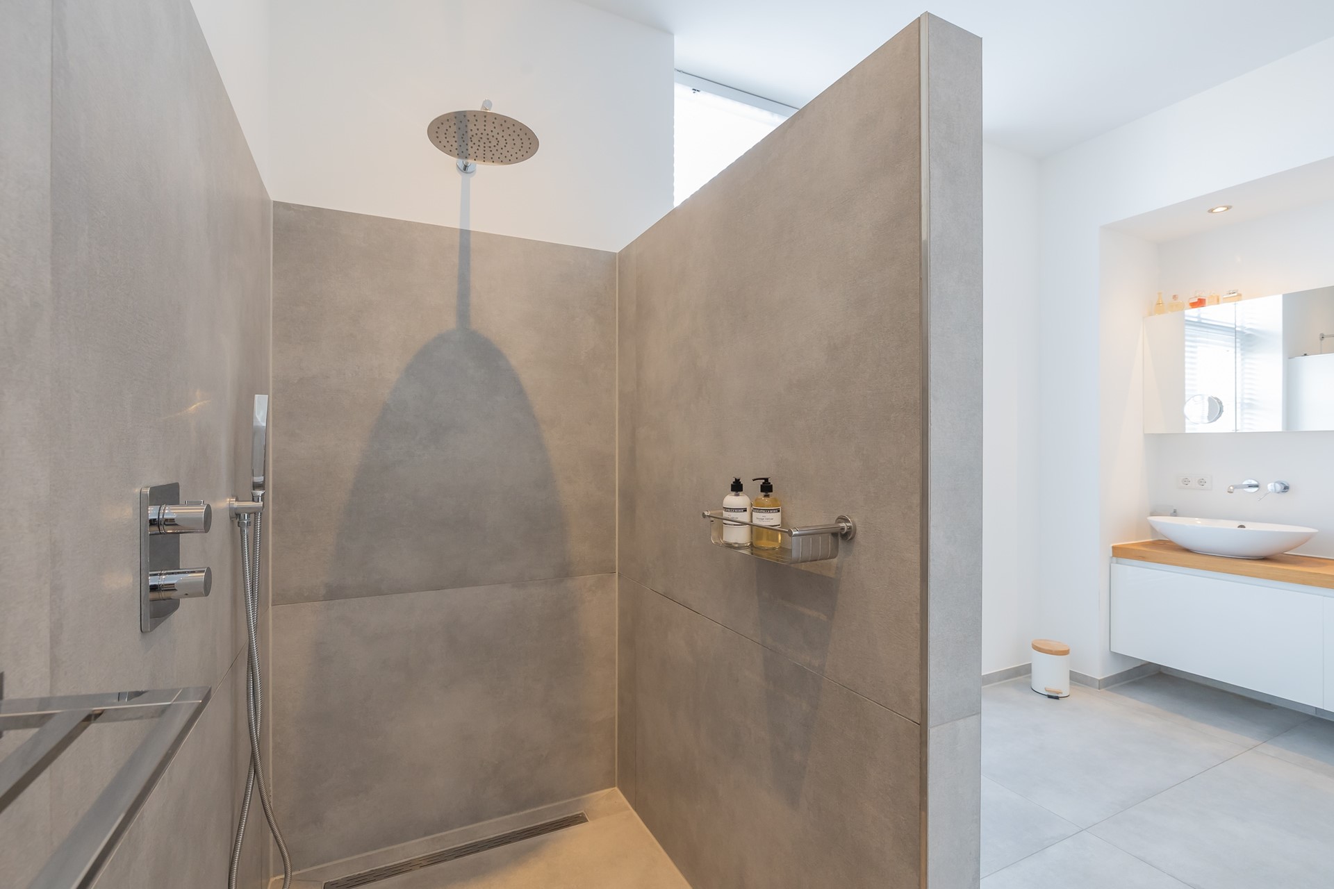 De slaapkamers zijn ruim en licht, waarbij beide slaapkamers op de eerste etage beschikken over een eigen balkon. De luxe badkamer vormt een comfortabele wellnessruimte met een ruime inloopdouche met regendouche, een toilet en een stijlvol badkamermeubel waarin de wasmachine en droger fraai zijn weggewerkt, met als extra pluspunt het balkon.