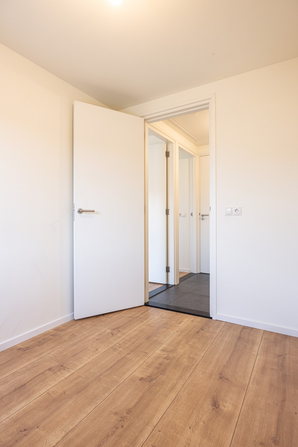 Op de eerste verdieping geeft de overloop toegang tot drie slaapkamers en de badkamer. De slaapkamers zijn allemaal afgewerkt met een laminaatvloer en beschikken over veel daglicht, wat zorgt voor een prettige en lichte uitstraling. Daarnaast zijn de kamers voorzien van kunststof kozijnen met HR++ beglazing, rolluiken en op maat gemaakte horren, wat bijdraagt aan een comfortabel binnenklimaat en extra privacy.