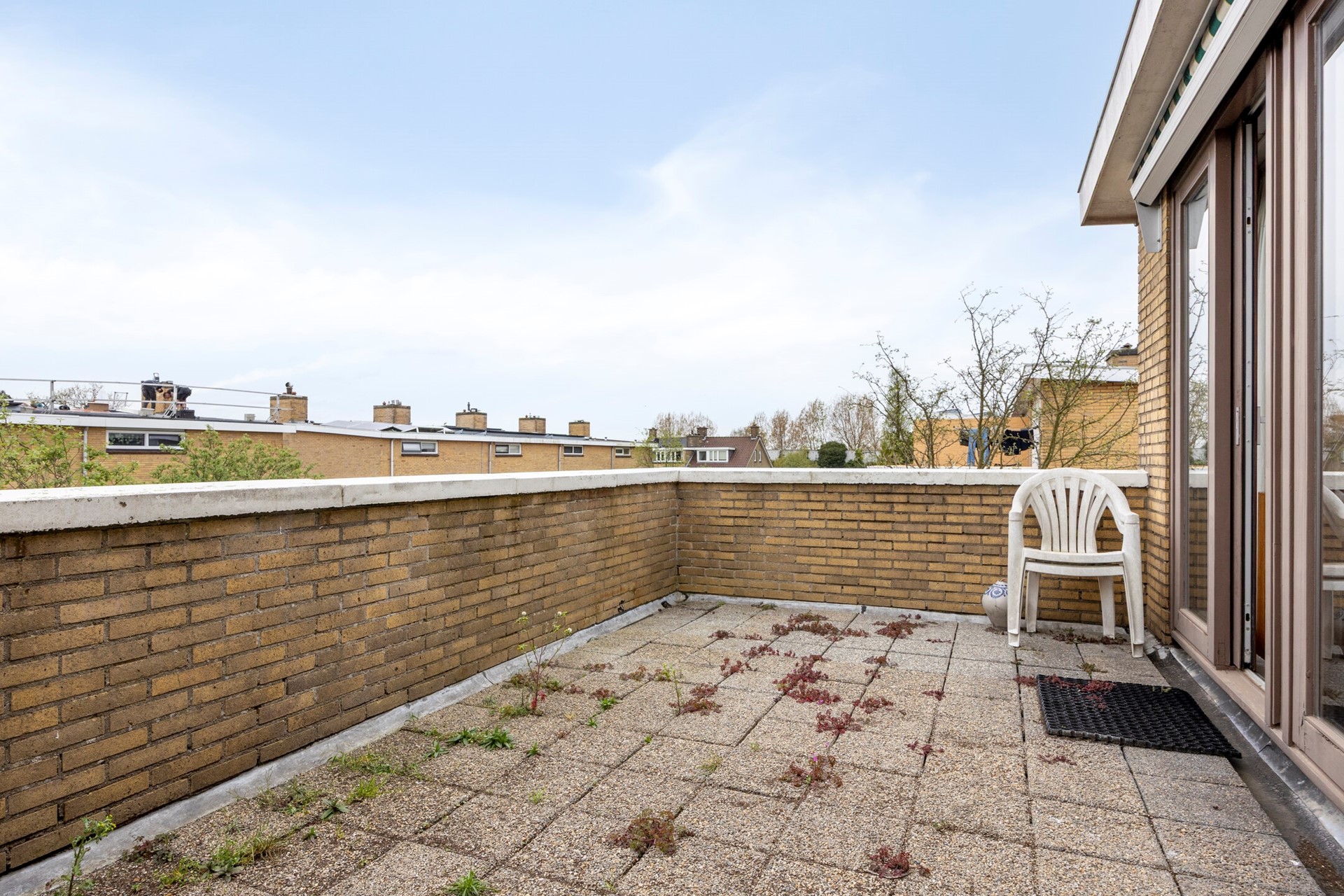 Overloop met deur naar het dakterras, slaapkamer met zijraam, ruime slaapkamer met schuifpui naar een zeer ruim en beschut dakterras. Sommige woningen in de straat hebben het dakterras nog bij de woning getrokken.