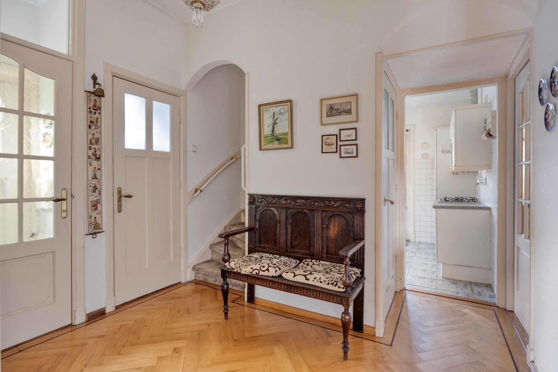 Bij binnenkomst aan de zijkant van de woning komt u, via een tochtportaal, in een ruime hal met visgraat parketvloer en aan de linkerzijde een toilet, verder is hier ook een zeer praktische verdiepte kelderkast. Via de centrale hal zijn alle vertrekken (zijkamer, woonkamer en keuken) te bereiken.