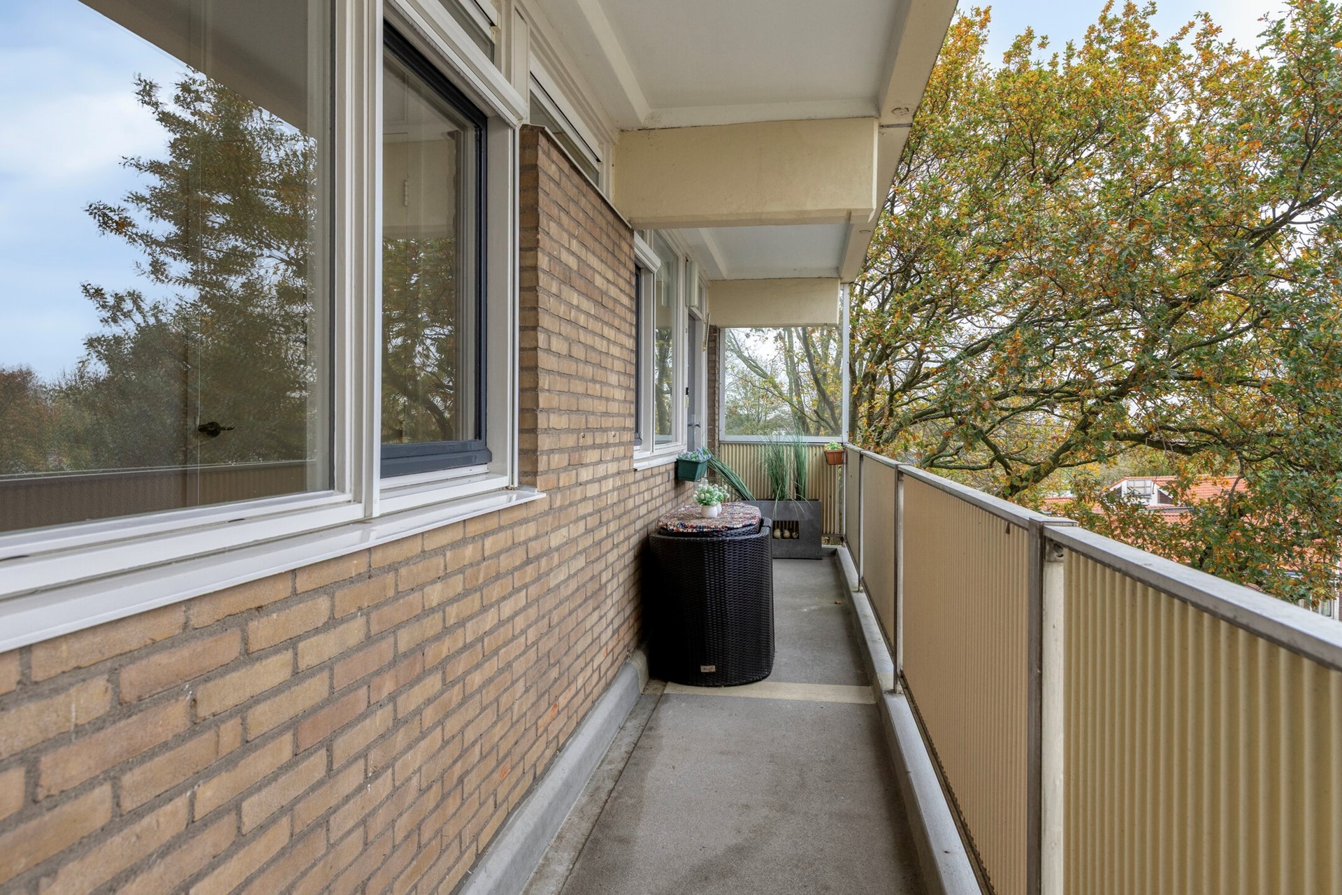 - Ruim en overdekt balkon aan de achterzijde op het westen (middag-avondzon) en overkapte galerij aan de voorzijde op het oosten (ochtendzon)