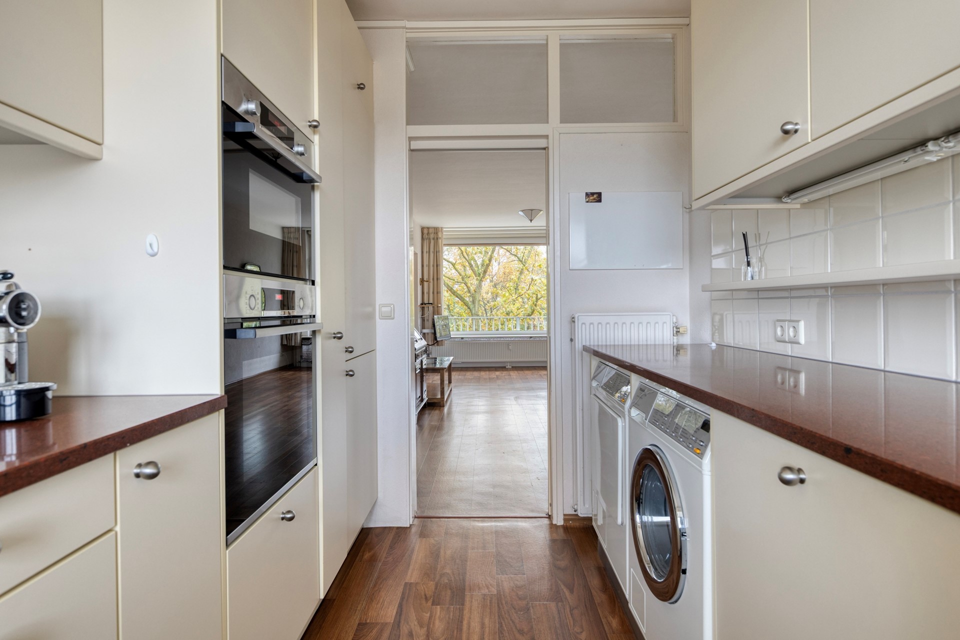 Omdat de woning separaat op (met aparte toegangsdeur) op een hoek ligt, rechts naast de lift/trappenhuis, woont u hier heerlijk rustig met veel privacy en met als bonus een extra balkon aan de voorzijde met ochtendzon. Het appartement is o.a. voorzien van lichte woon-eetkamer, zijkamer, separaat vrij hangend toilet, 2 (slaap)kamers, moderne U-vormige keuken met alle denkbare inbouwapparatuur, moderne badkamer en twee balkons (zowel aan voorzijde op het oosten als middag-avondzon op het westen).