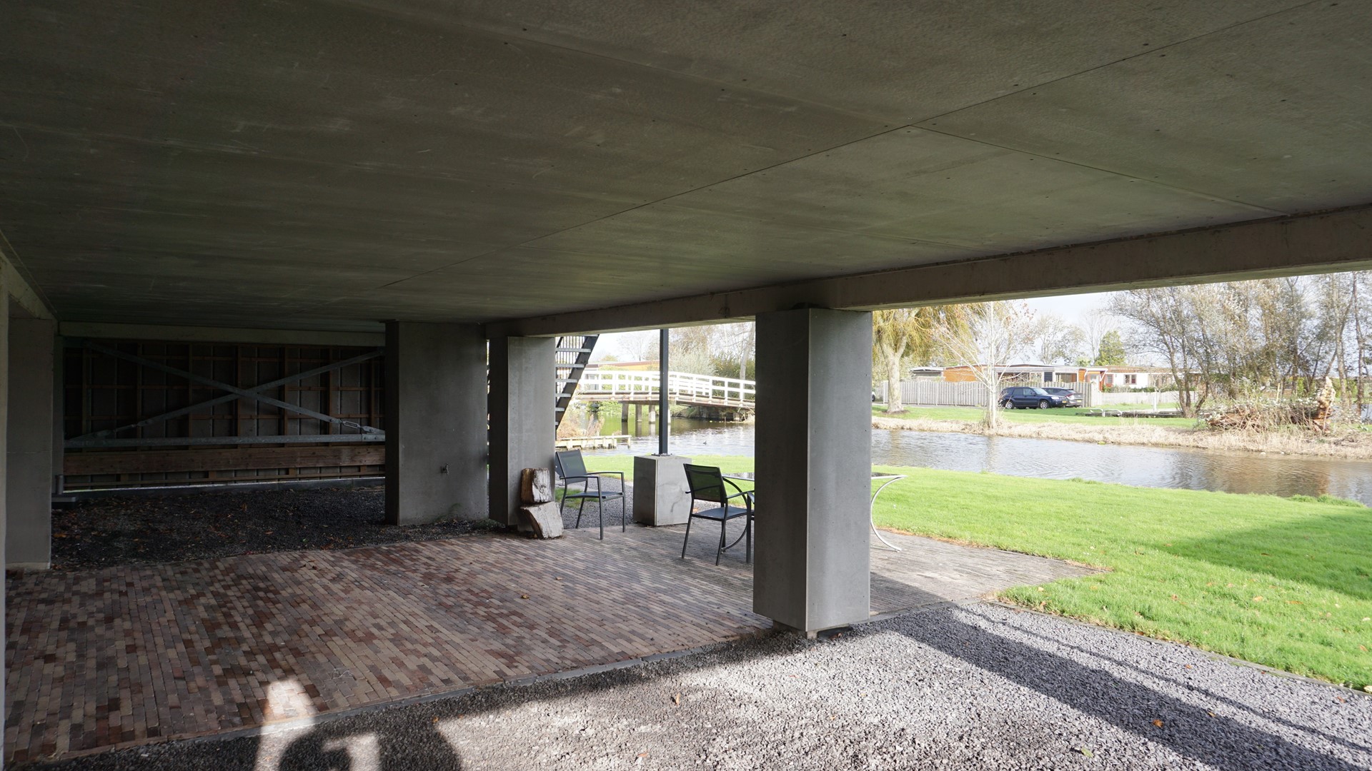 Ruime parkeergelegenheid voor drie auto's alleen al onder het huis. Ook is er een verharde parkeerplaats aanwezig. Via een stalen trap komt u op het bordes bij de voordeur op de eerste verdieping.
