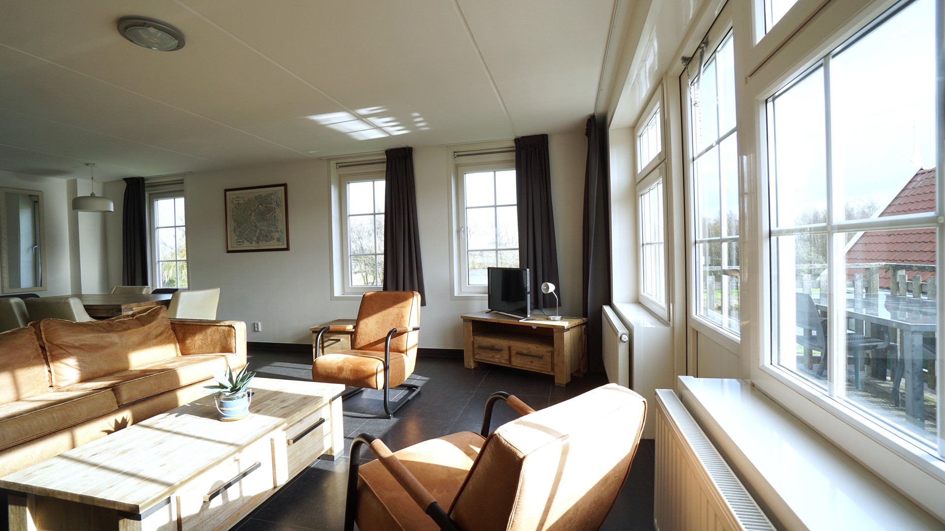 Vanuit de woonkamer is het ruime balkon (ruim 11m²) eveneens met aanwezig meubilair toegankelijk met prachtig vrij uitzicht over water en groen.