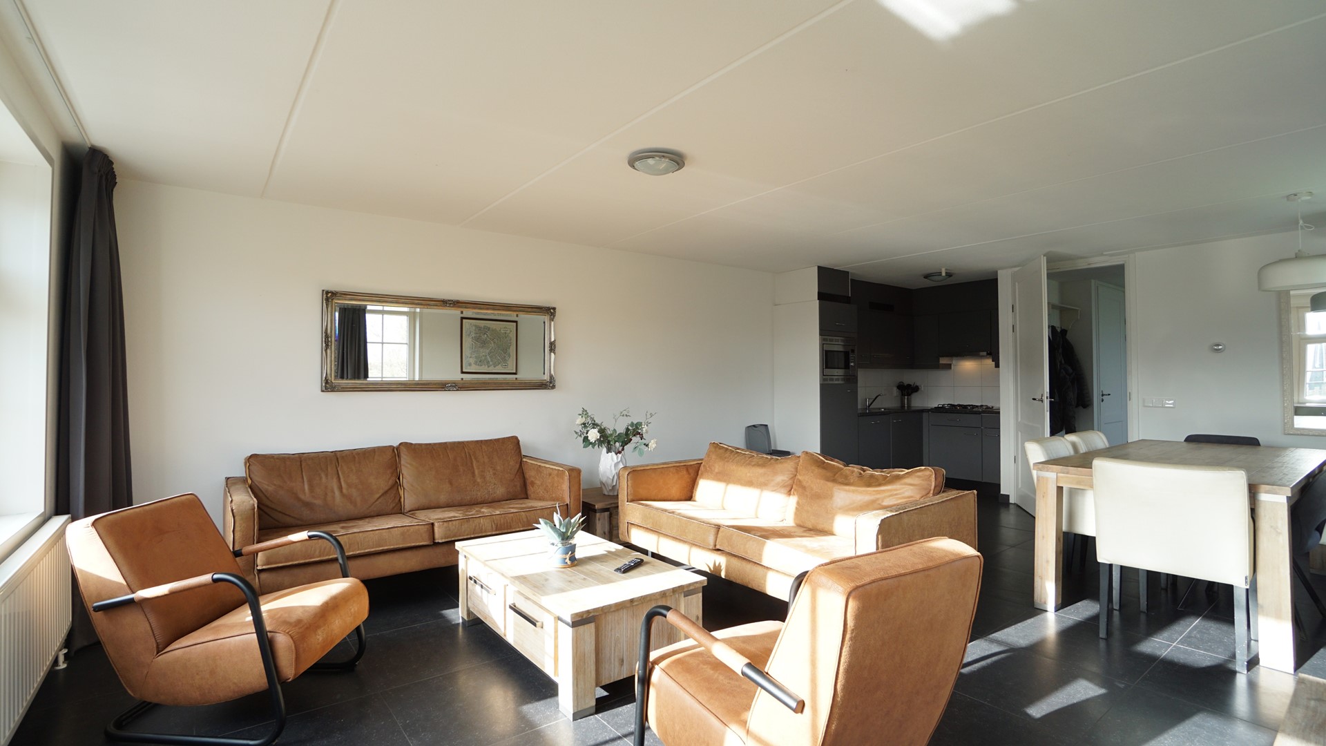 Authentieke 6-persoons woning met 3 slaapkamers (allen ca.13,5m²) open keuken, lichte woonkamer ca. 34m²), groot balkon (11m²) en tuin met terras en veel gazon. Hij is vrijstaand, gebouwd op palen en voorzien van modern comfort met overdekte parkeergelegenheid op eigen erf.