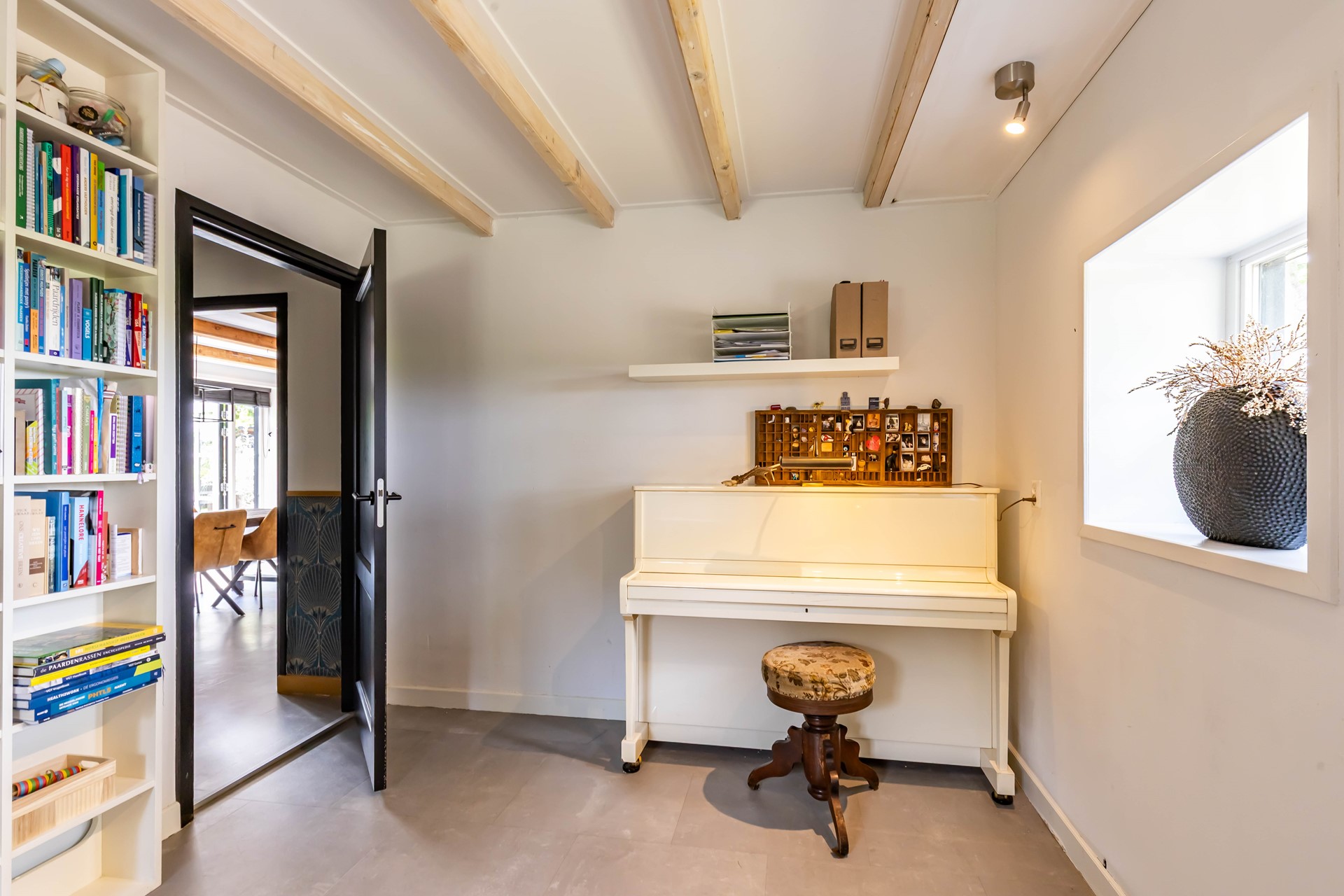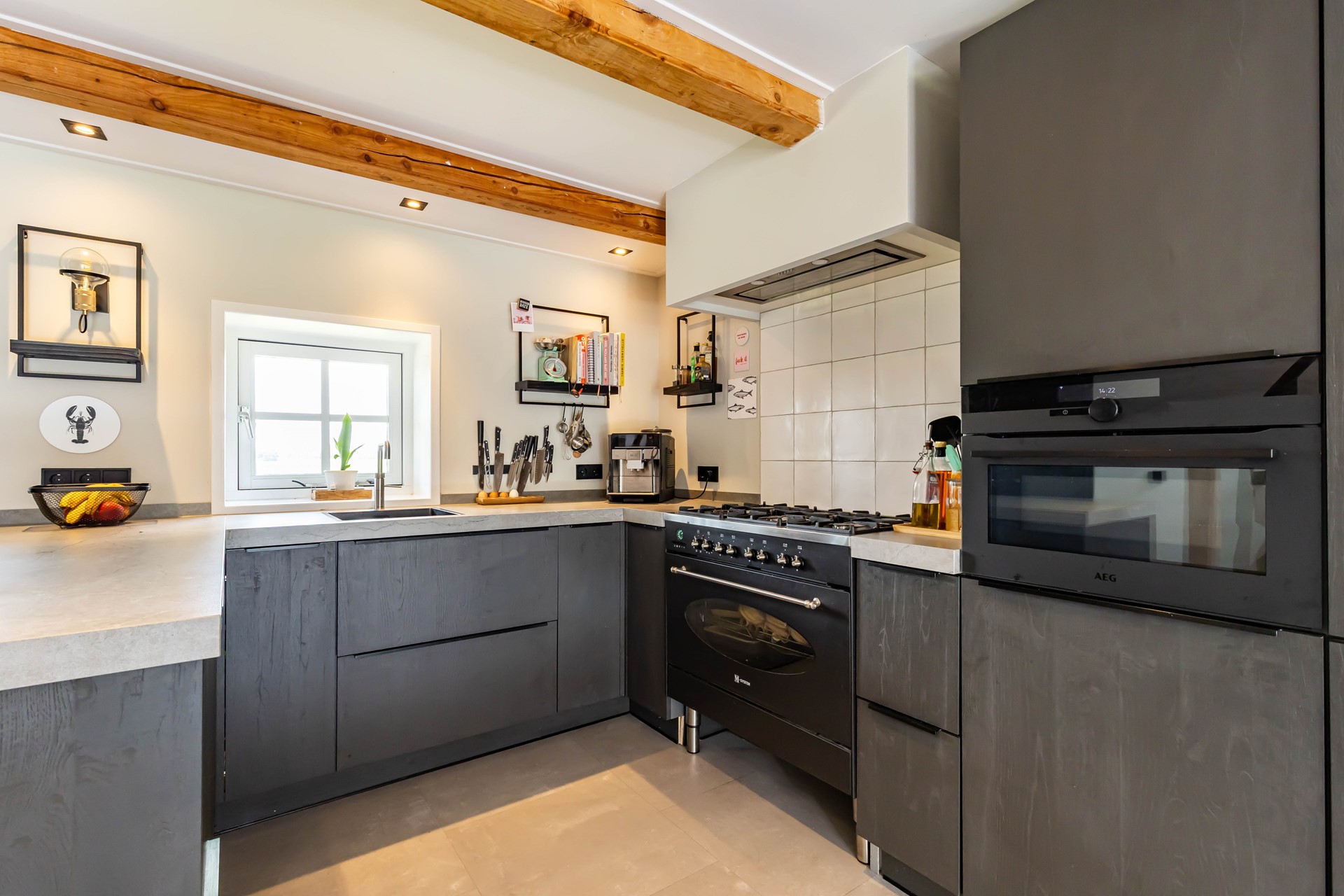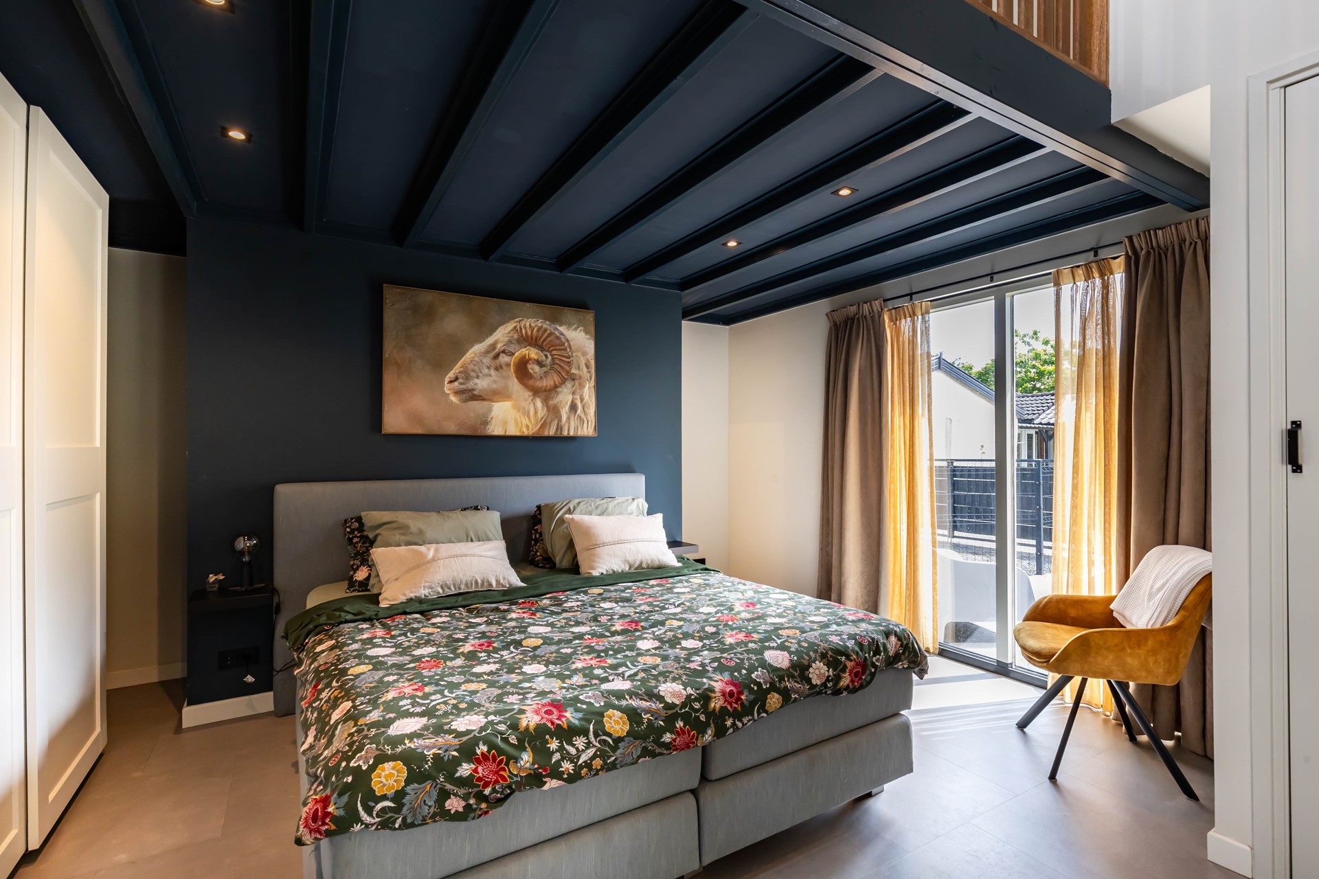 De woonkamer en keuken en suite staan met elkaar in verbinding. De woonkamer heeft een robuuste Tigchelaar kachel voor de knusse winteravonden. De keuken is modern en voorzien van inbouwapparatuur zoals een Quookerkraan en oven. De masterbedroom ligt op de benedenverdieping, net als de luxe badkamer, waardoor de woning levensloopbestendig is. Leuk detail is de vide in de slaapkamer. Op de begane grond is daarnaast nog een praktische studeerkamer. Op de verdieping zijn nog eens drie slaapkamers.