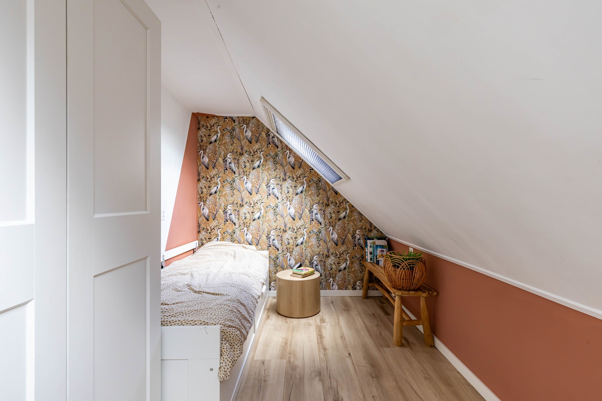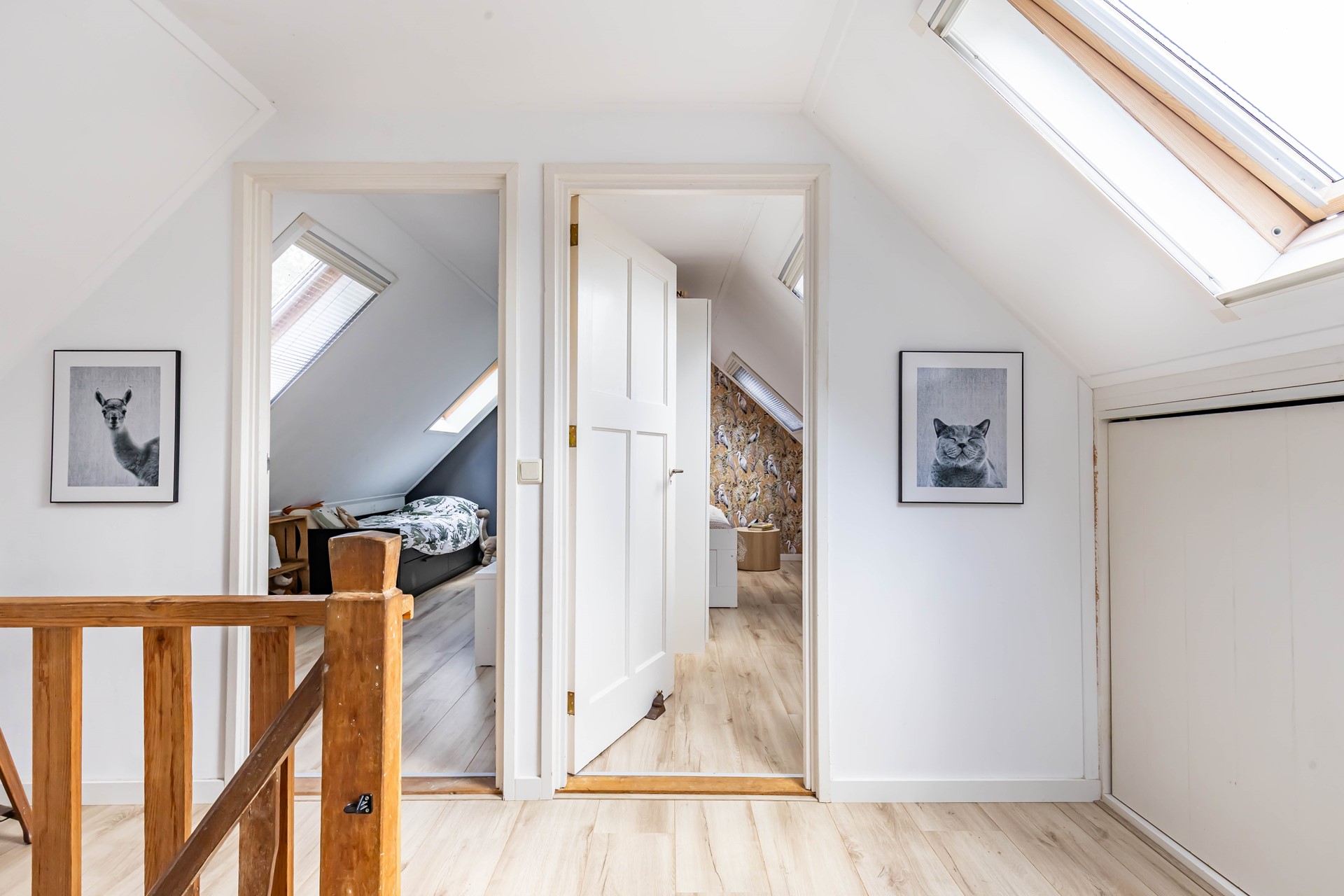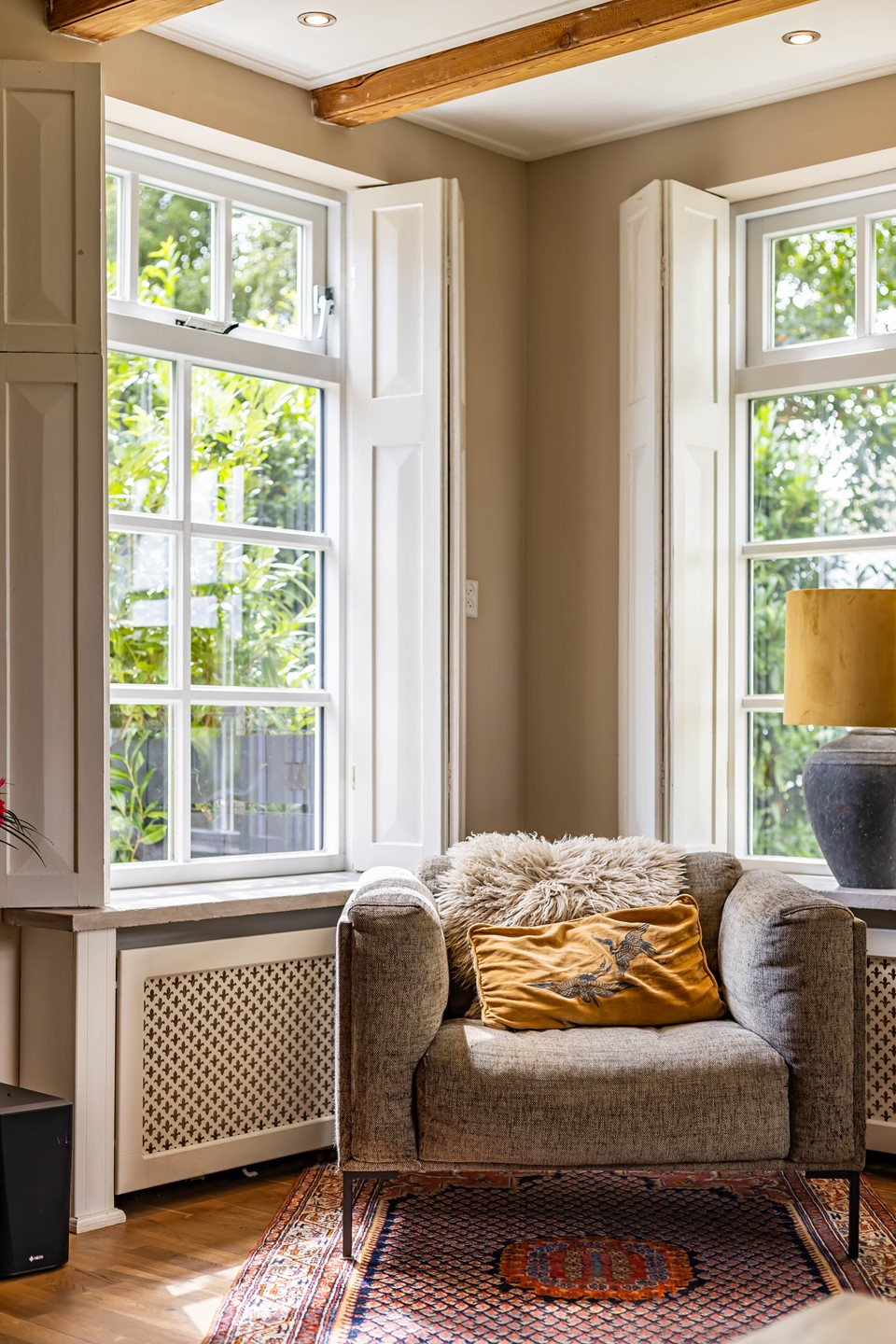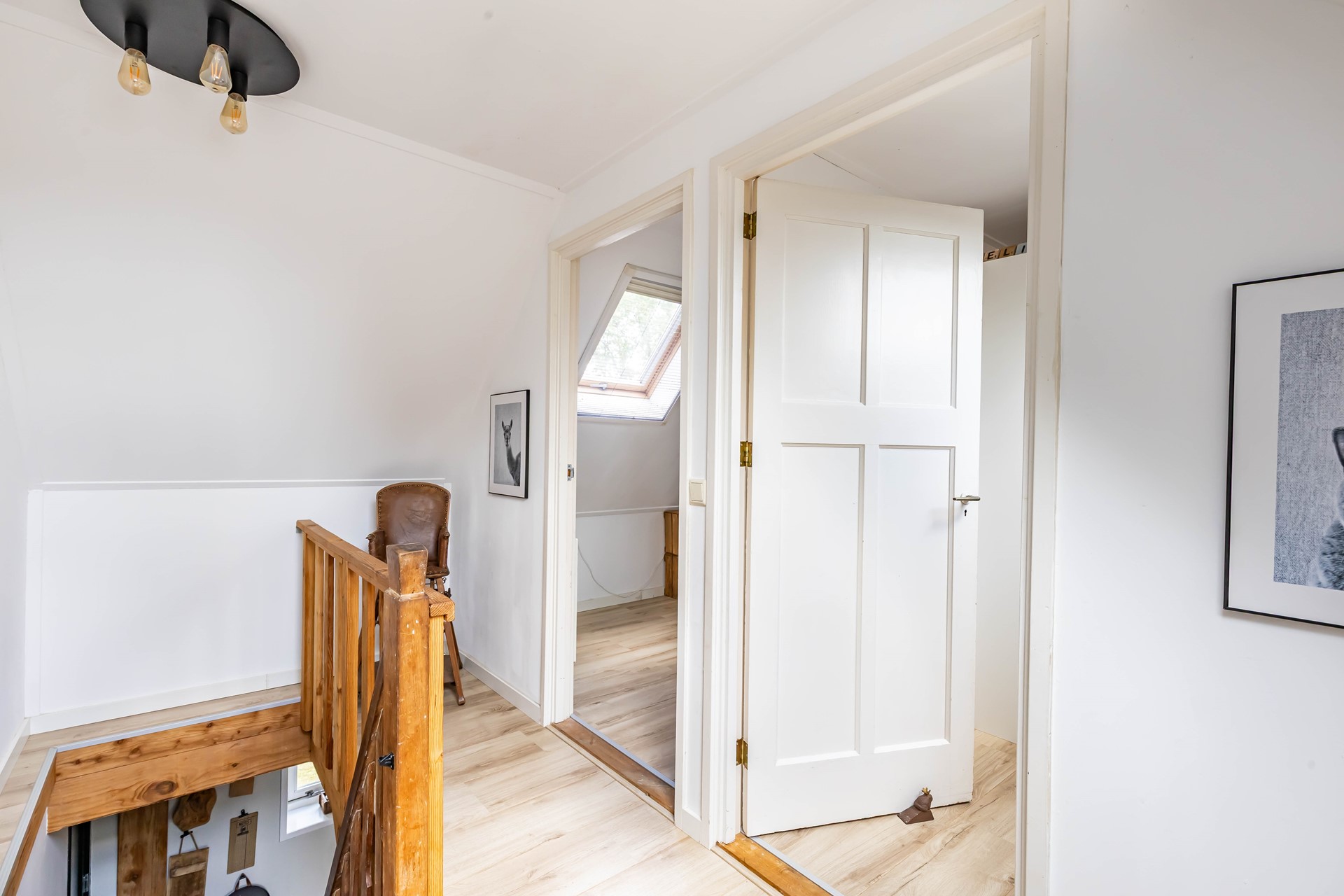 De woonkamer en keuken en suite staan met elkaar in verbinding. De woonkamer heeft een robuuste Tigchelaar kachel voor de knusse winteravonden. De keuken is modern en voorzien van inbouwapparatuur zoals een Quookerkraan en oven. De masterbedroom ligt op de benedenverdieping, net als de luxe badkamer, waardoor de woning levensloopbestendig is. Leuk detail is de vide in de slaapkamer. Op de begane grond is daarnaast nog een praktische studeerkamer. Op de verdieping zijn nog eens drie slaapkamers.