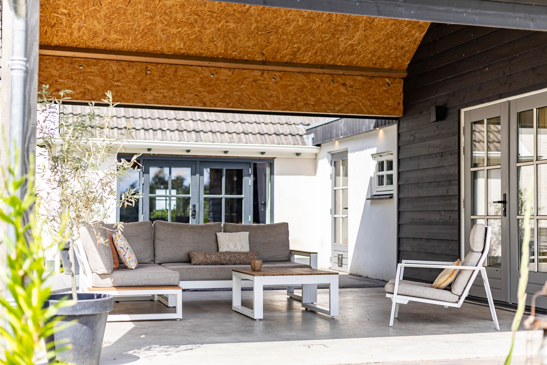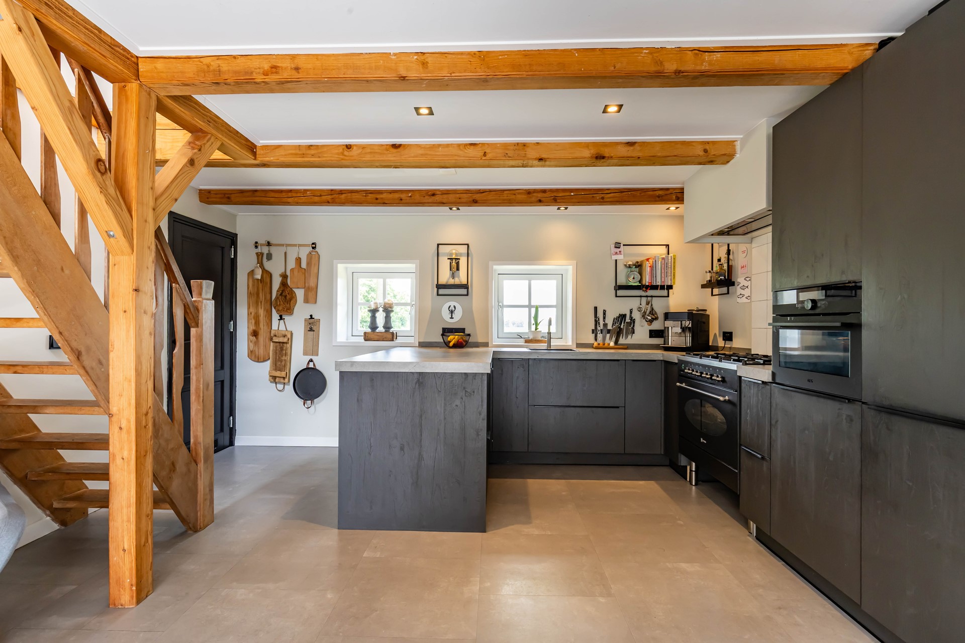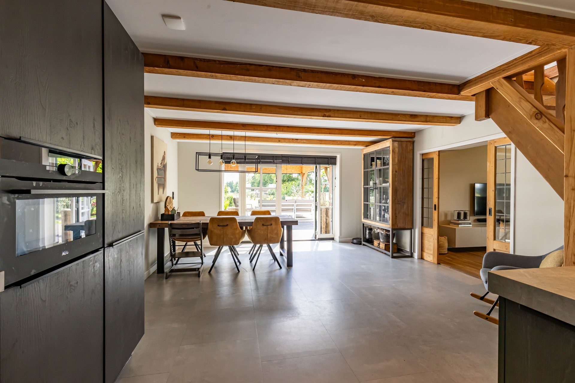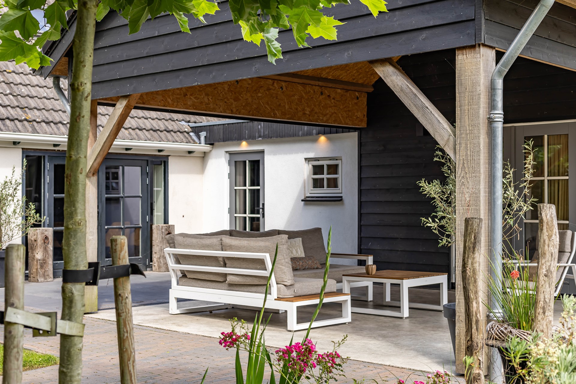 De stijl en sfeer van de woning komt terug in alle vertrekken en is gebaseerd op natuurlijke materialen en kleuren zoals hout, leem en natuursteen gecombineerd met hotel chique accenten zoals sfeervolle verlichting en zwarte elementen. Zowel binnen als buiten is alles op elkaar afgestemd wat zorgt voor rust en eenheid.