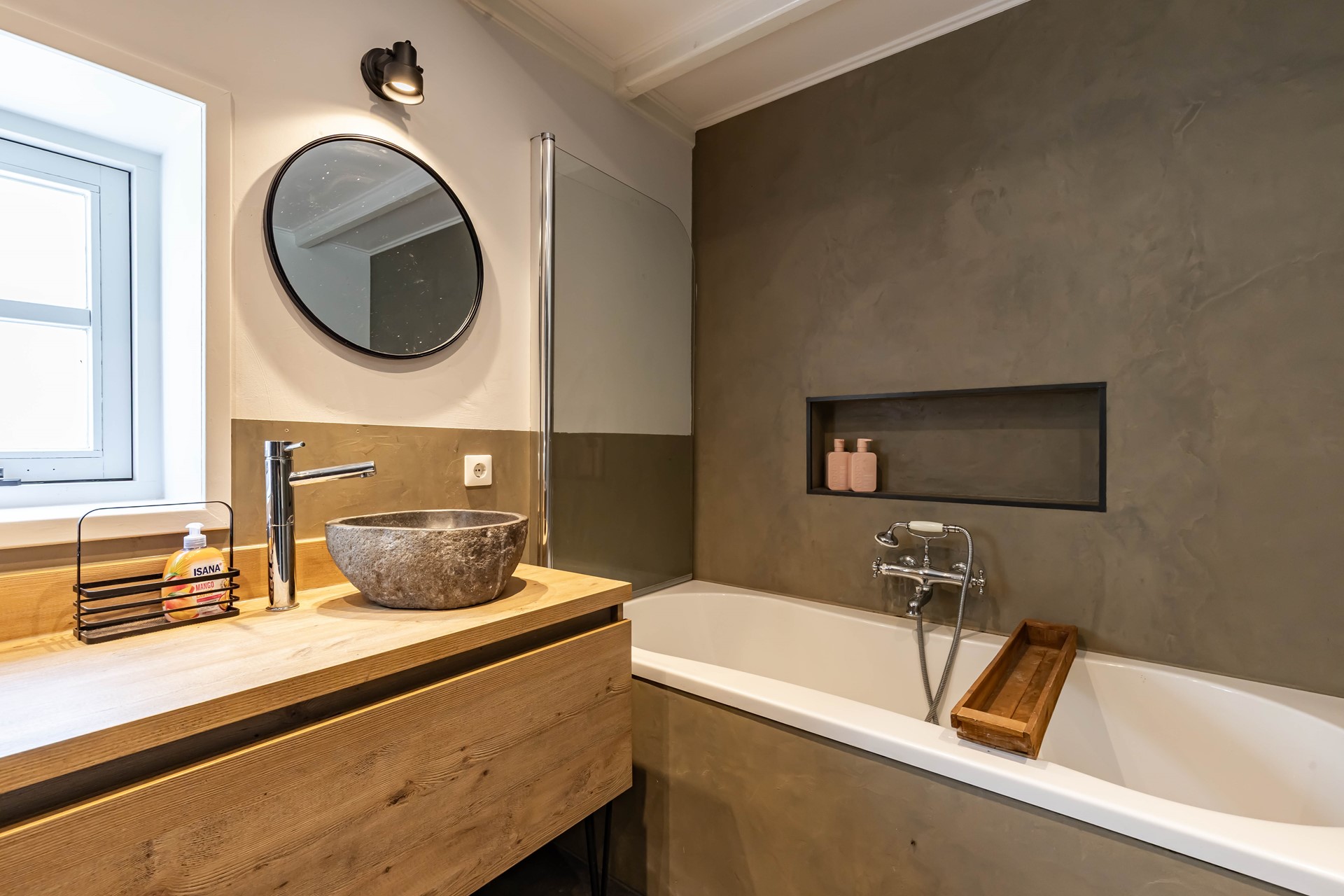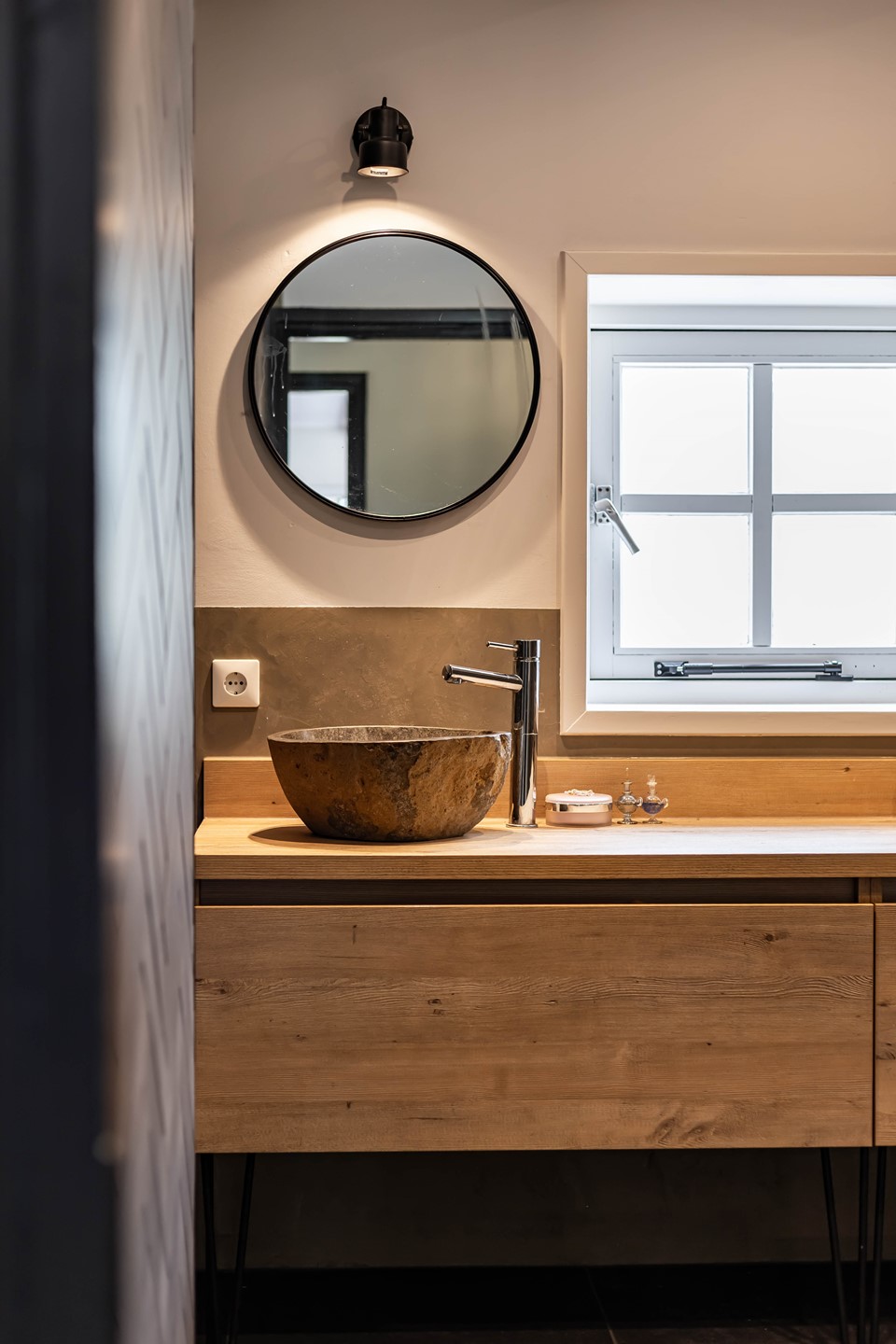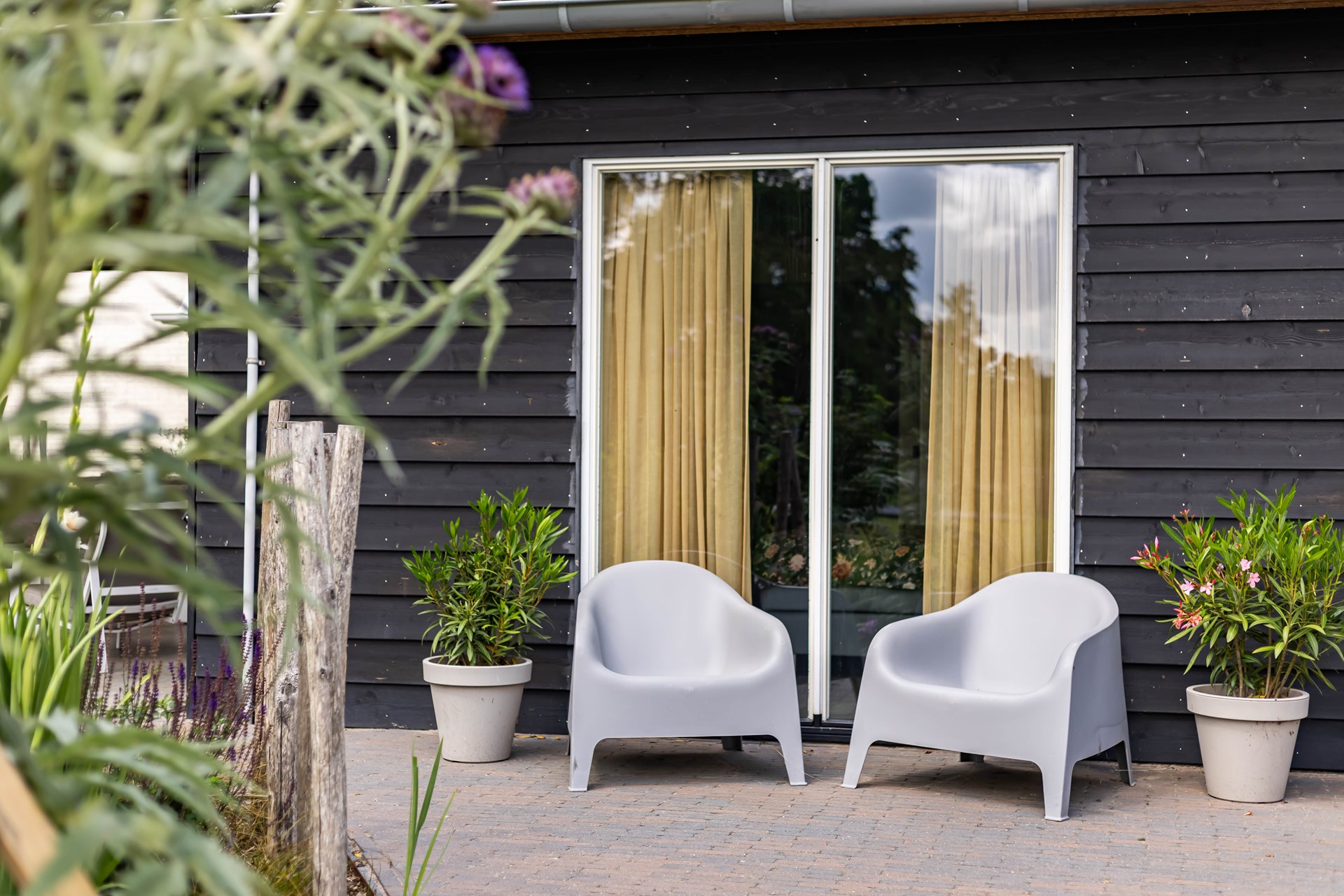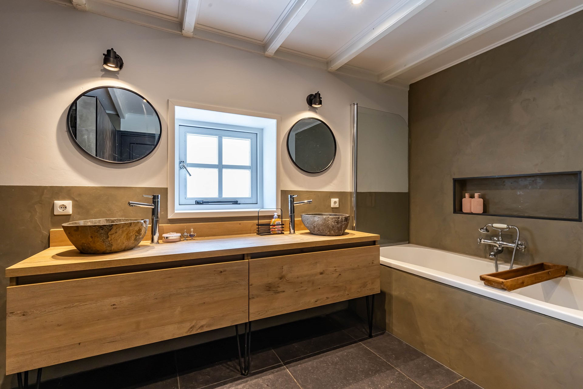 De stijl en sfeer van de woning komt terug in alle vertrekken en is gebaseerd op natuurlijke materialen en kleuren zoals hout, leem en natuursteen gecombineerd met hotel chique accenten zoals sfeervolle verlichting en zwarte elementen. Zowel binnen als buiten is alles op elkaar afgestemd wat zorgt voor rust en eenheid.
