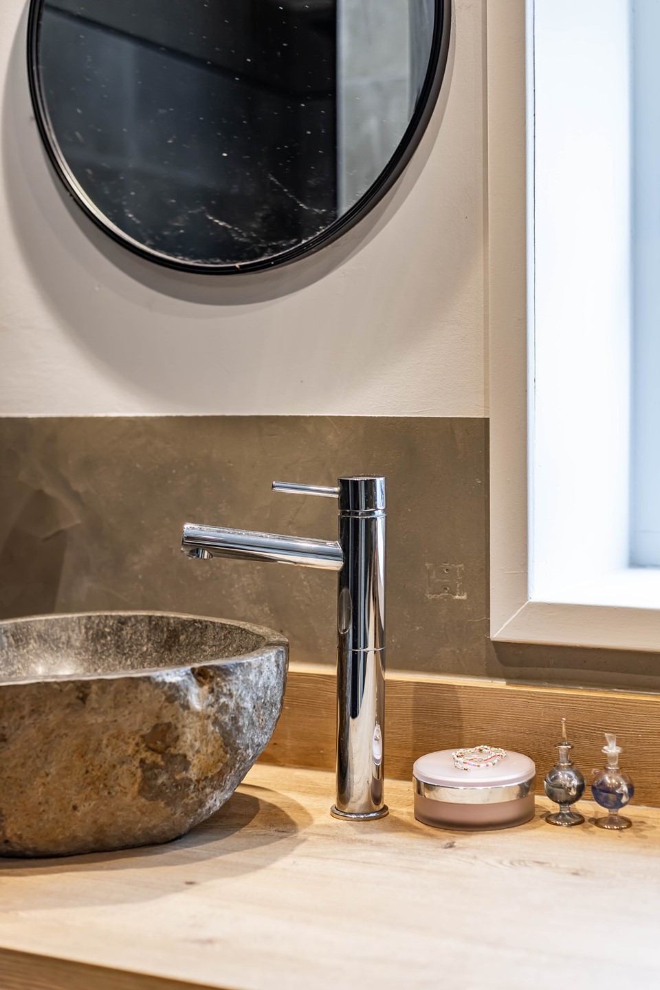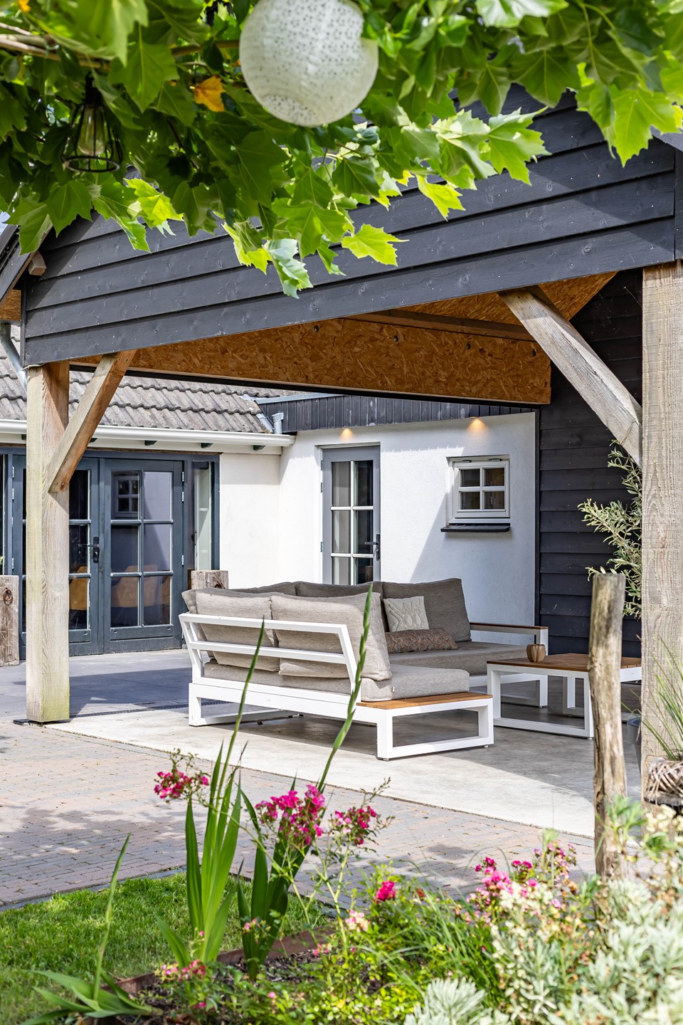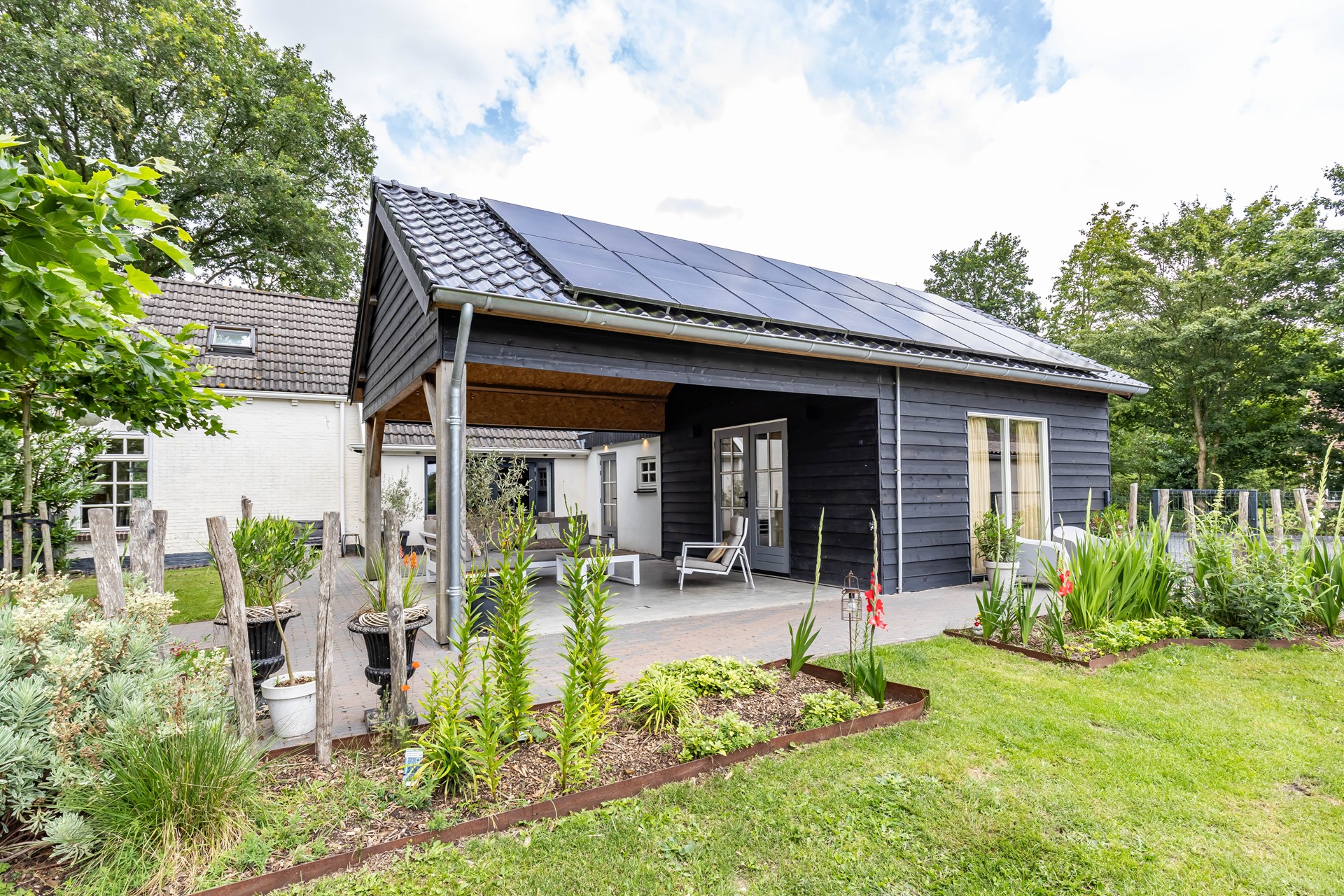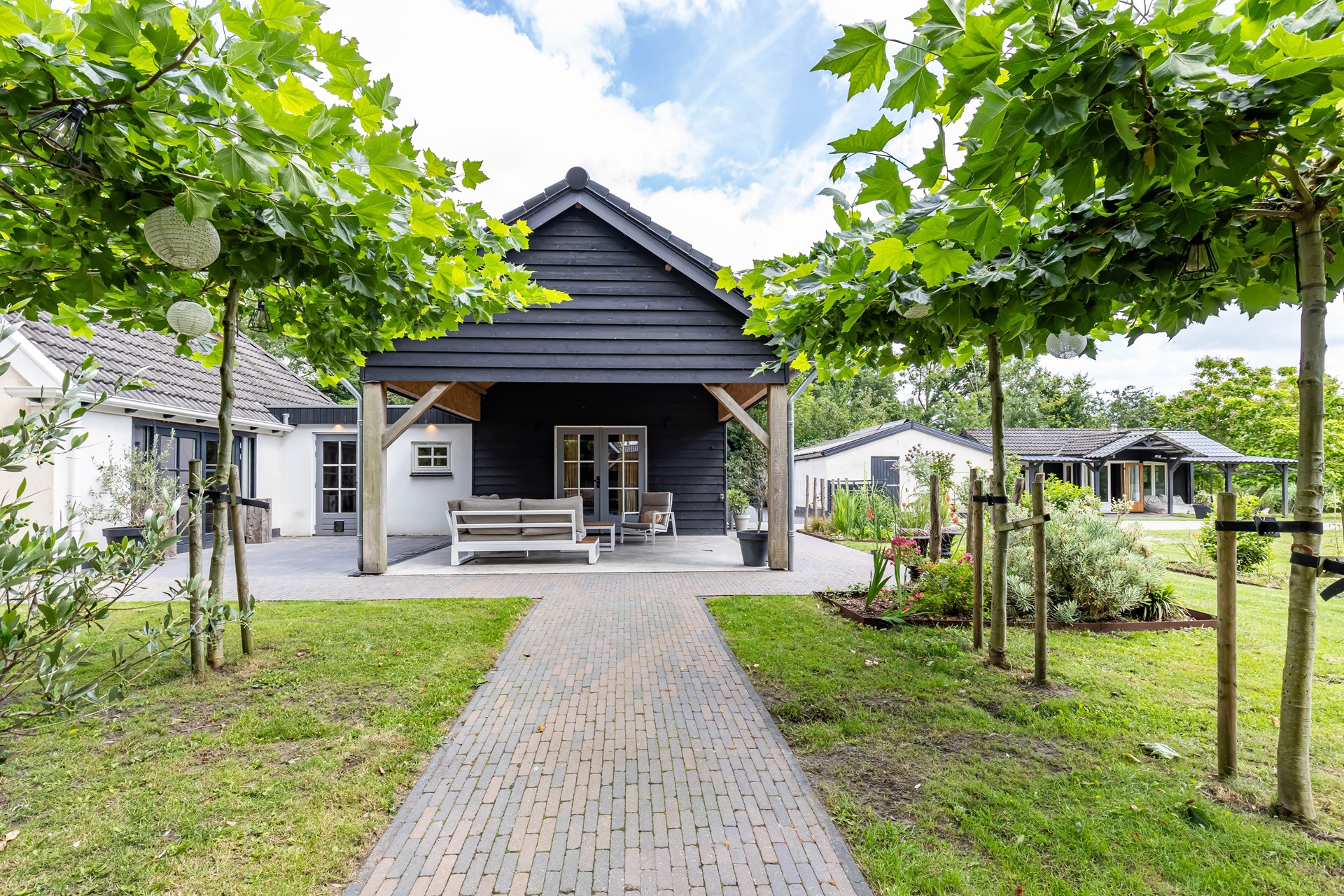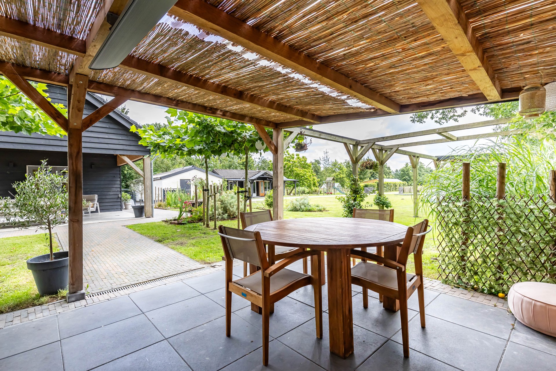 De stijl en sfeer van de woning komt terug in alle vertrekken en is gebaseerd op natuurlijke materialen en kleuren zoals hout, leem en natuursteen gecombineerd met hotel chique accenten zoals sfeervolle verlichting en zwarte elementen. Zowel binnen als buiten is alles op elkaar afgestemd wat zorgt voor rust en eenheid.