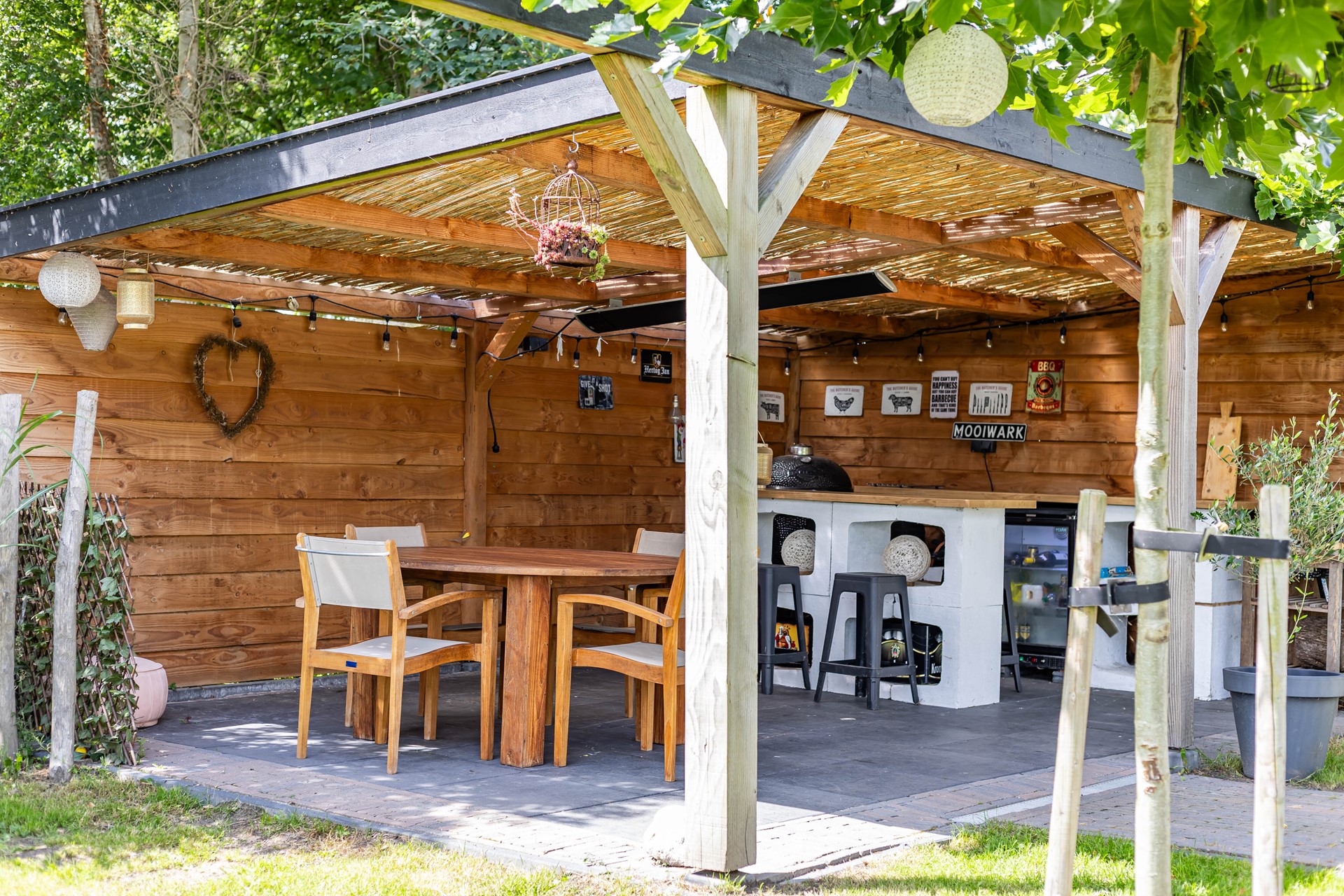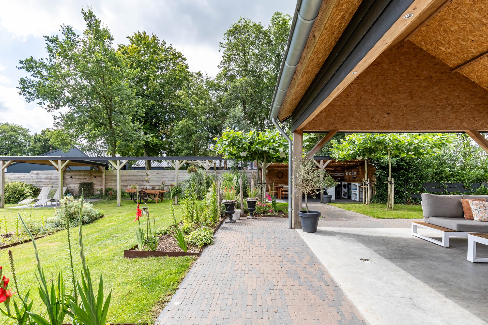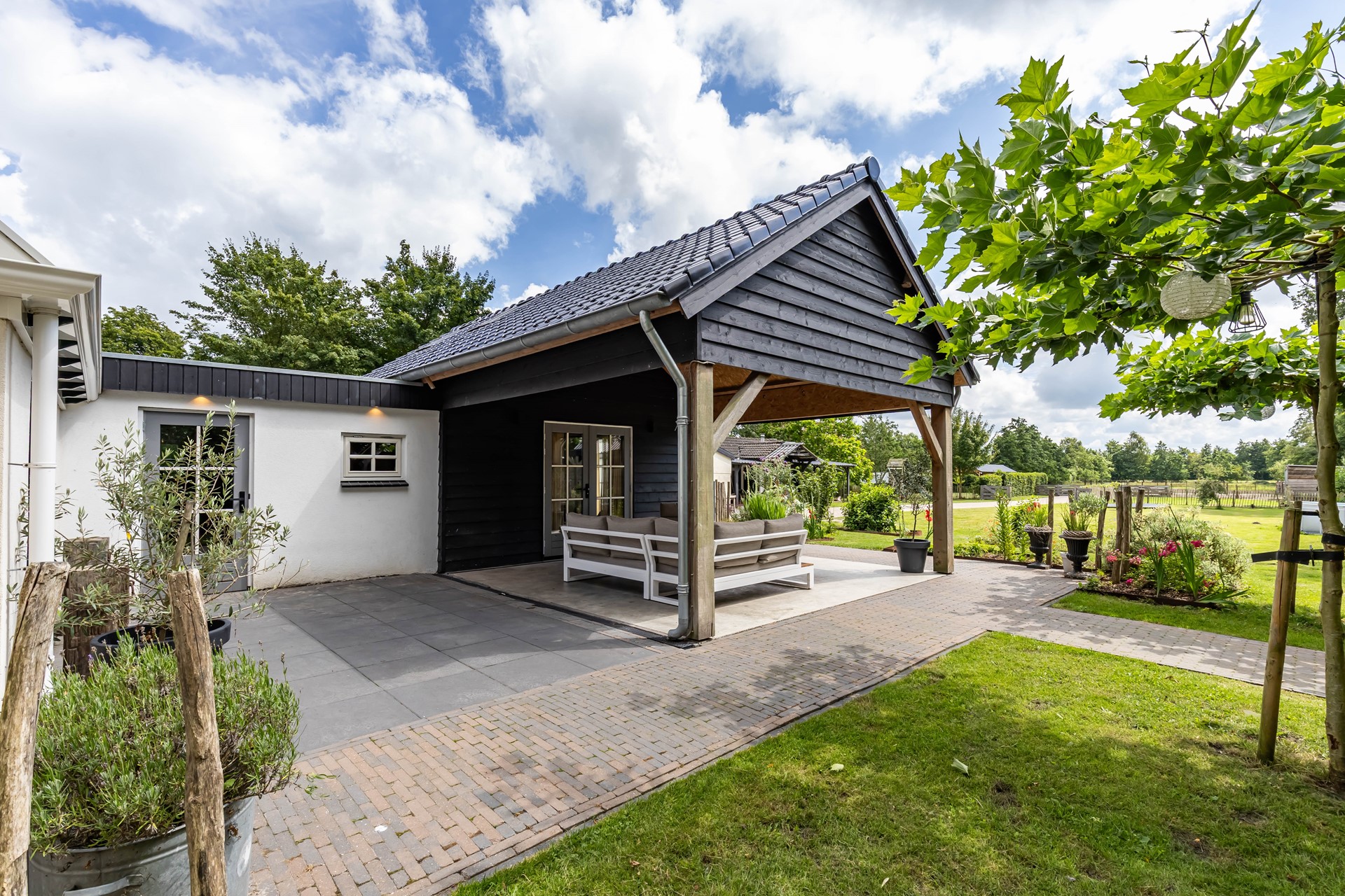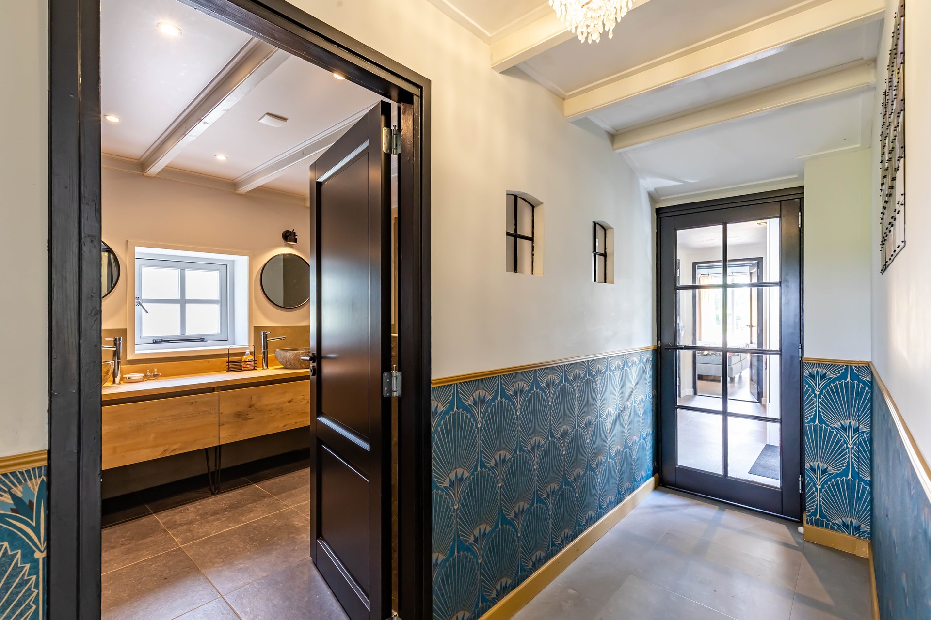 De stijl en sfeer van de woning komt terug in alle vertrekken en is gebaseerd op natuurlijke materialen en kleuren zoals hout, leem en natuursteen gecombineerd met hotel chique accenten zoals sfeervolle verlichting en zwarte elementen. Zowel binnen als buiten is alles op elkaar afgestemd wat zorgt voor rust en eenheid.