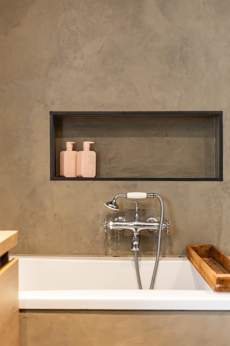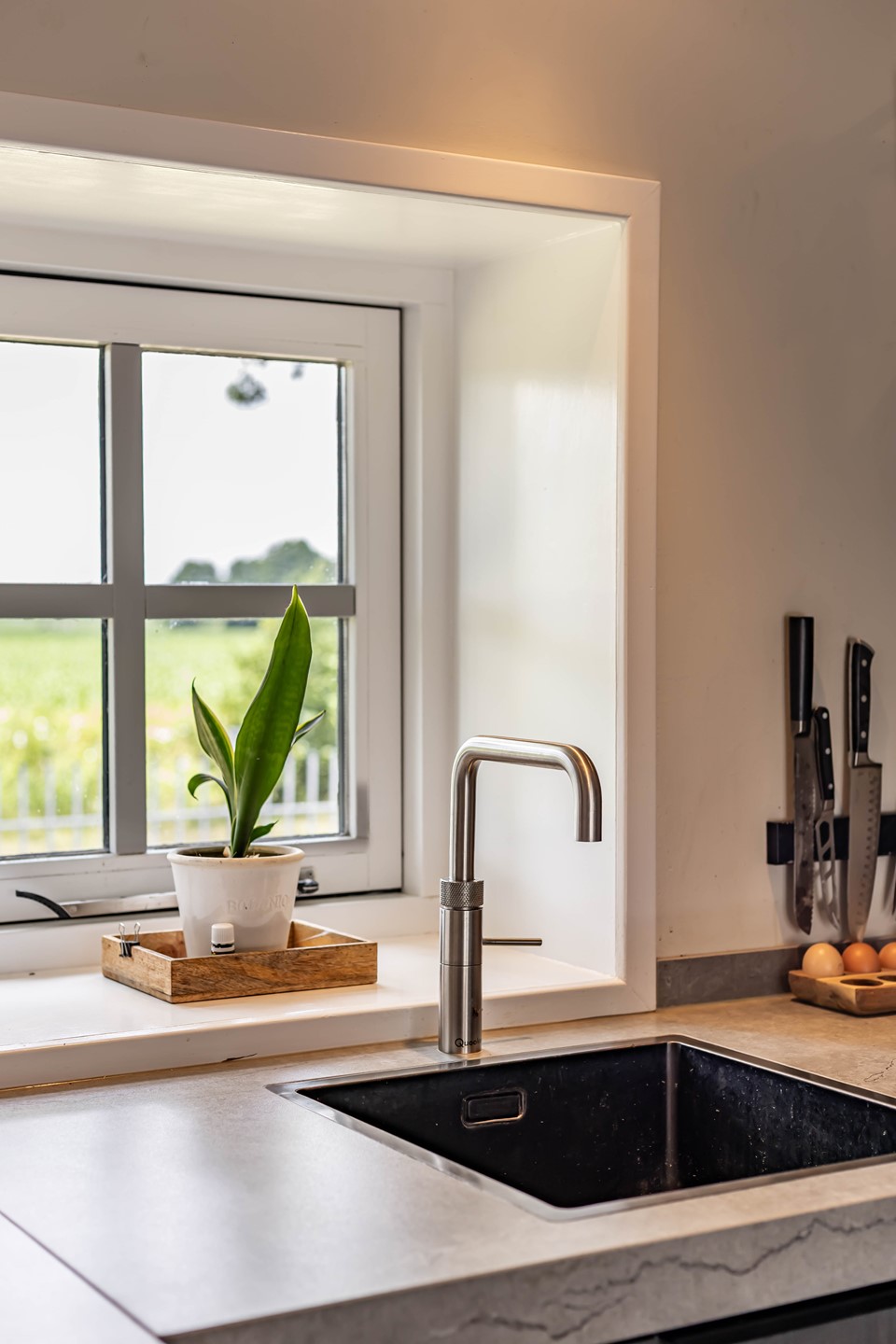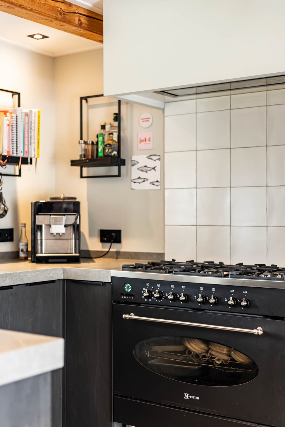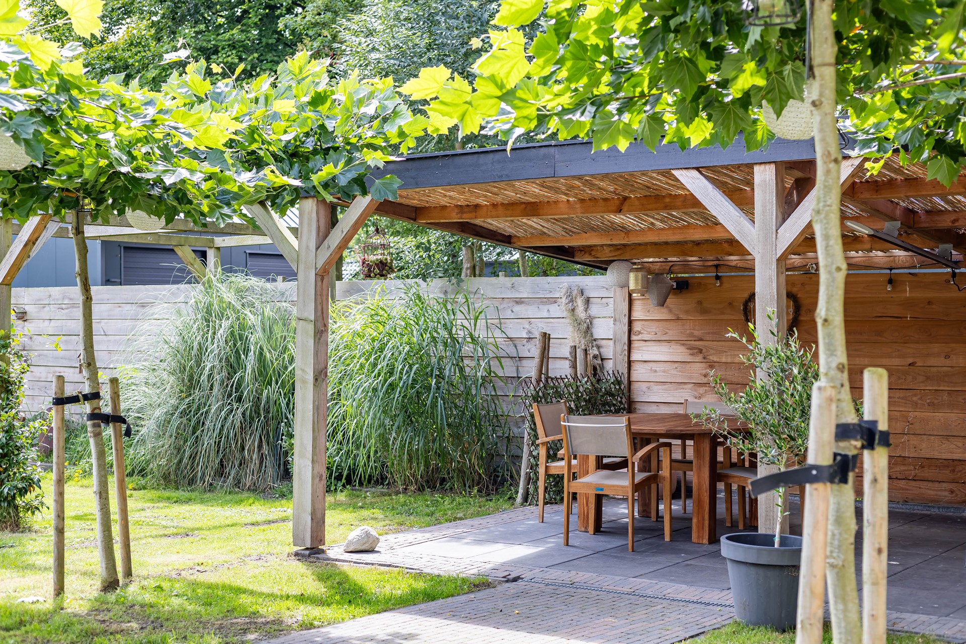 De stijl en sfeer van de woning komt terug in alle vertrekken en is gebaseerd op natuurlijke materialen en kleuren zoals hout, leem en natuursteen gecombineerd met hotel chique accenten zoals sfeervolle verlichting en zwarte elementen. Zowel binnen als buiten is alles op elkaar afgestemd wat zorgt voor rust en eenheid.