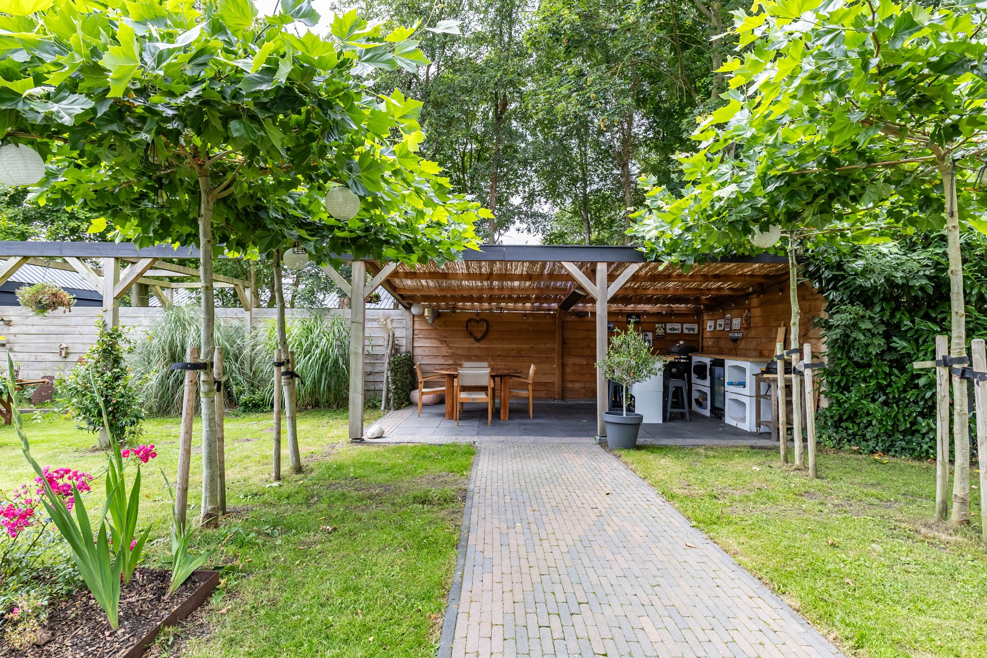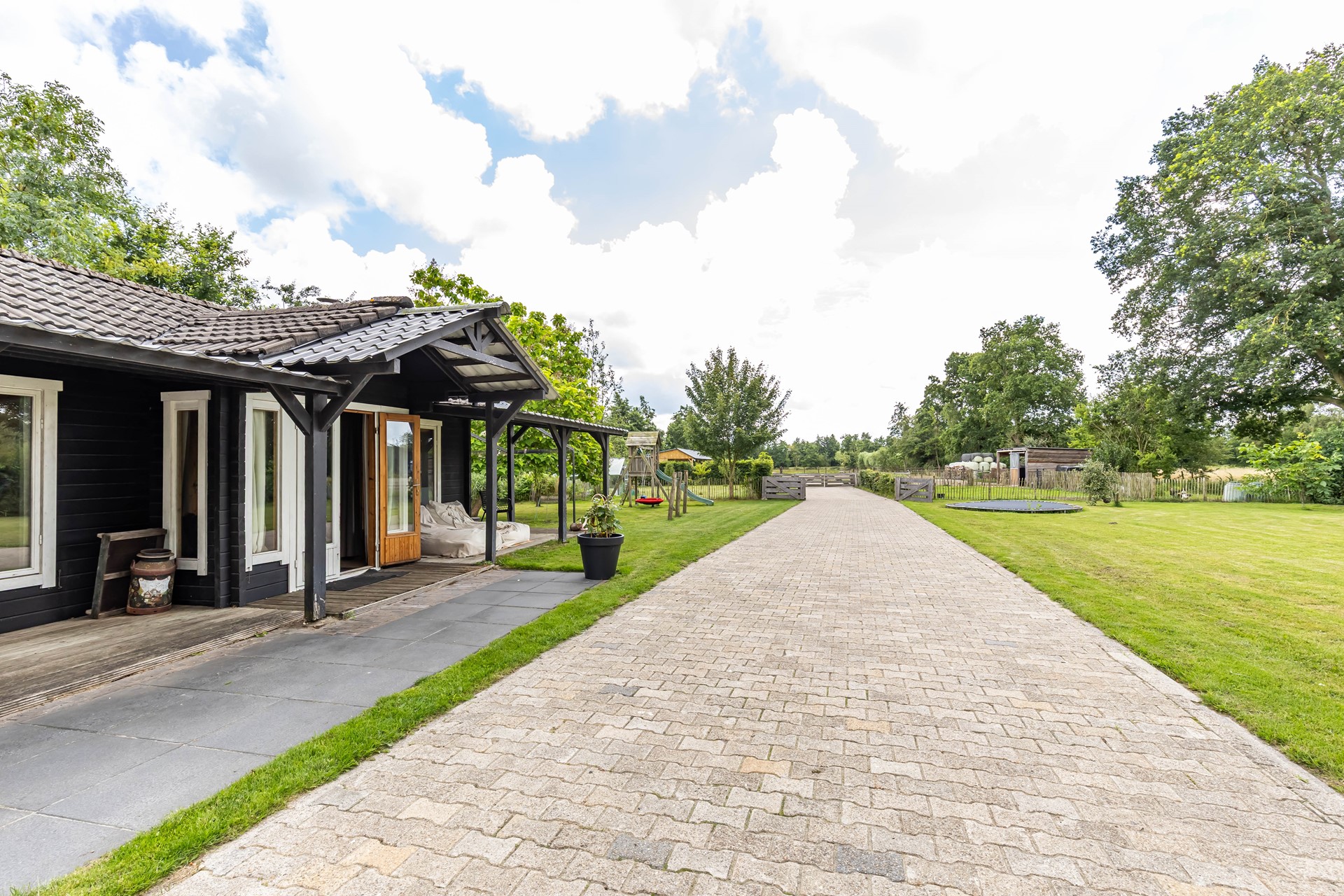 Op het perceel staat verder een riant gastenverblijf met houtkachel en er zijn diverse overdekte terrassen die het buitenleven veraangenamen. Zoals de huidige situatie laat zien biedt het perceel daarnaast tal van mogelijkheden voor iedereen die houdt van landelijk leven, tuinieren en dieren. De prachtige omgeving, dicht bij Drachten, Groningen en op fietsafstand van leuke dorpen die voorzien in scholen en winkels, draagt daar zeker aan bij. Voor velen zal dit een woning zijn die hun woondromen doet uitkomen!