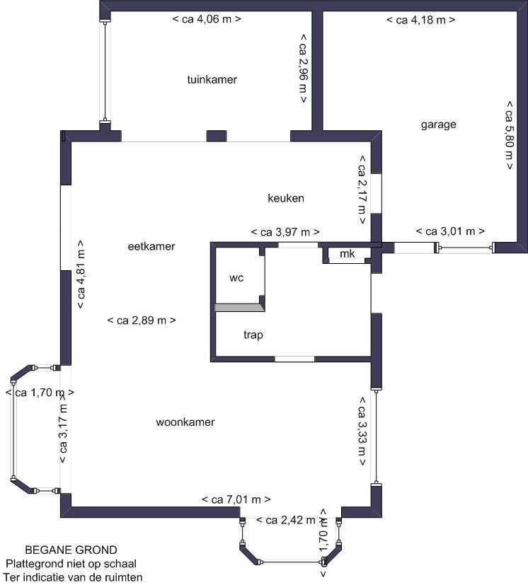 keuken is toegang tot de garage/werkkamer. Momenteel is deze ruimte v.v. een pui met glas en een loopdeur maar door plaatsing garagedeur weer te gebruiken