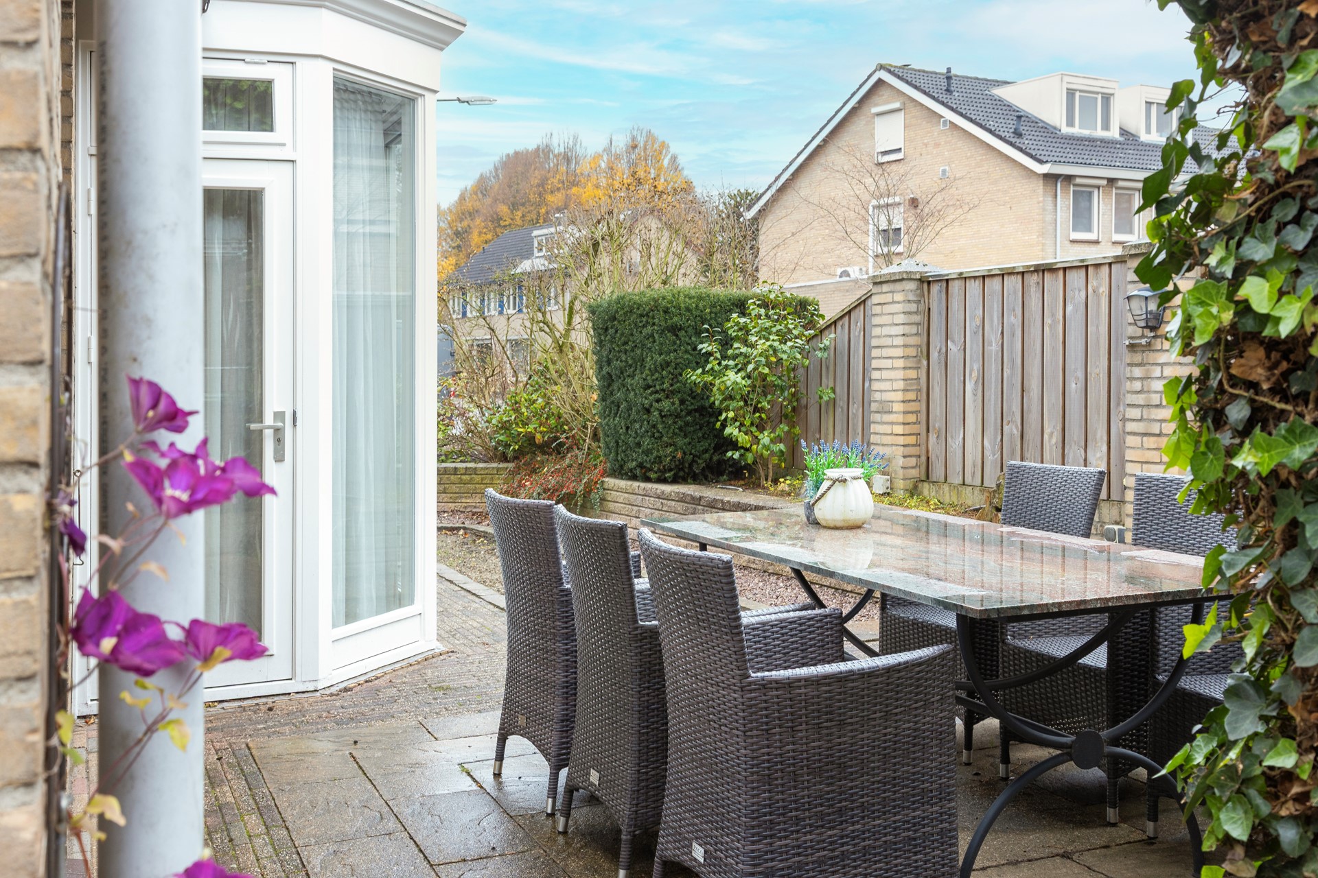 Deze woning heeft een tuin aan de achterzijde welke tevens kan dienen als oprit, deze tuin/oprit is afgesloten met een dubbele poort en grenst aan de tuinkamer. Grenzend aan de eetkamer is de zijtuin met veel privacy en ingericht met sierbestrating en perken, de ligging is zuid-west en een prima plek voor de middag en avondzon. De voortuin is eveneens met perken en sierbestrating aangelegd en geeft uitzicht op een groenstrook, aansluitend aan deze tuin is de oprit.