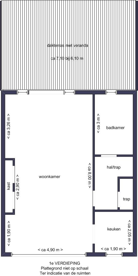 Woonoppervlakte, exclusief dakterras: ca. 88m2, dakterras 42m2.