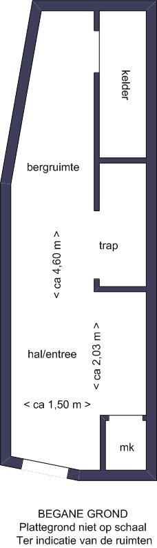 • eigen entree, meterkast (8 groepen en aardlek), trapopgang, fietsenberging en kelder