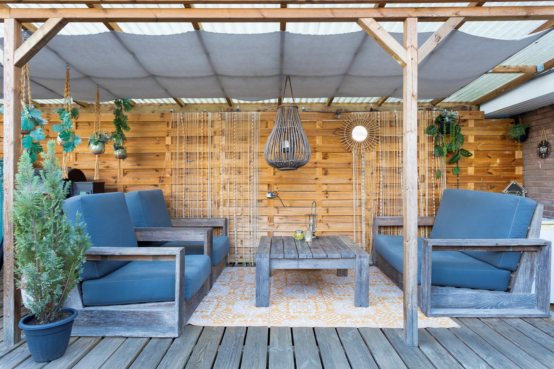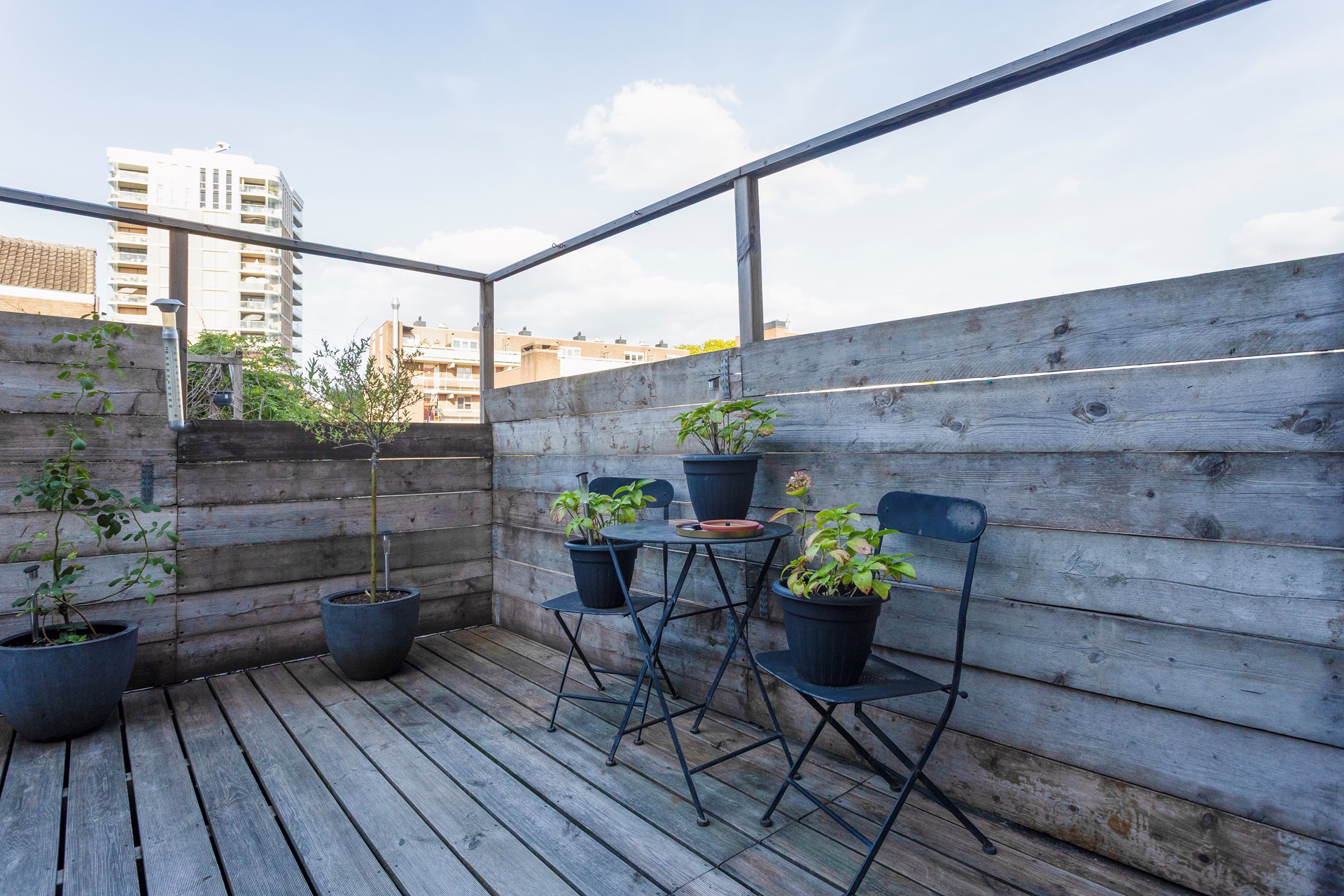 • gelegen op zuiden, ca. 42m2 groot, mooi aangelegd met nieuwe houten vloer en veranda, veel privacy en zonnige ligging (zuid)