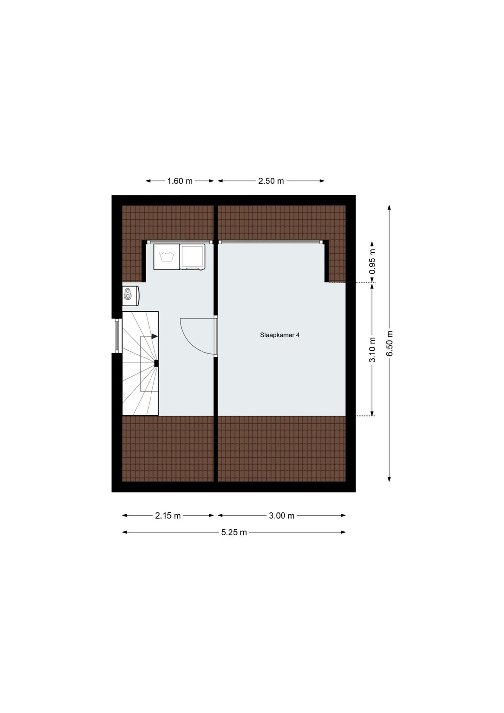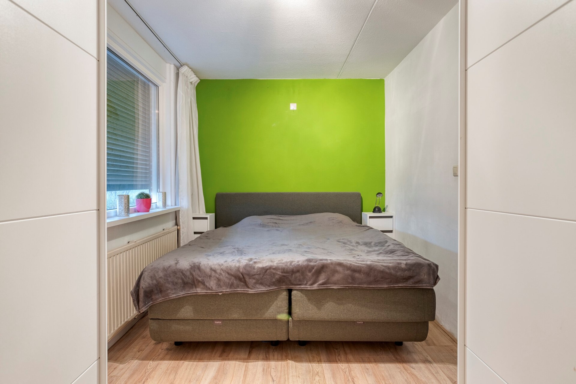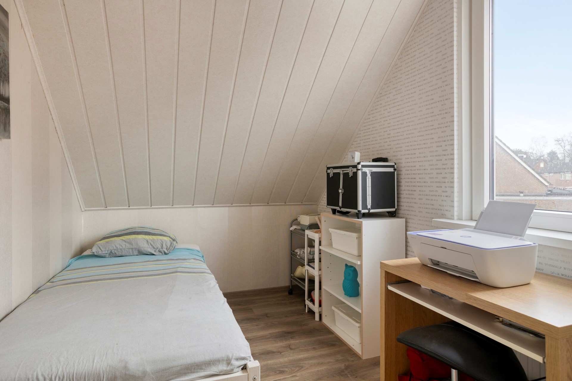 Aan de voorzijde van de woning treffen we een tweede flinke slaapkamer. Het dakkapel zorgt dat er veel bewegingsruimte is, waardoor er makkelijk een royaal tweepersoonsbed kan worden geplaatst.