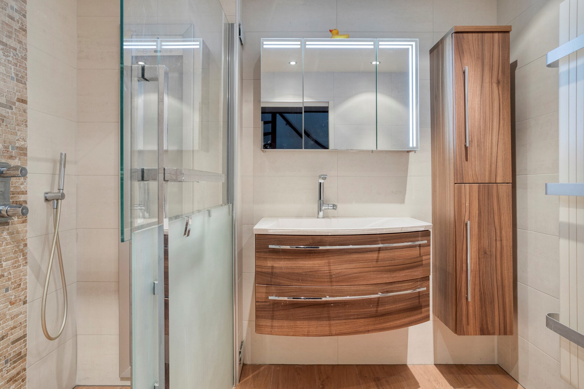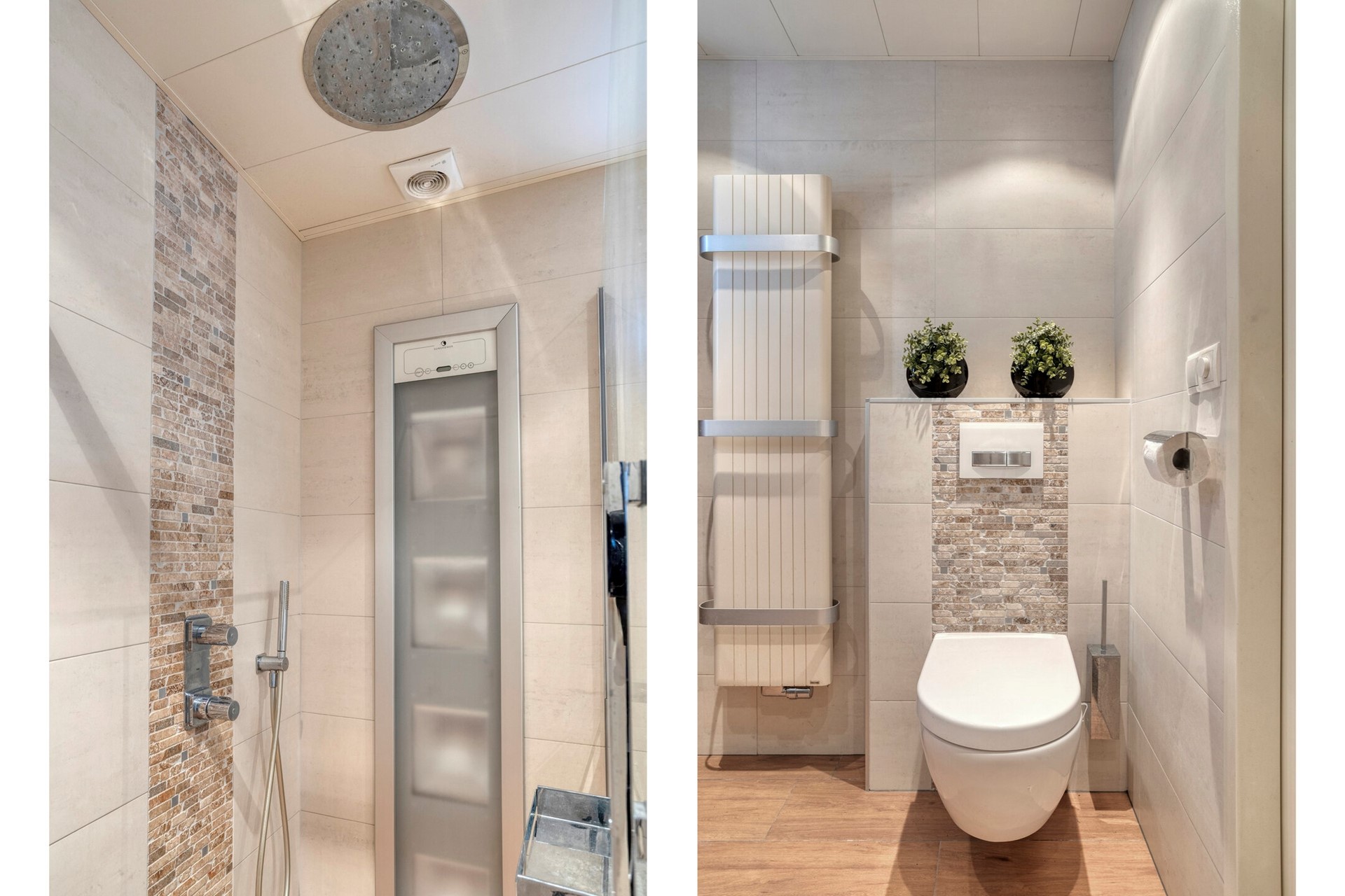 Stap binnen in de “Wellness”. De sfeervolle badkamer - in warme kleurstelling - is een fijne ruimte om je even in op te frissen. Het formaat is heerlijk waardoor je met meerdere personen tegelijk gebruik kunt maken van de badkamer.