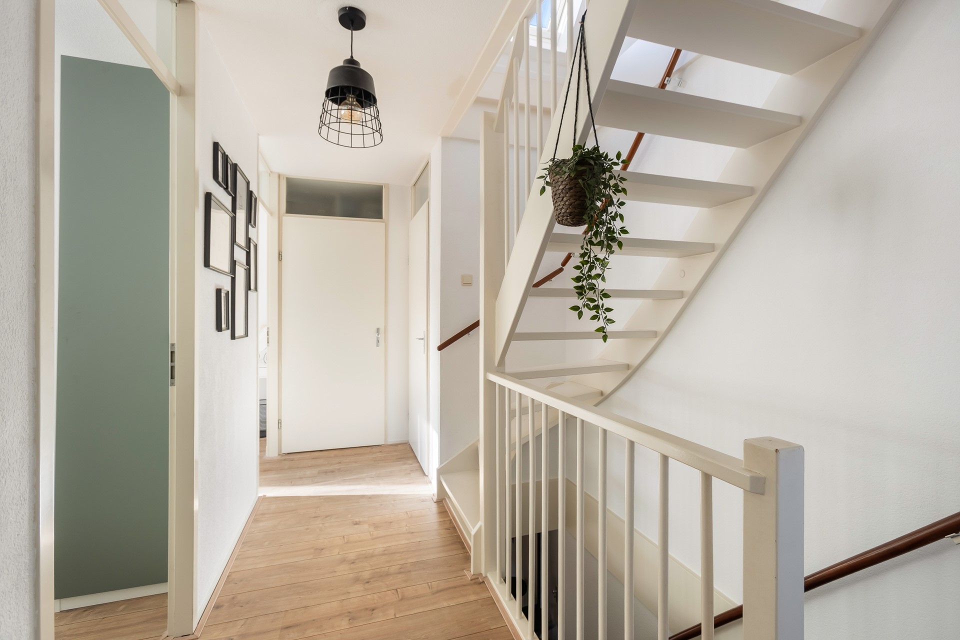 De eerste verdieping beschikt over drie fijne slaapkamers met veel lichtinval. De badkamer is wat op leeftijd, maar nog volledig functioneel, met een ligbad, aparte douche, dubbele wastafel en tweede toilet. Een praktische ruimte die je desgewenst eenvoudig naar je eigen smaak kunt moderniseren.