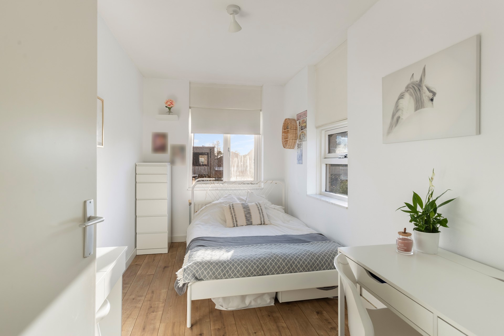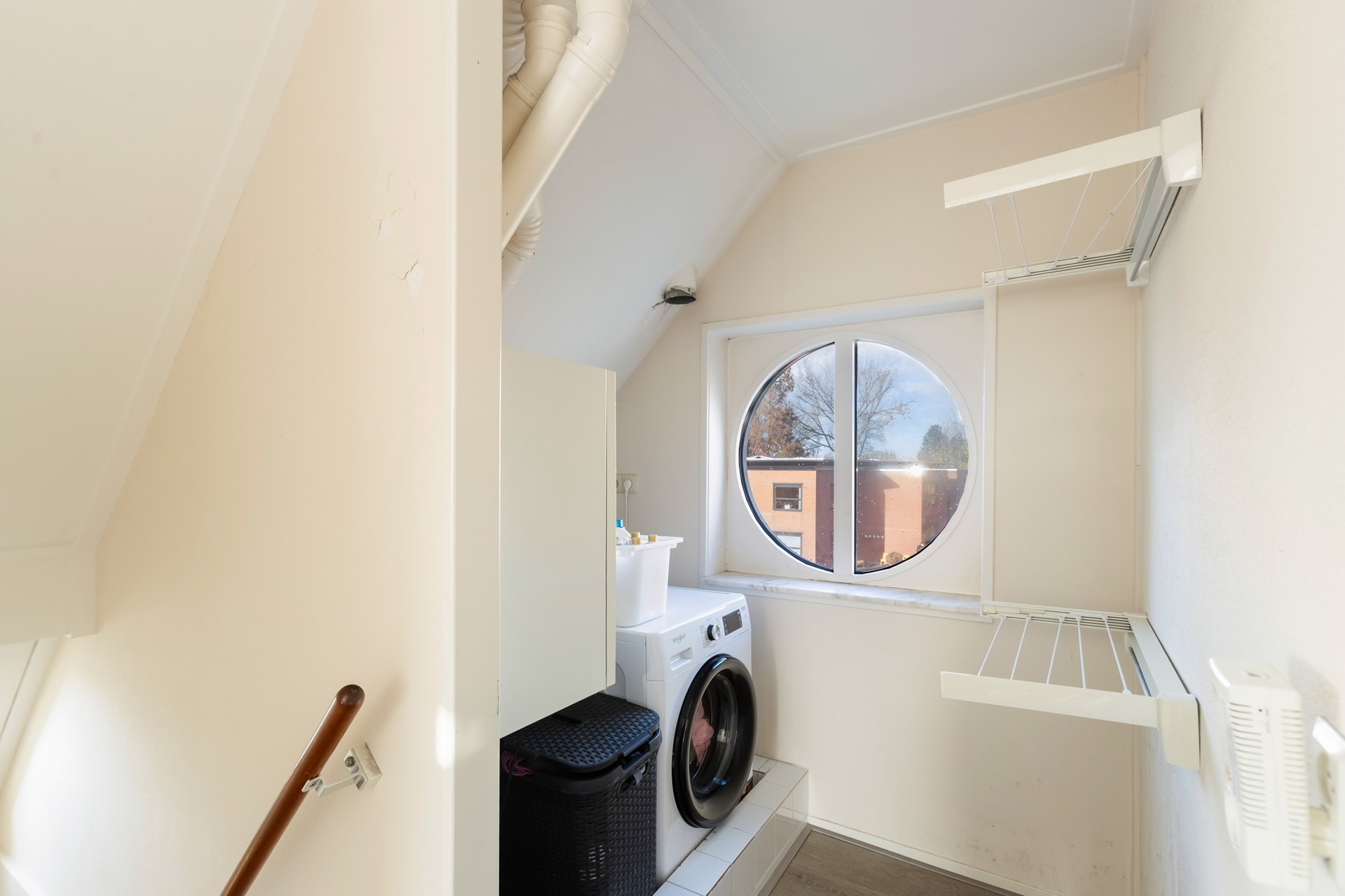 De vaste trap brengt je naar de vergrote zolderverdieping, die is uitgebreid met een dakkapel waardoor er extra ruimte én licht is ontstaan. Op de voorzolder bevinden zich de aansluitingen voor de wasmachine en droger. De vierde slaapkamer is ruim, licht en voorzien van airconditioning — ideaal als tienerkamer, werkruimte of logeerkamer.